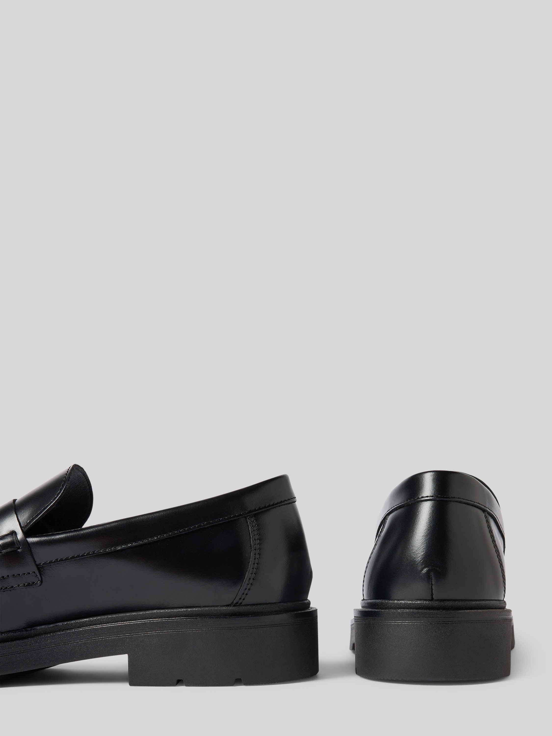 Der Herrenslipper von Marc O'Polo präsentiert sich in schlichter Optik und passt vielseitig zu unterschiedlichen Outfits. Dank der gepolsterten Innensohle aus Rindsleder entsteht beim Gehen ein angenehmes Tragegefühl, während die profilierte Sohle Stabilität verleiht. Der flache Blockabsatz sorgt für entspanntes Laufen im Alltag.