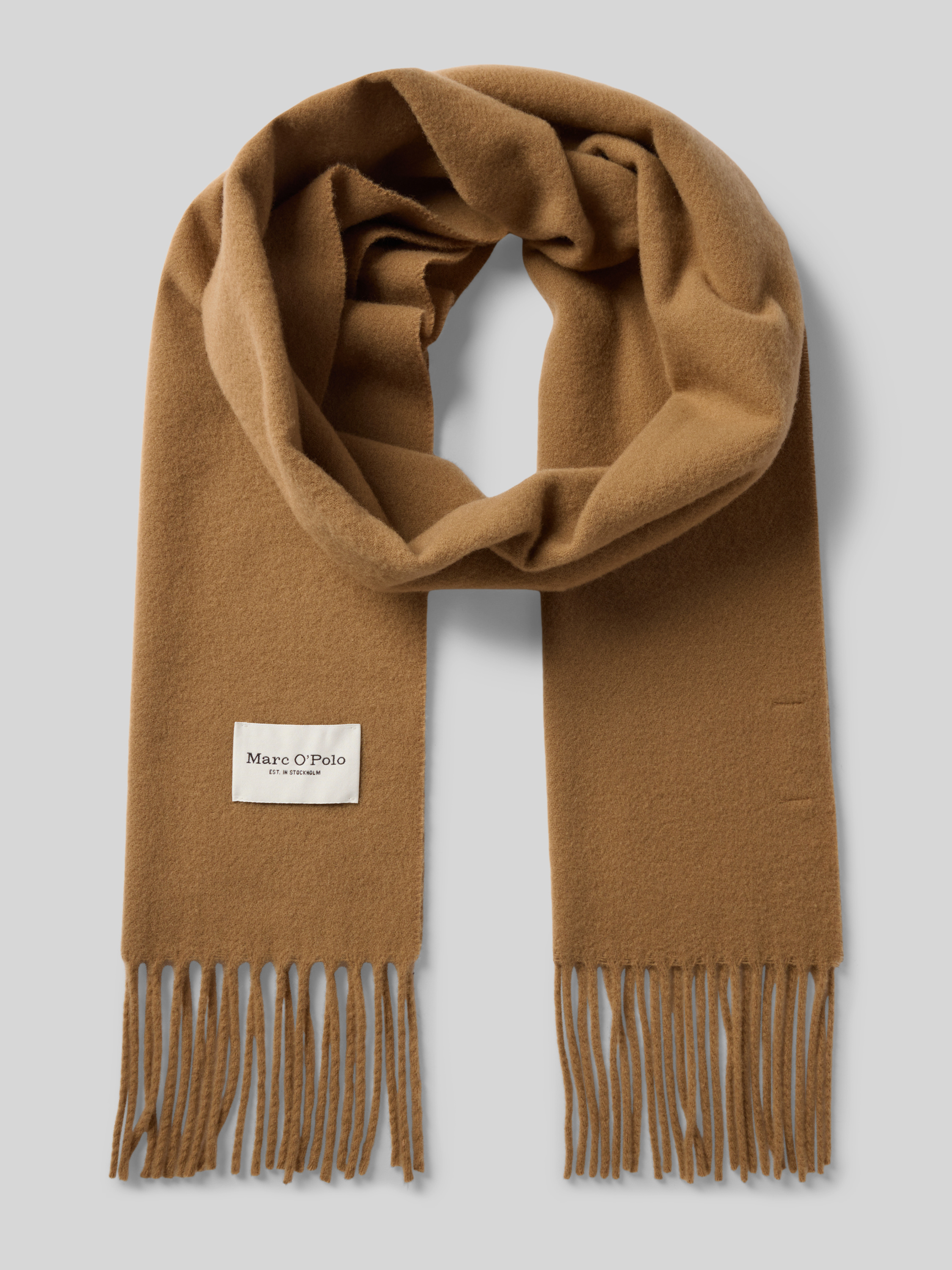 Der Damen Wollschal von Marc O'Polo aus reiner Schurwolle fühlt sich angenehm weich an und sorgt für wohlige Wärme an kühlen Tagen. Die unifarbene Optik und die langen Fransen verleihen dem Schal eine klassische Ausstrahlung, die vielseitig kombinierbar bleibt. Durch die feine Webware legt sich das Accessoire leicht und komfortabel um den Hals.