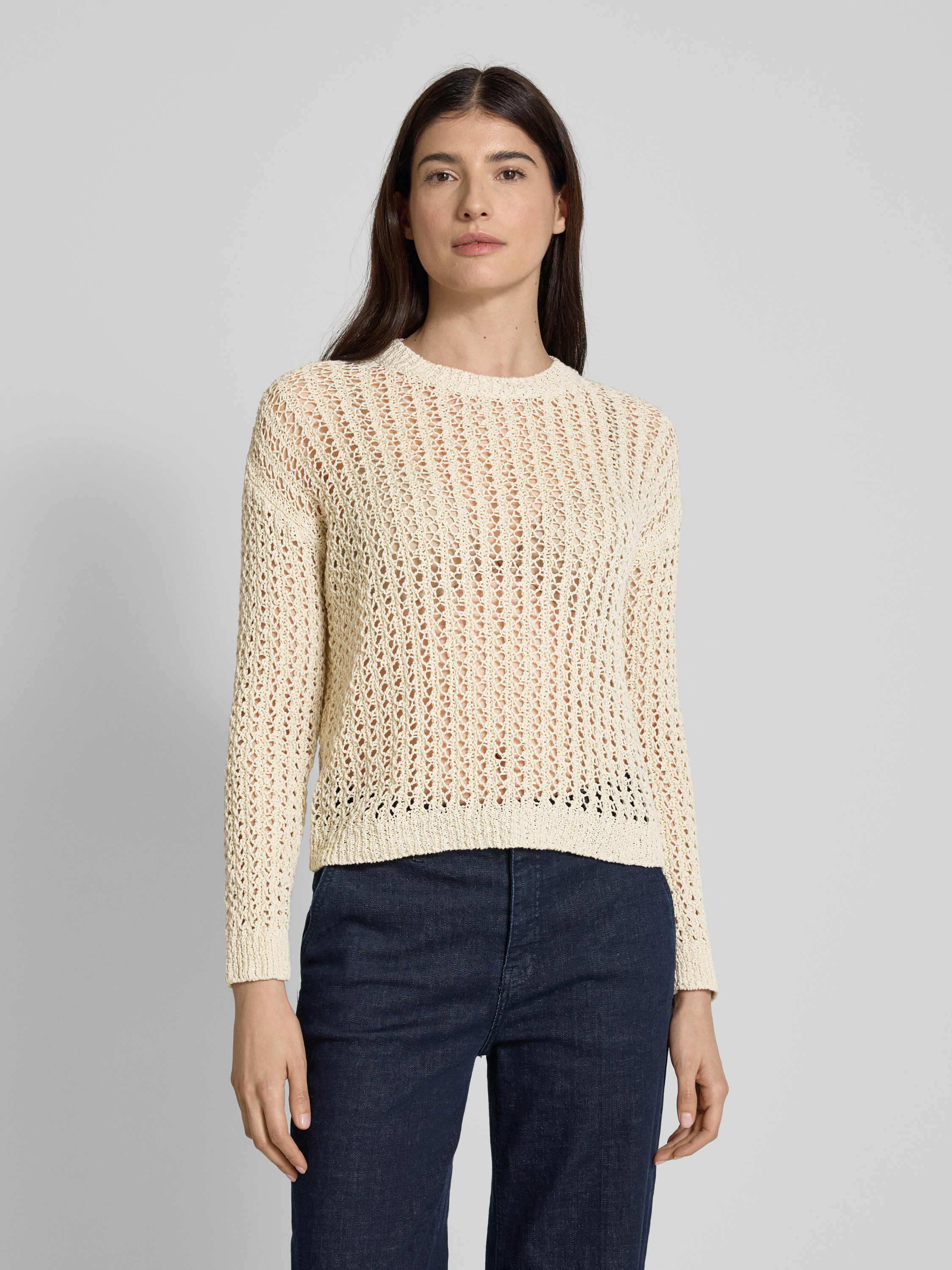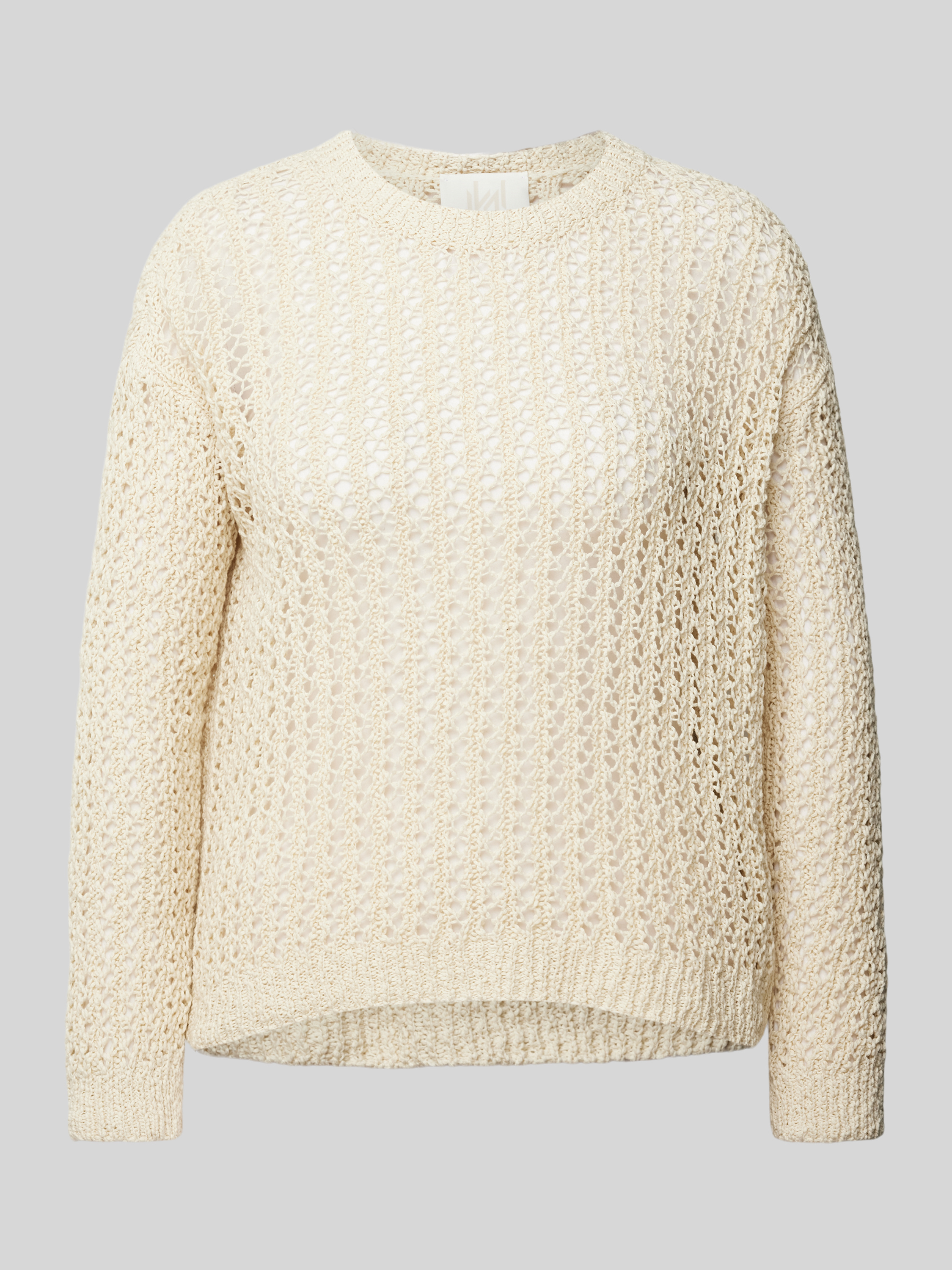 MarellaStrickpullover mit Lochstickerei Modell 'RIVA' in weiss
