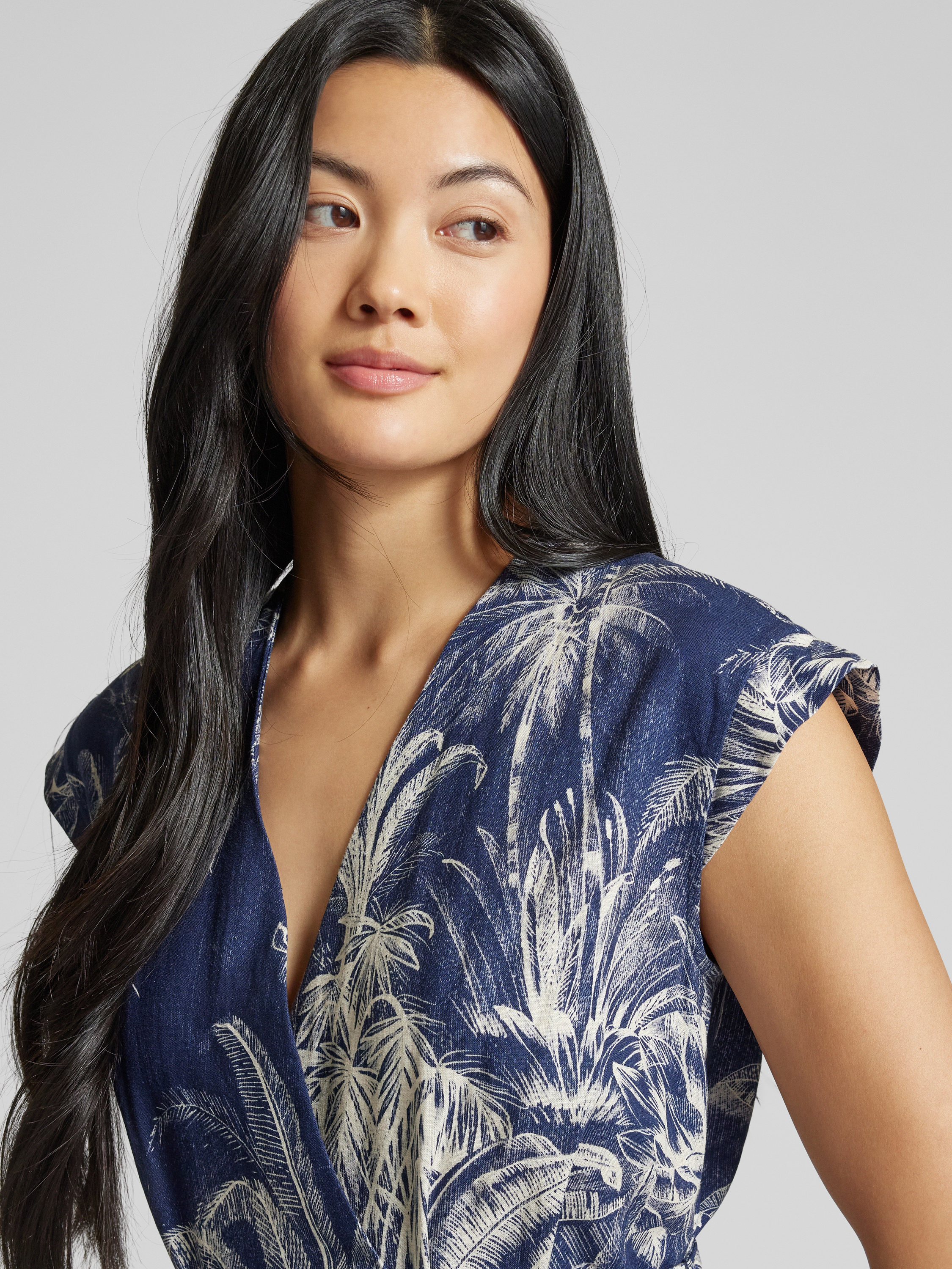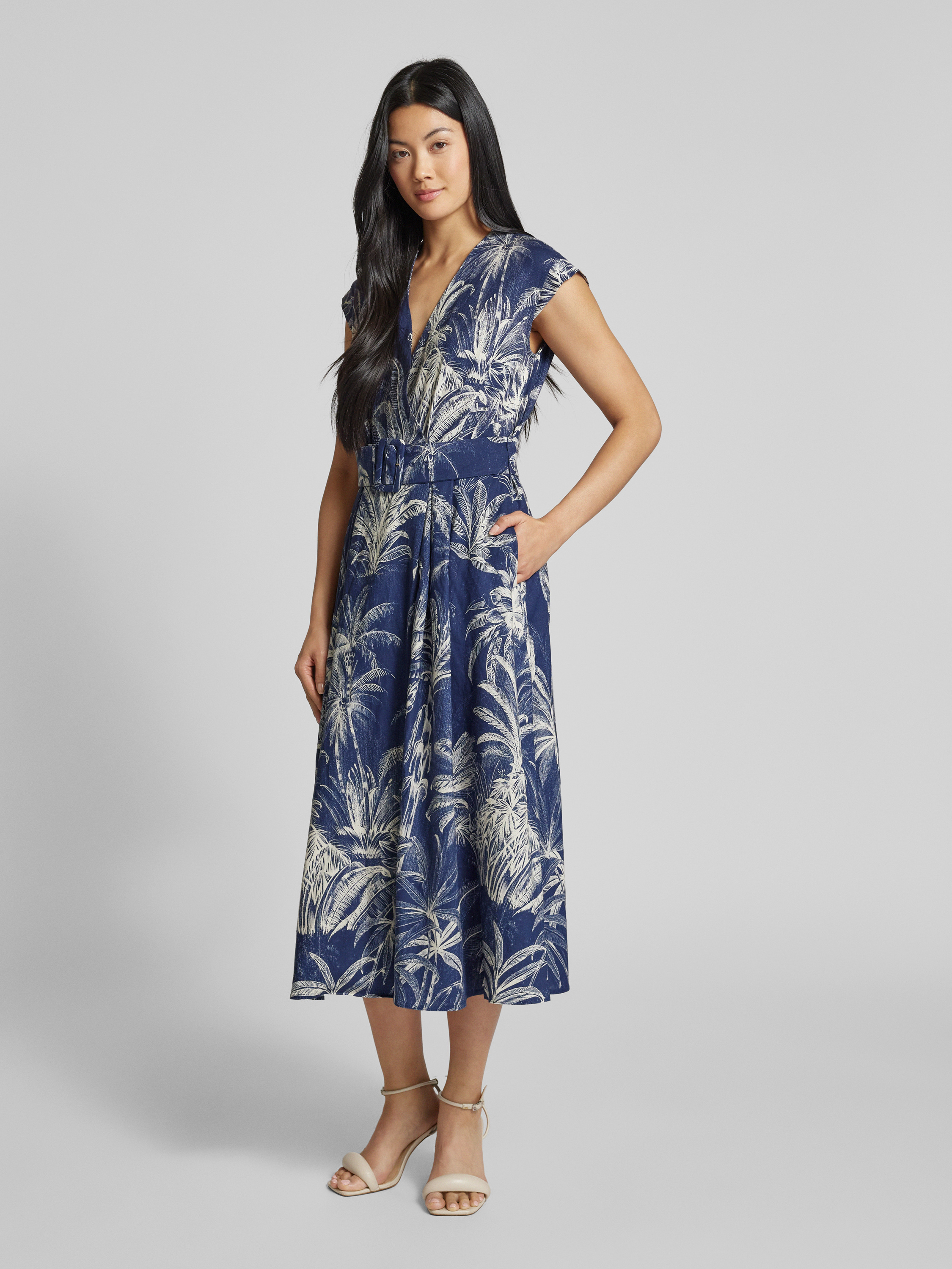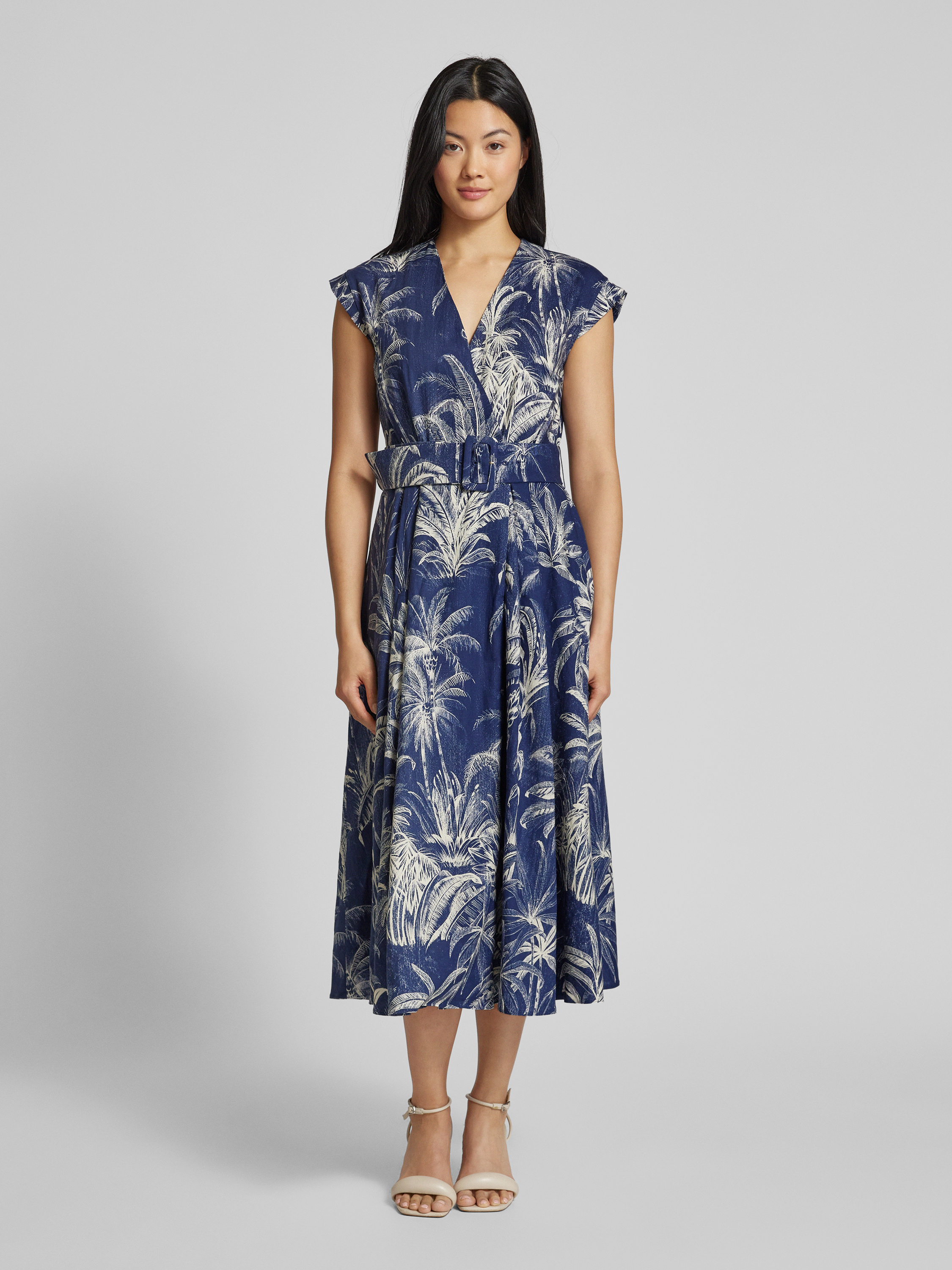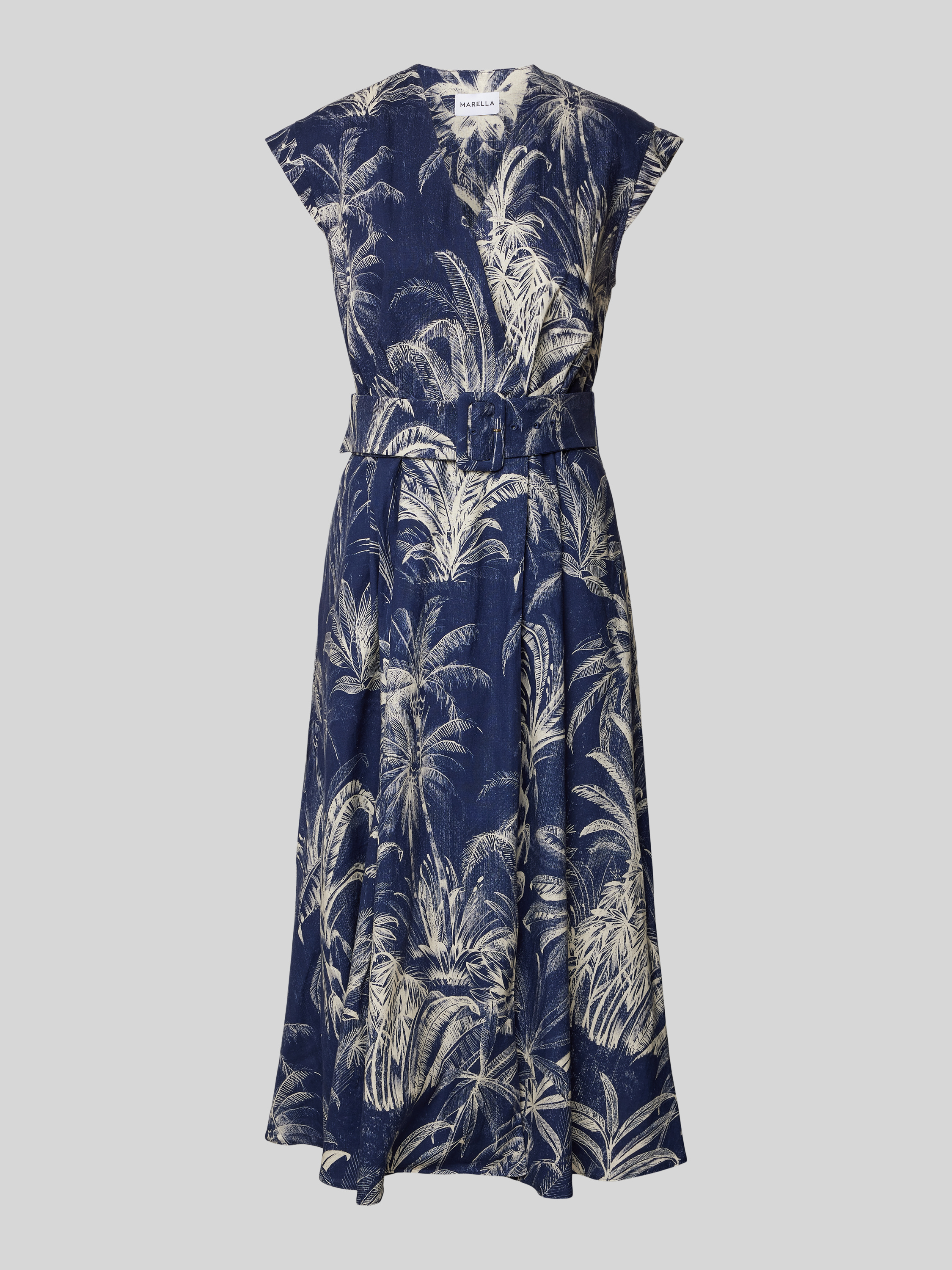 MarellaTailliertes Midikleid aus Leinen-Viskose-Mix Modell 'ALINE' in marine