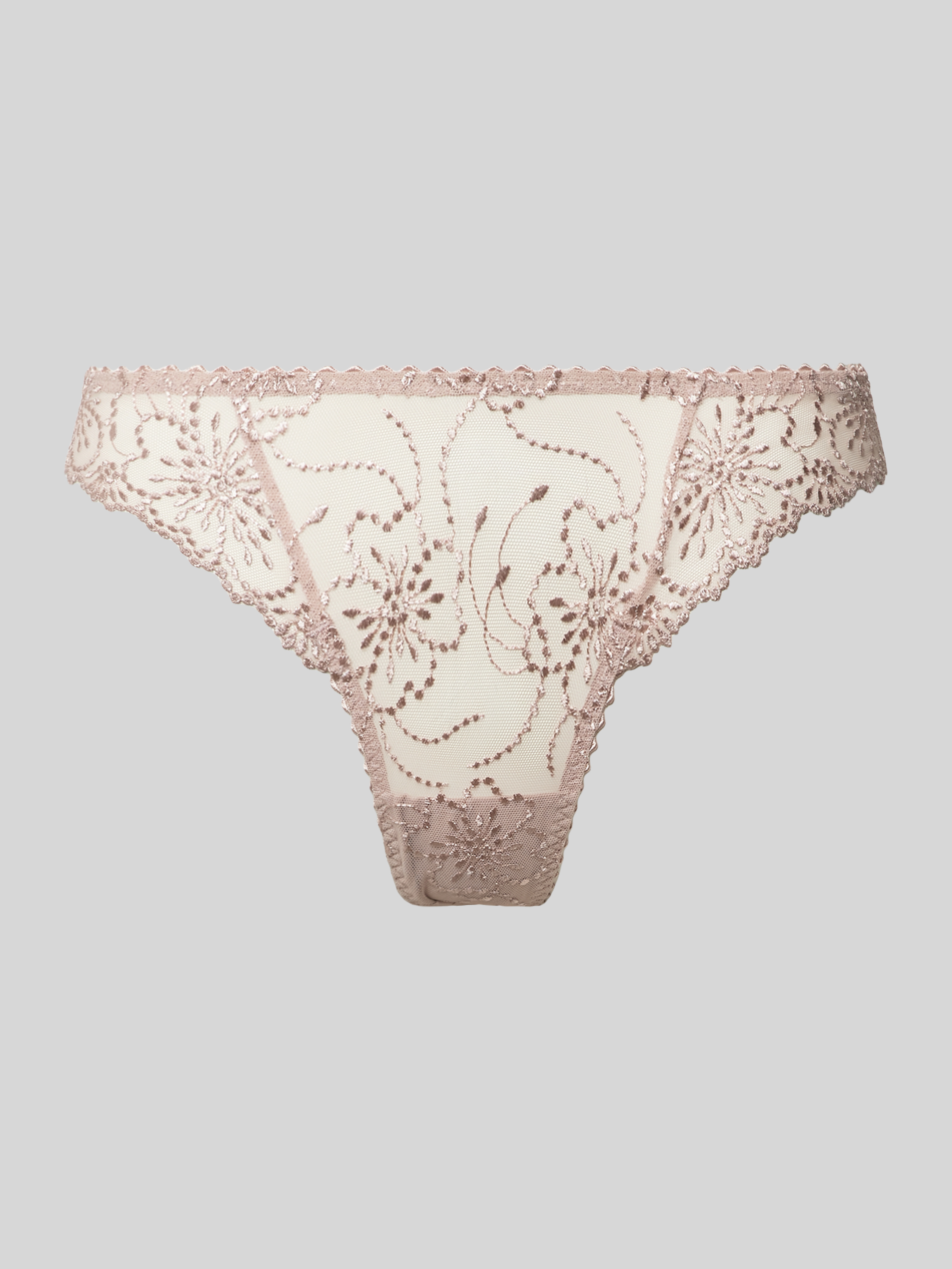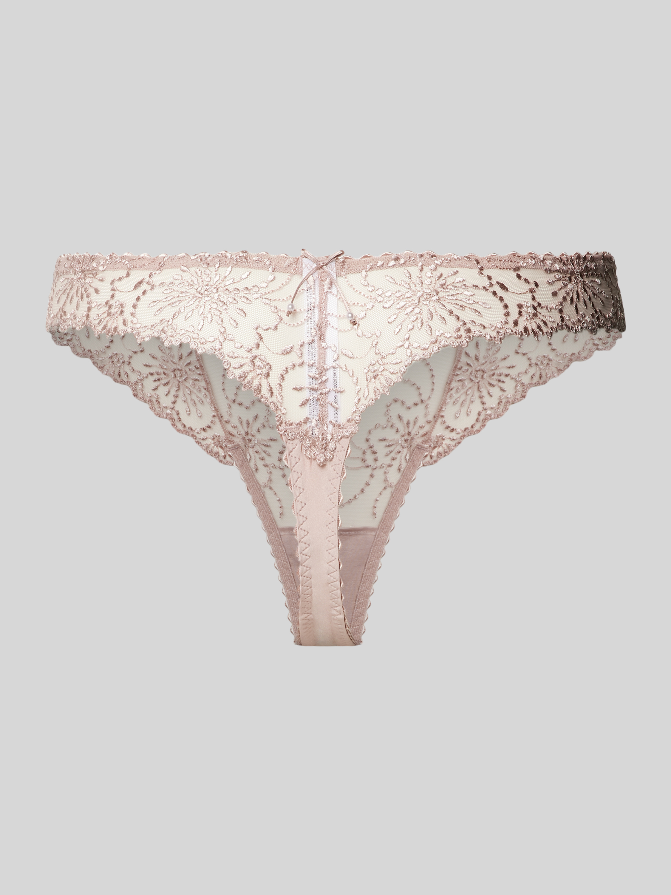 Der String mit Spitzenbesatz Modell 'Jane' von Marie Jo kombiniert einen eleganten Material-Mix mit einem Baumwoll-Anteil, der für ein angenehmes Tragegefühl sorgt. Dank seiner körpernahen Passform schmiegt er sich sanft an und bietet eine dezente Eleganz. Das unifarbene Design mit zartem Spitzenbesatz verleiht dem Kleidungsstück eine zeitlose Note.