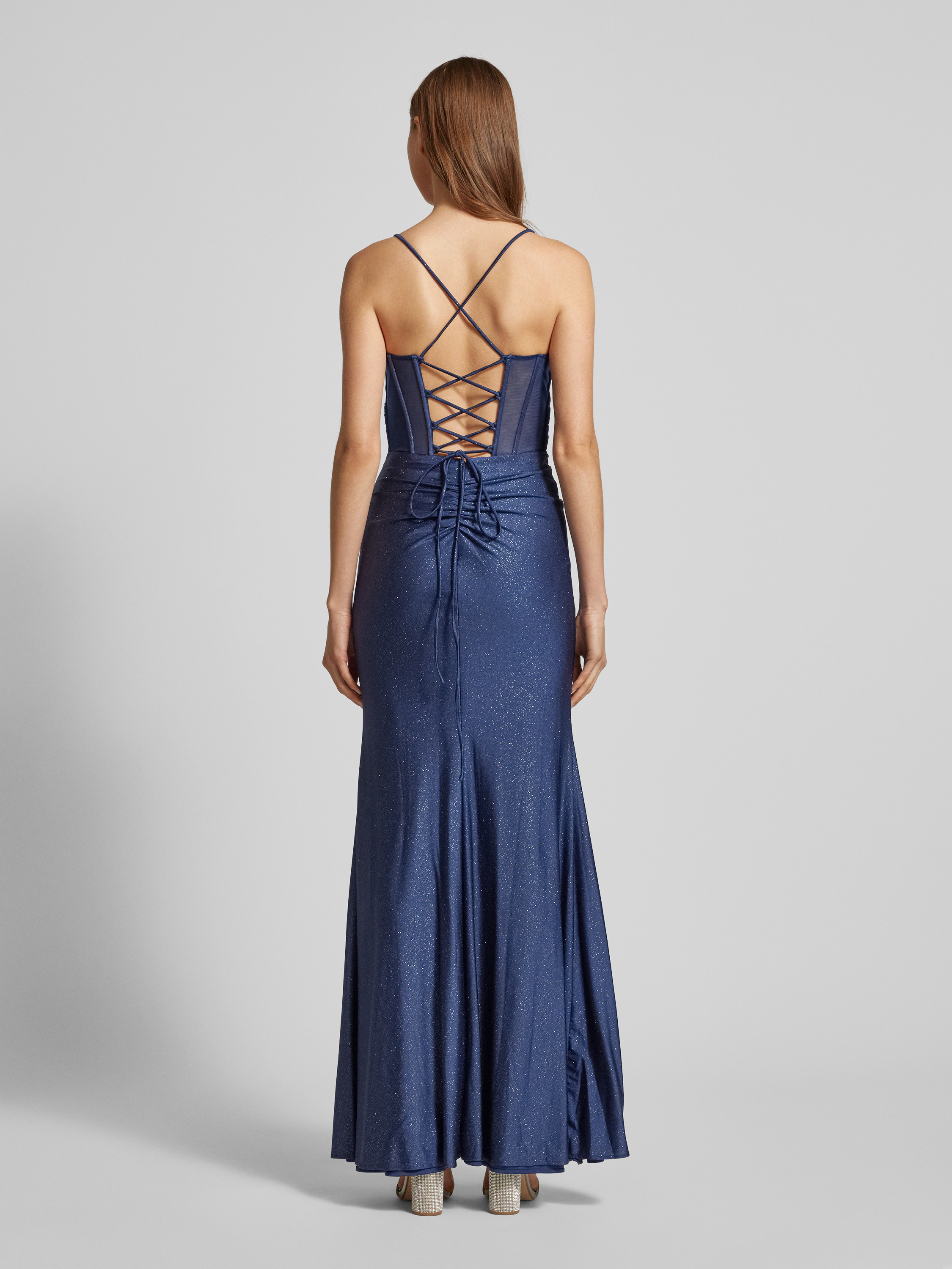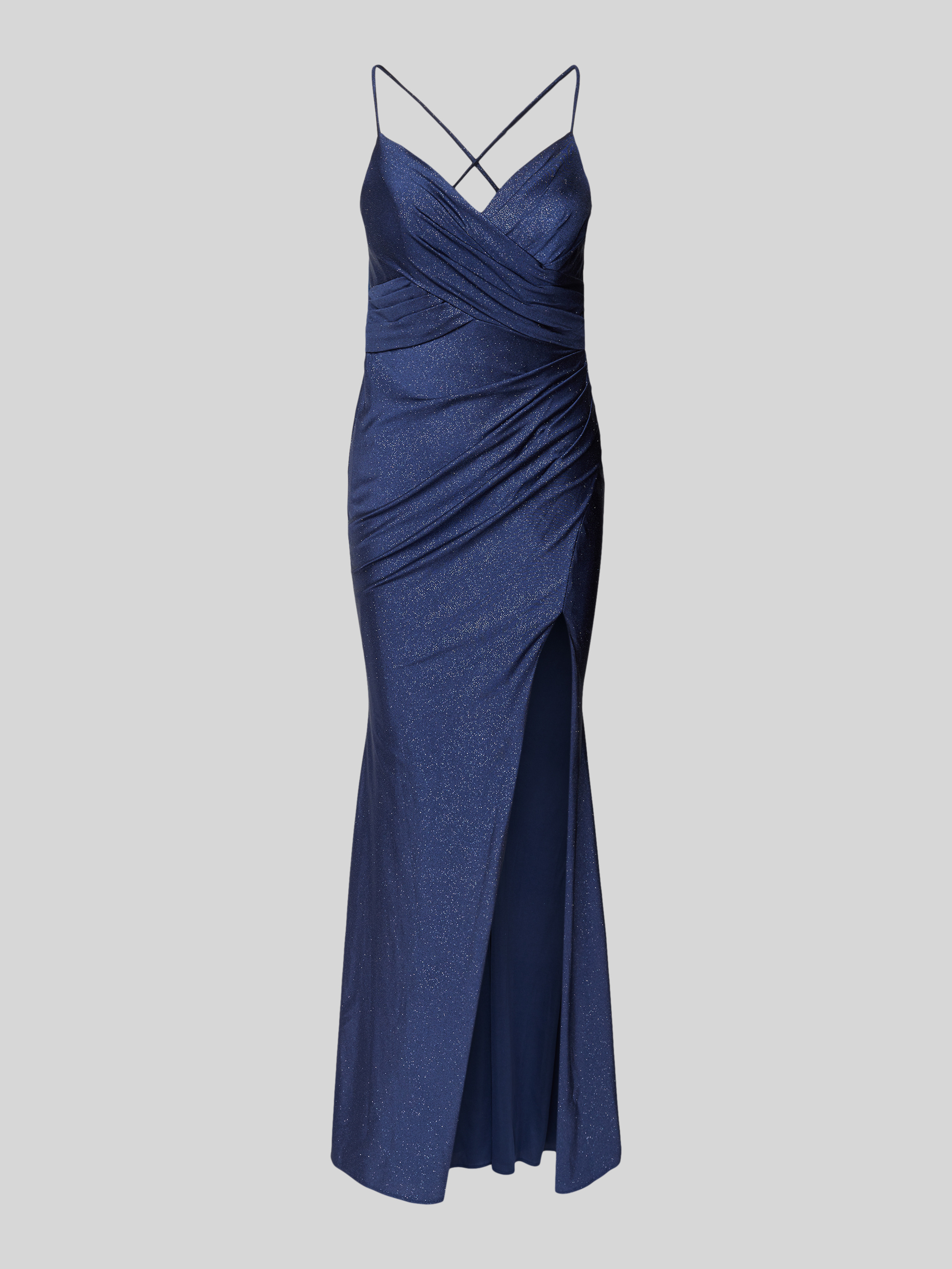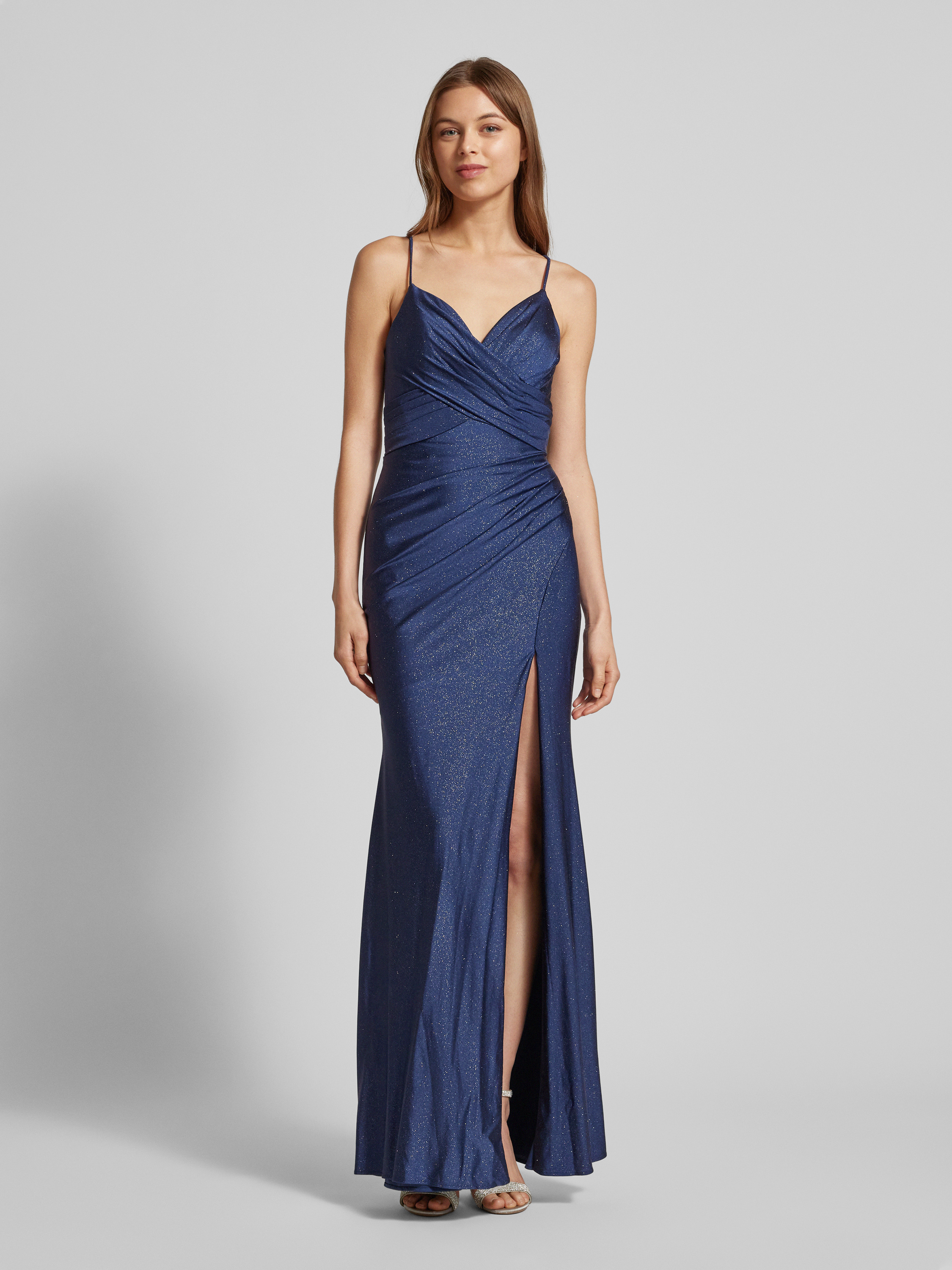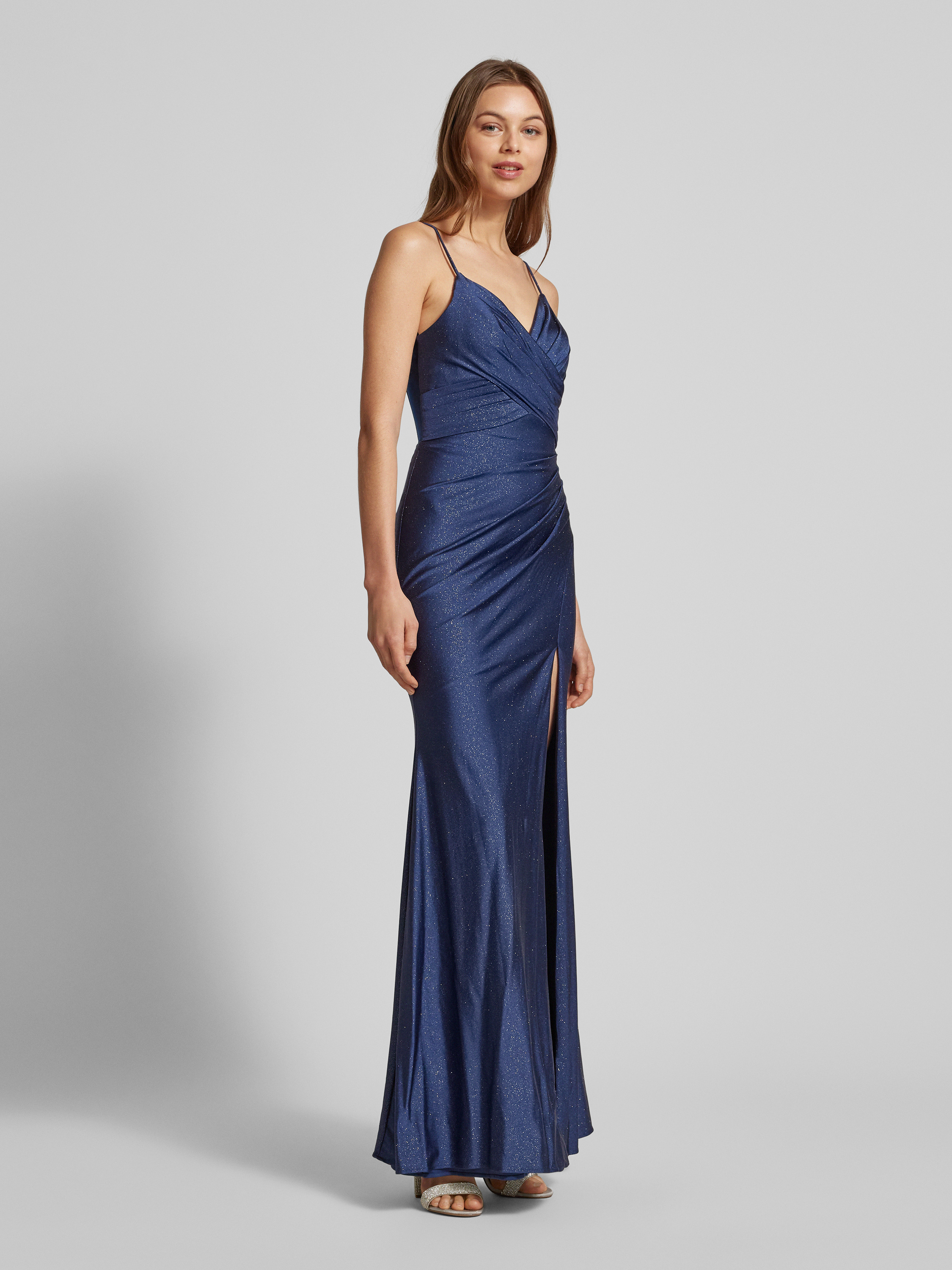 Das Abendkleid in Wickel-Optik von Mascara schmiegt sich durch den körpernahen Schnitt elegant an und lässt mit Spaghettiträgern sowie V-Ausschnitt dezente Akzente zu. Effektgarn sorgt für einen leichten Schimmer, während der Gehschlitz Bewegungsfreiheit bei festlichen Anlässen ermöglicht.