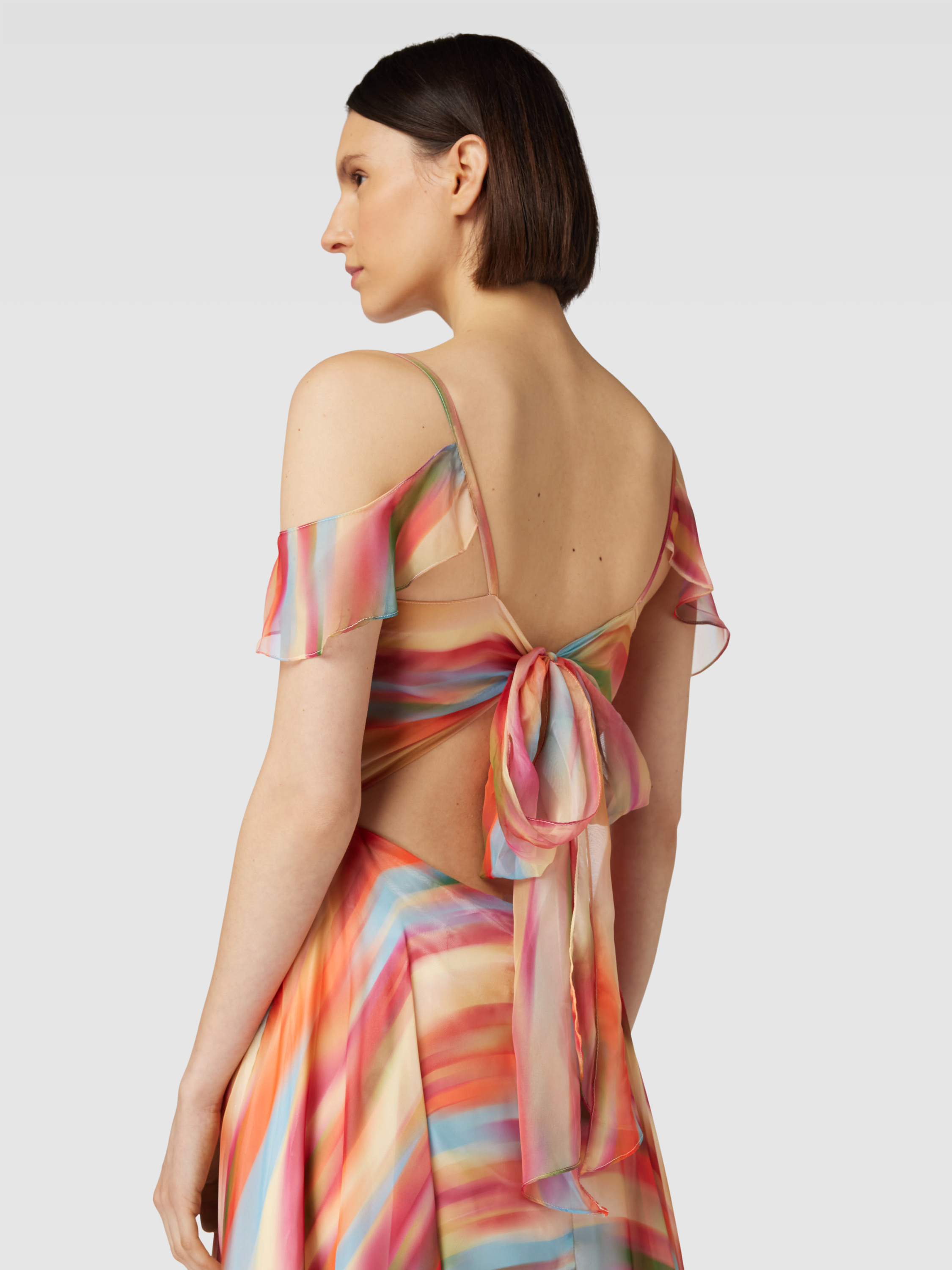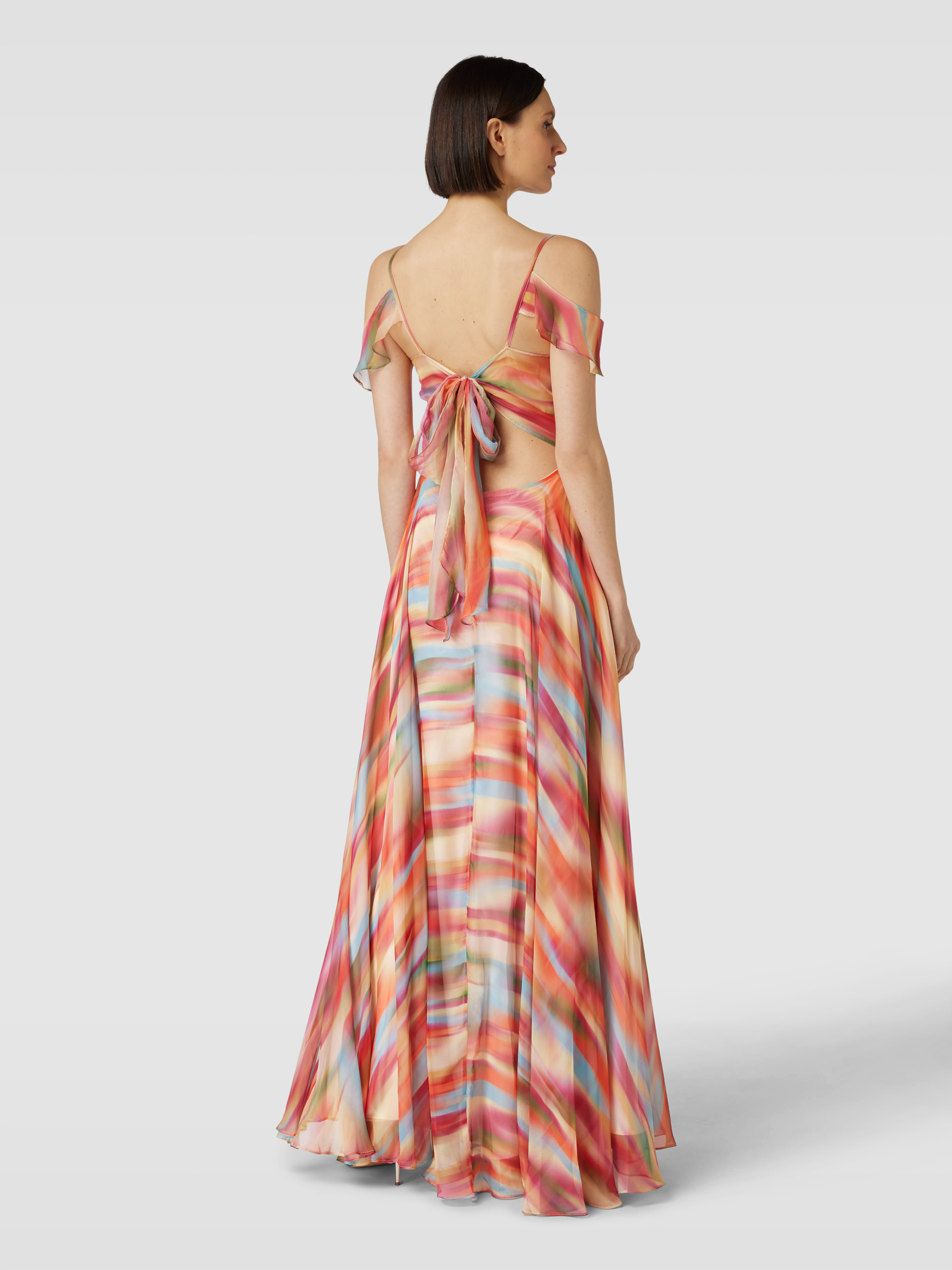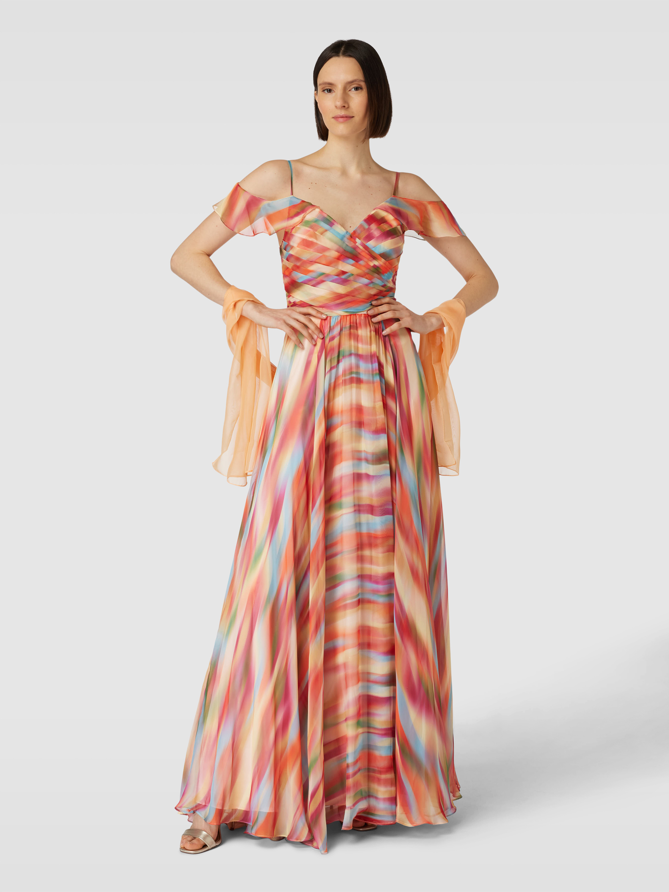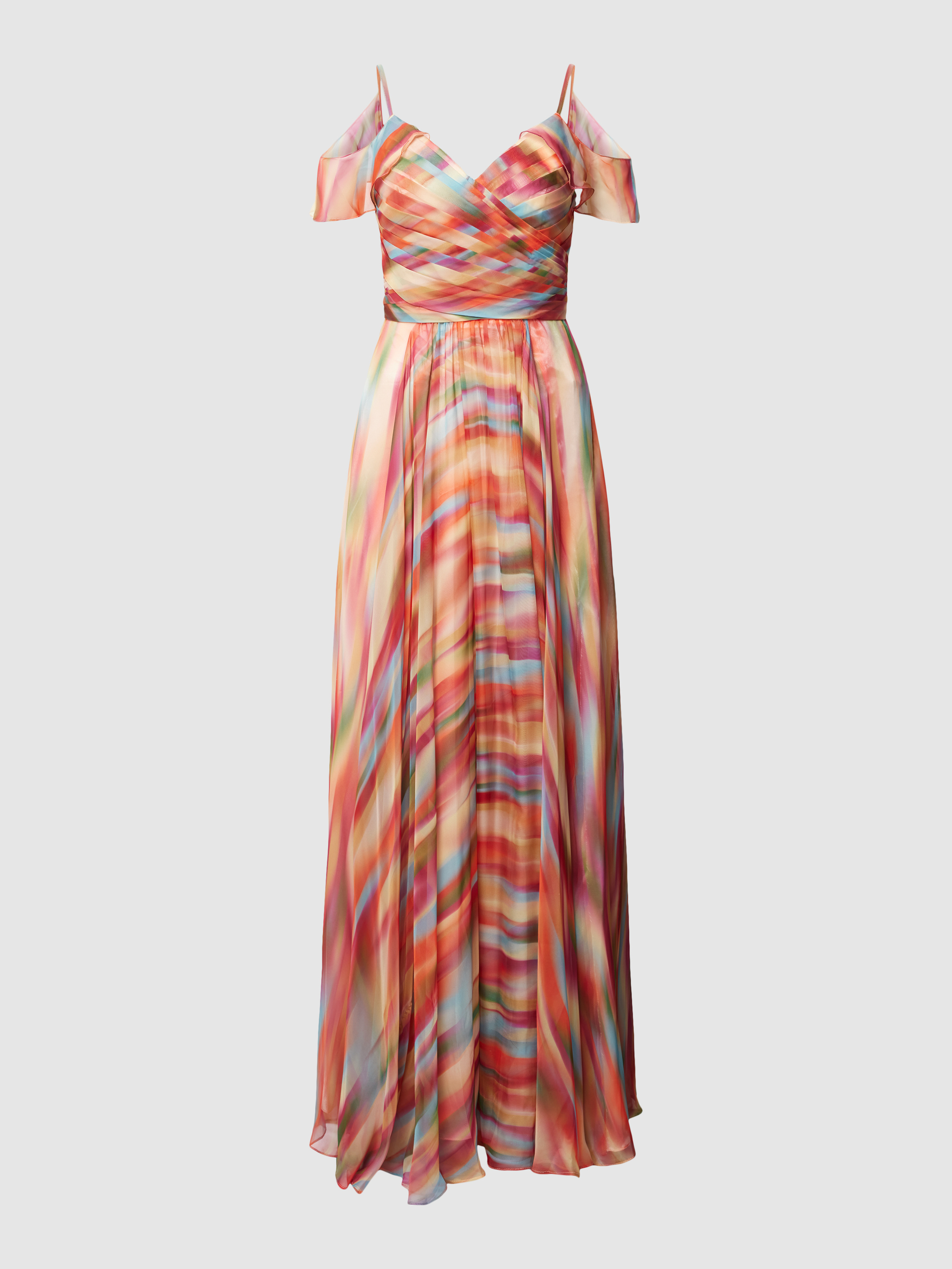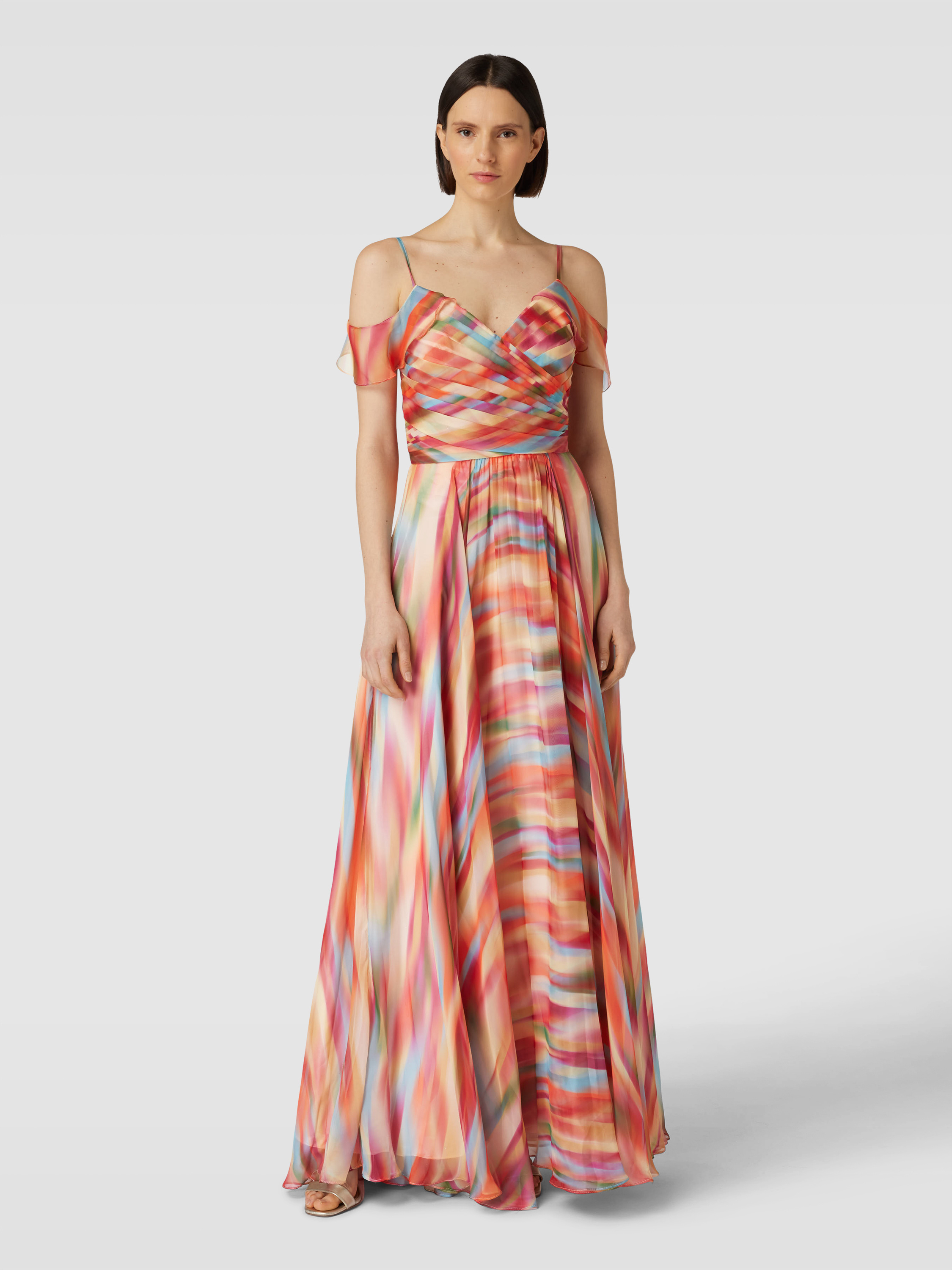 Das Abendkleid von Mascara verbindet die Eleganz von Chiffon mit einem herzförmigen Ausschnitt und kunstvollen Raffungen. Die ausgestellte Passform des Maxikleids schmeichelt der Silhouette und das Allover-Muster verleiht dem Look eine dynamische Note. Ein stilvoller Auftritt ist damit garantiert.