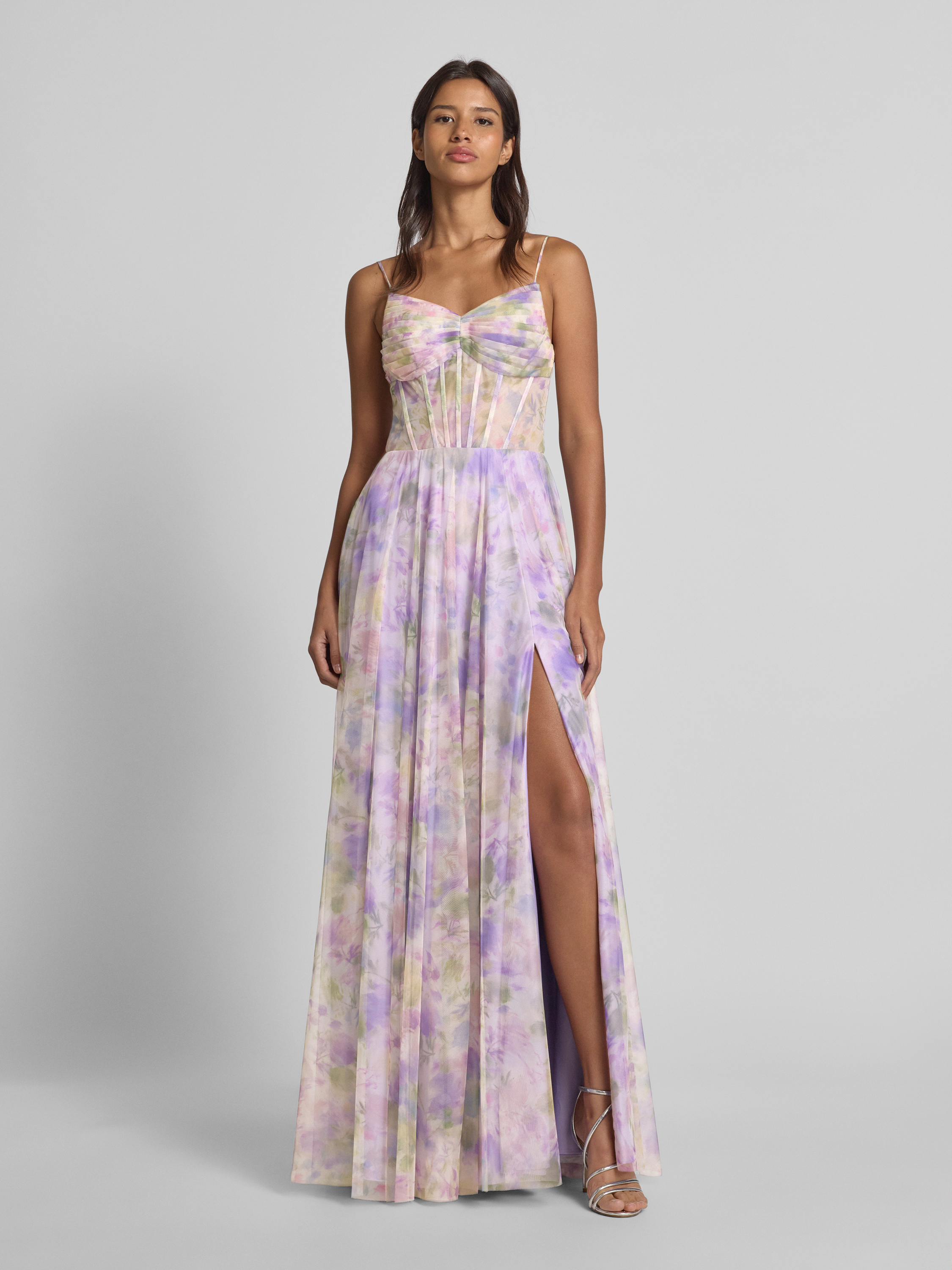 MascaraAbendkleid mit gelegten Falten in flieder melange