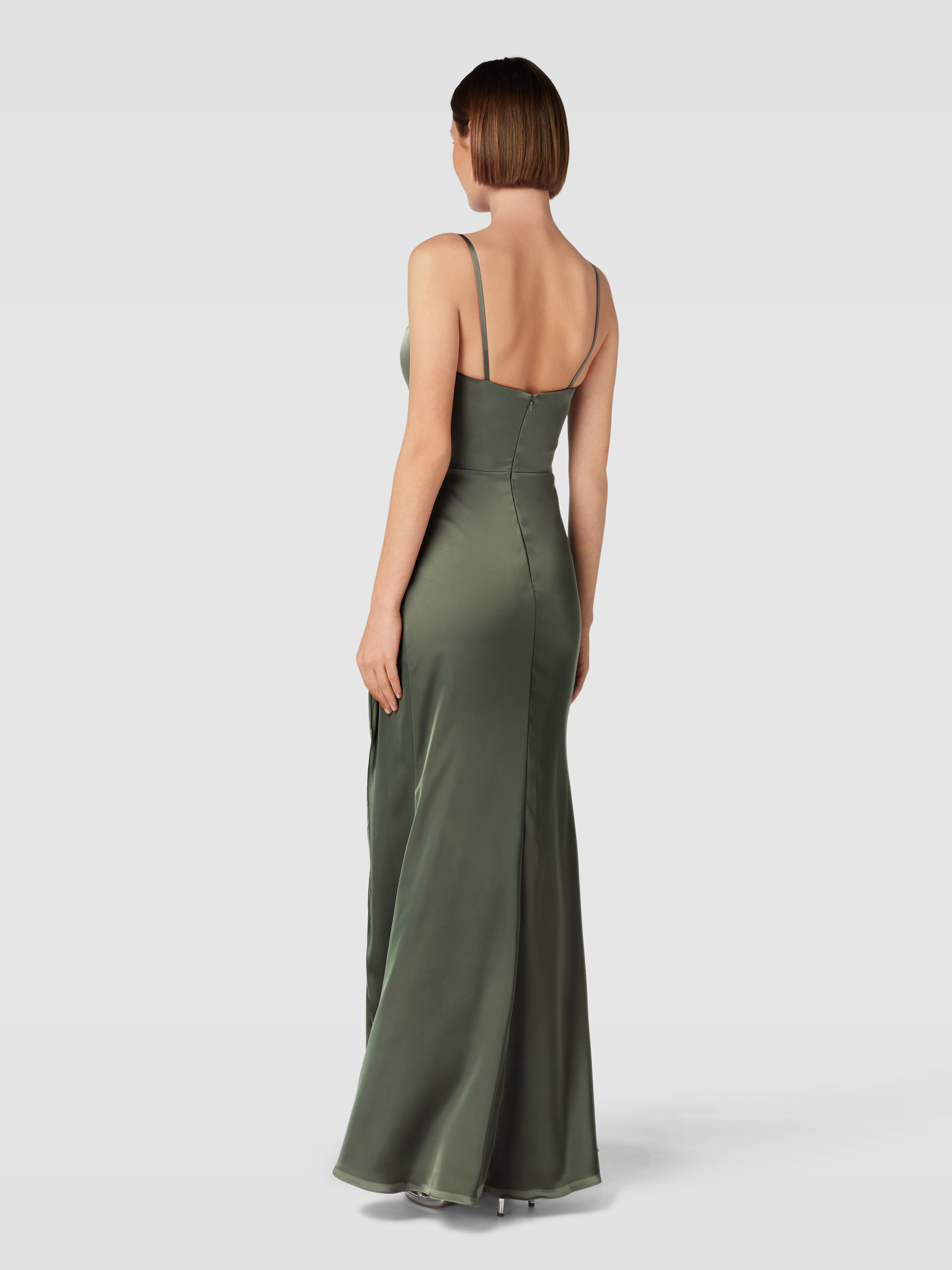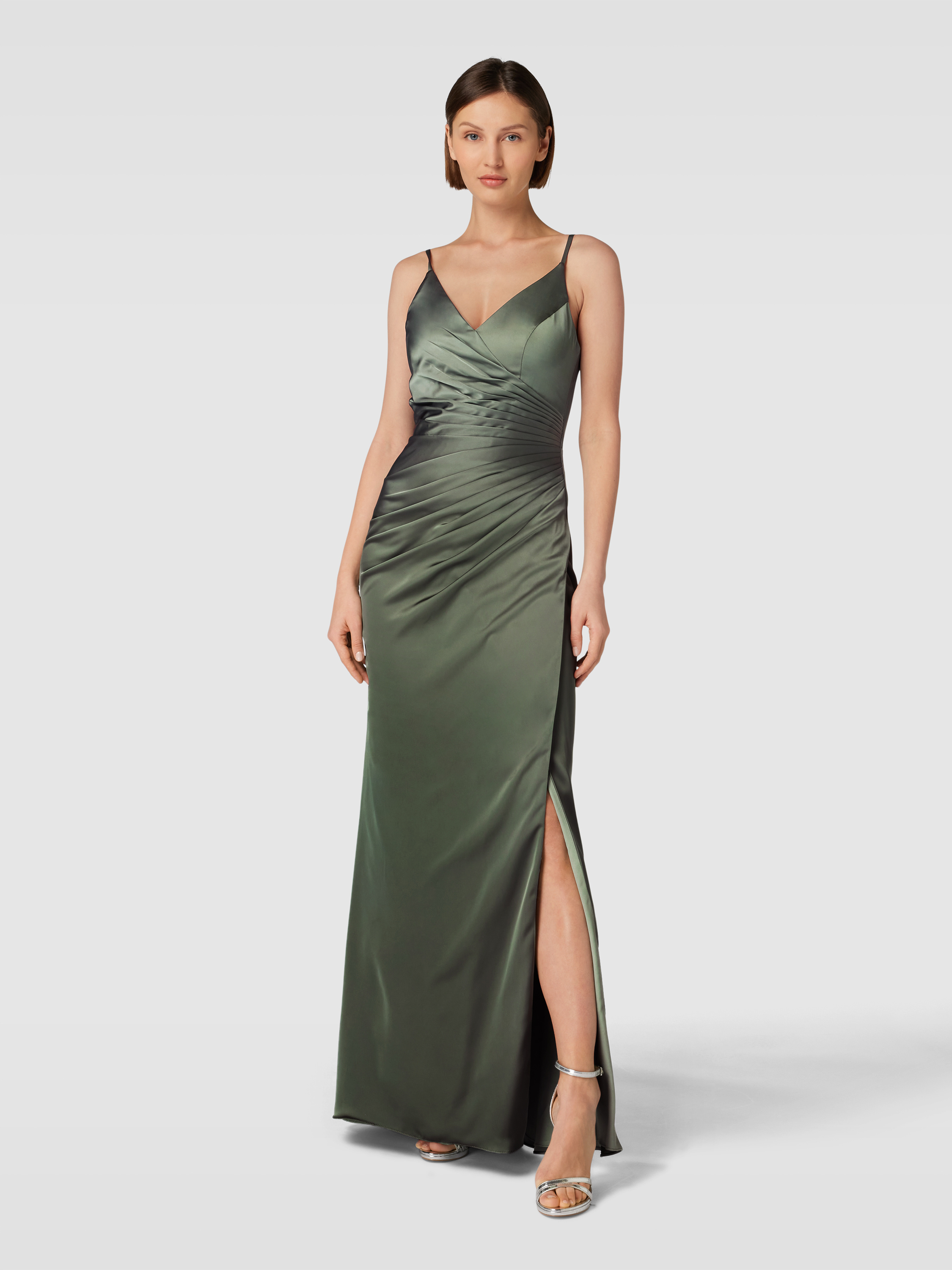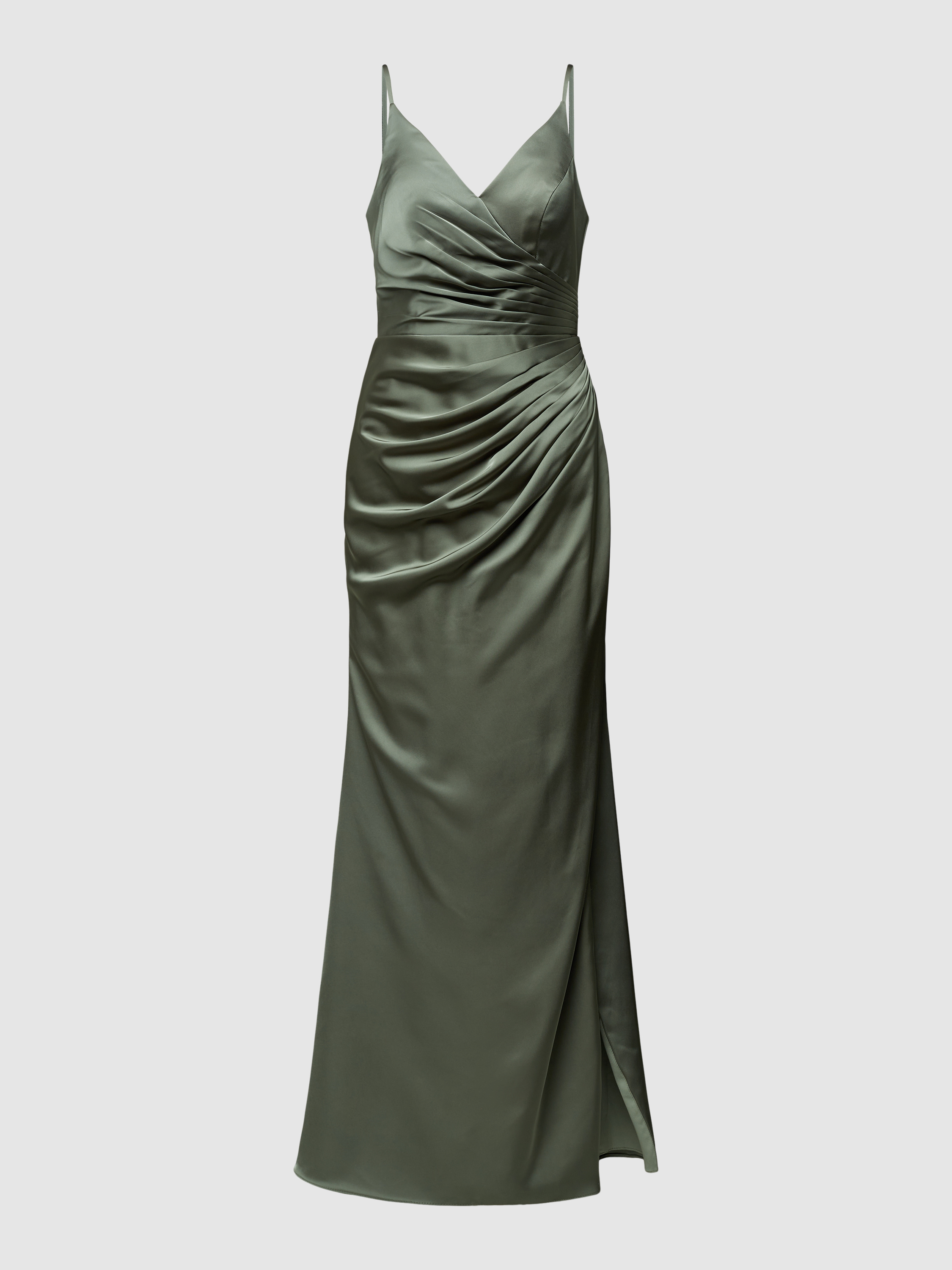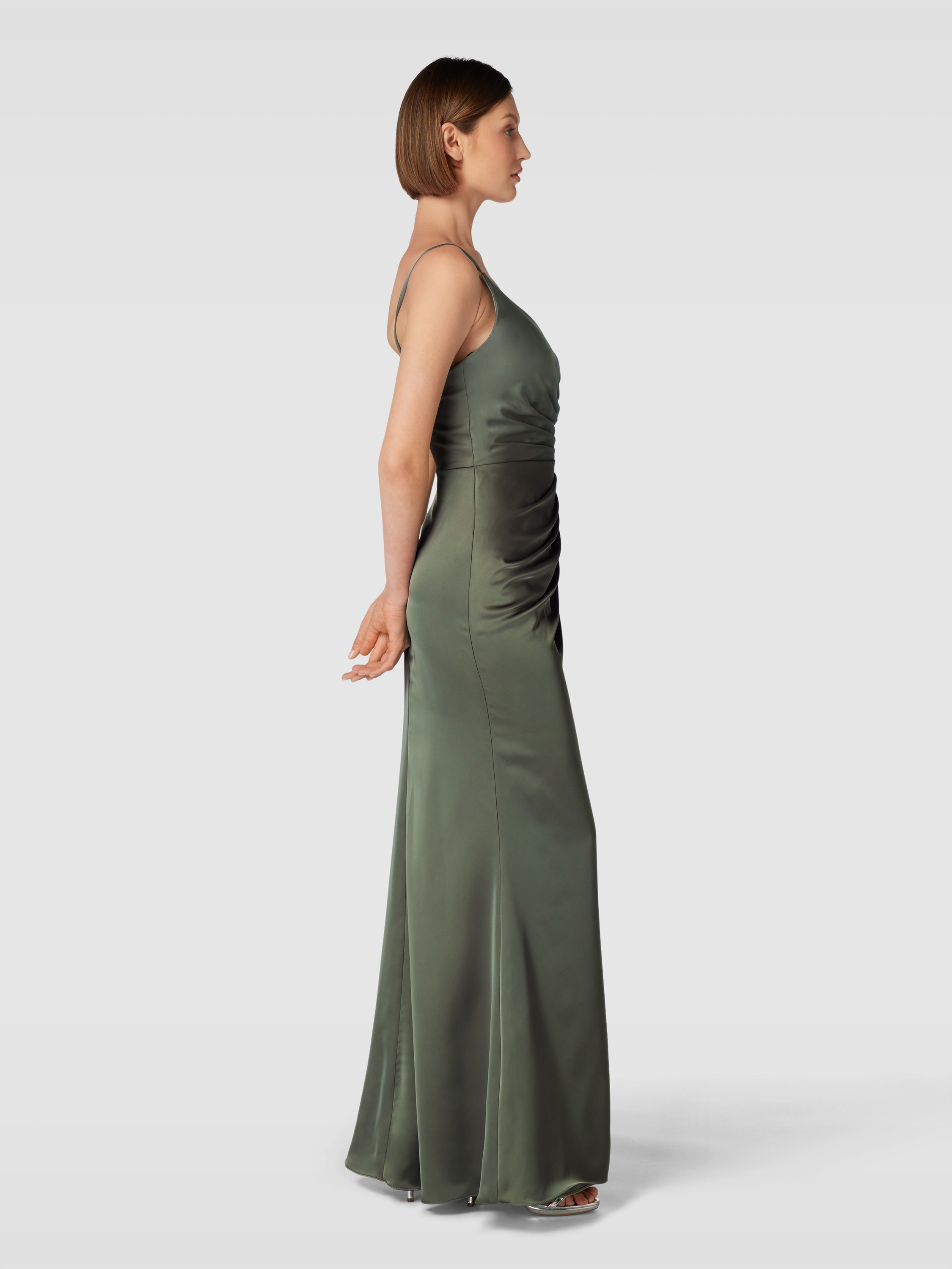 Das Abendkleid von Mascara ist aus Satin gefertigt und tailliert geschnitten. Es zeigt sich in Glanz-Optik und im unifarbenen Design mit Raffungen und Nahtreißverschluss.