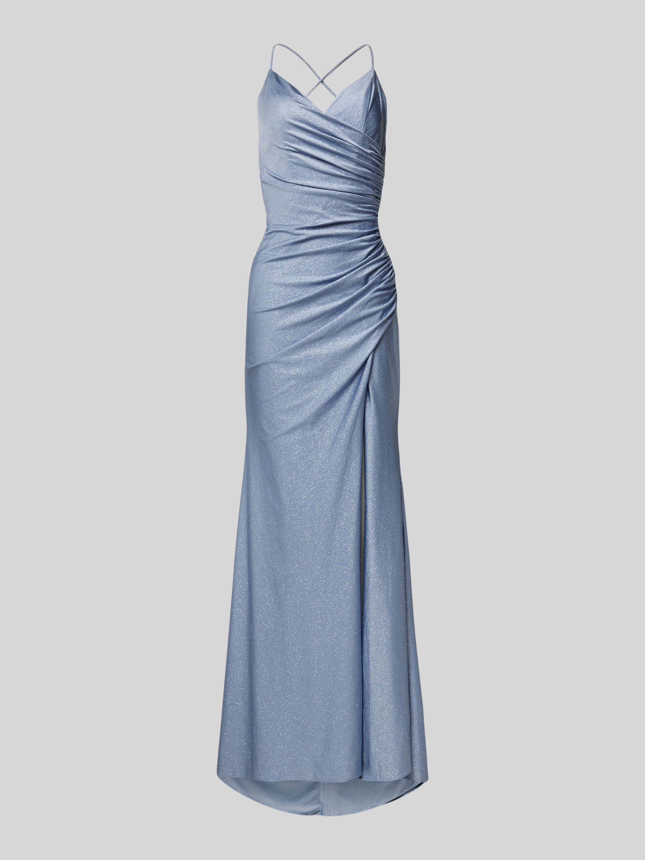 Das Abendkleid mit seitlichen Raffungen von Mascara fällt durch seinen taillierten Schnitt und den fließenden Maxistil auf. Durch V-Ausschnitt und feine Spaghettiträger entsteht eine feminine Silhouette, die angenehm sitzt. Effektgarn sorgt für dezente Akzente, während die seitlichen Raffungen schmeichelnd wirken.
