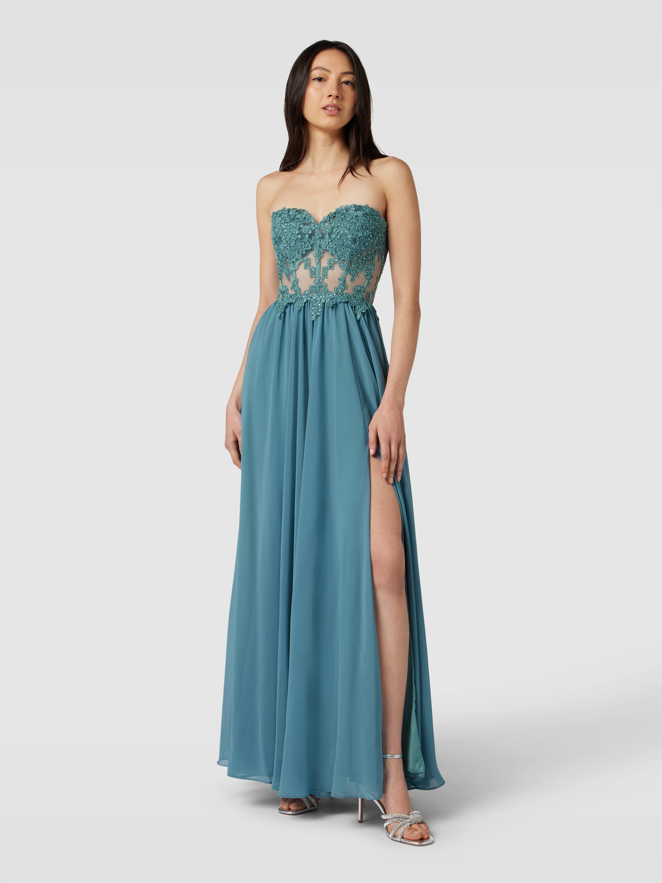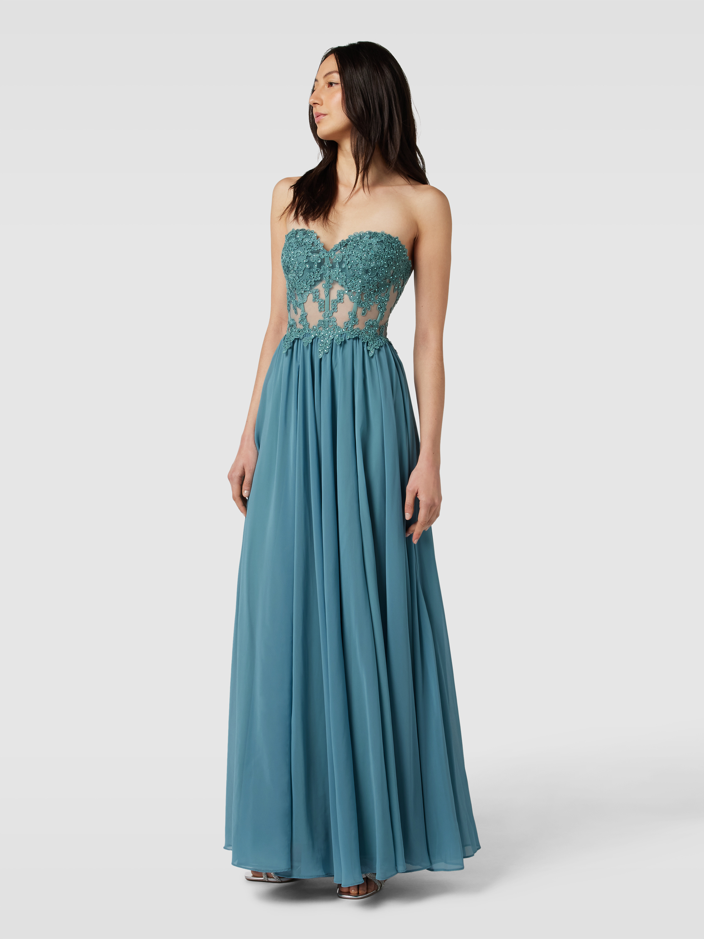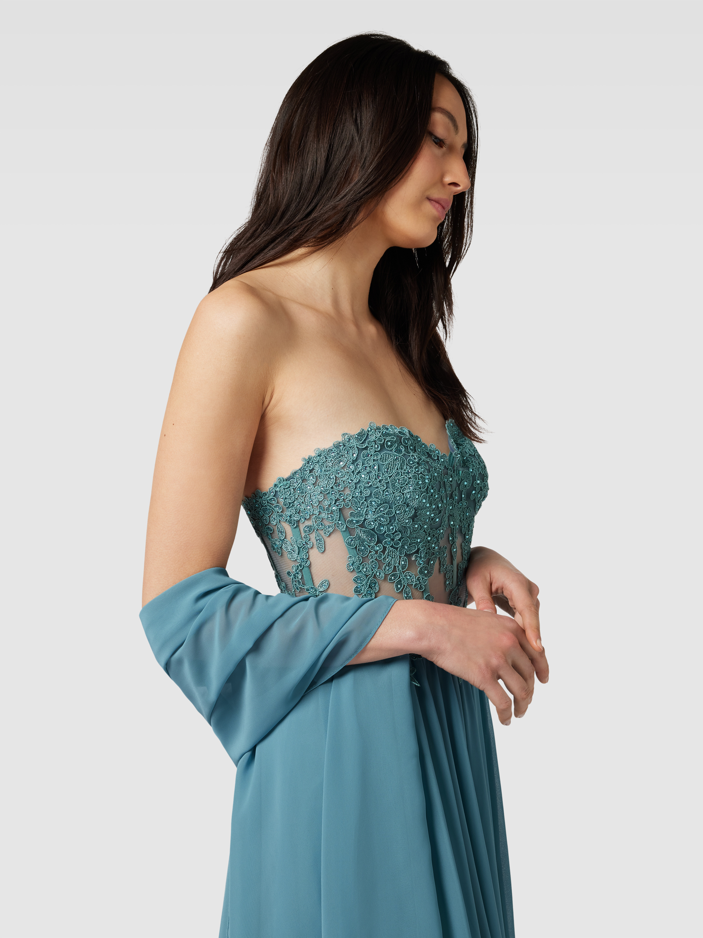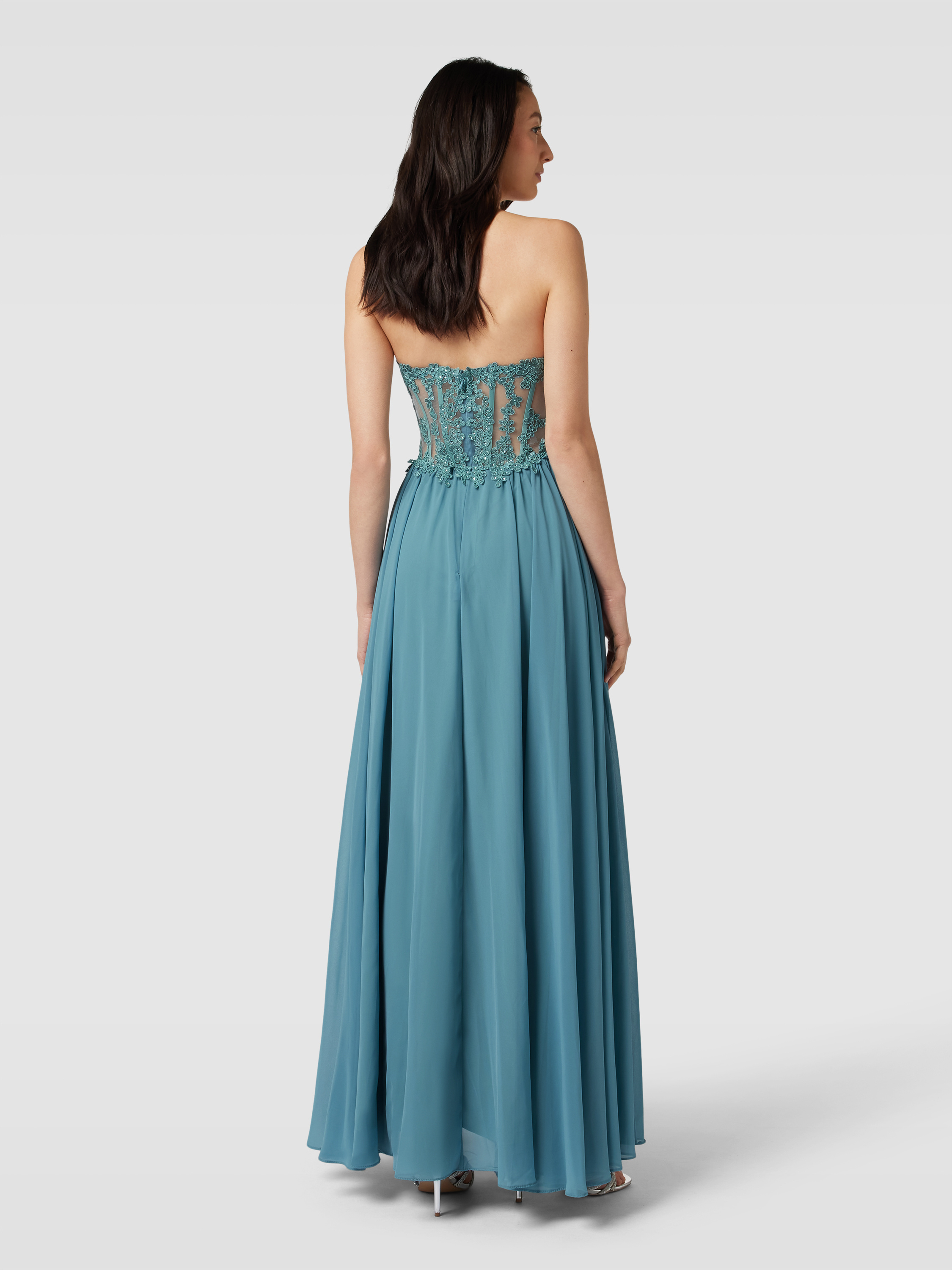MascaraAbendkleid mit Spitzenbesatz in eisblau