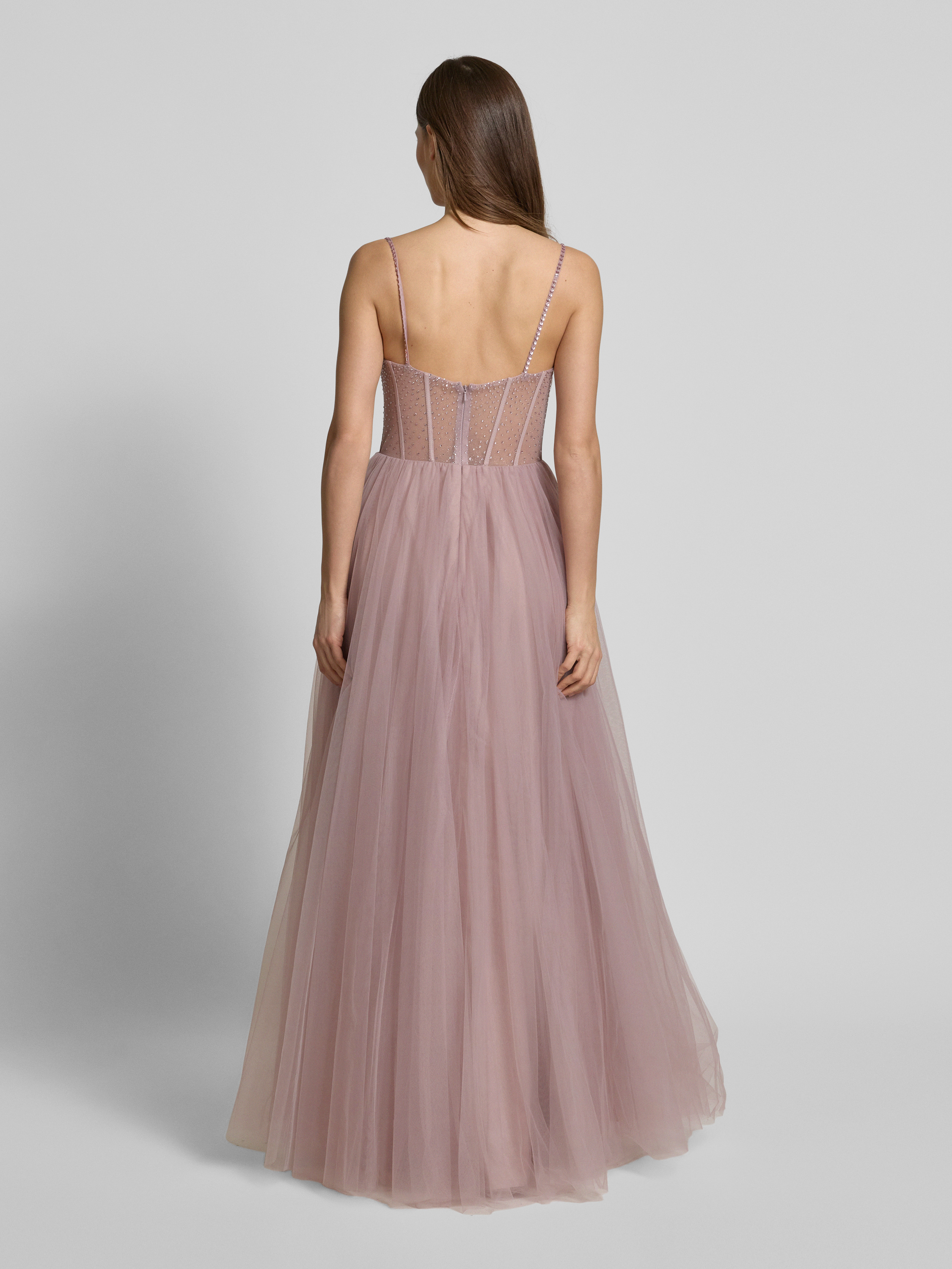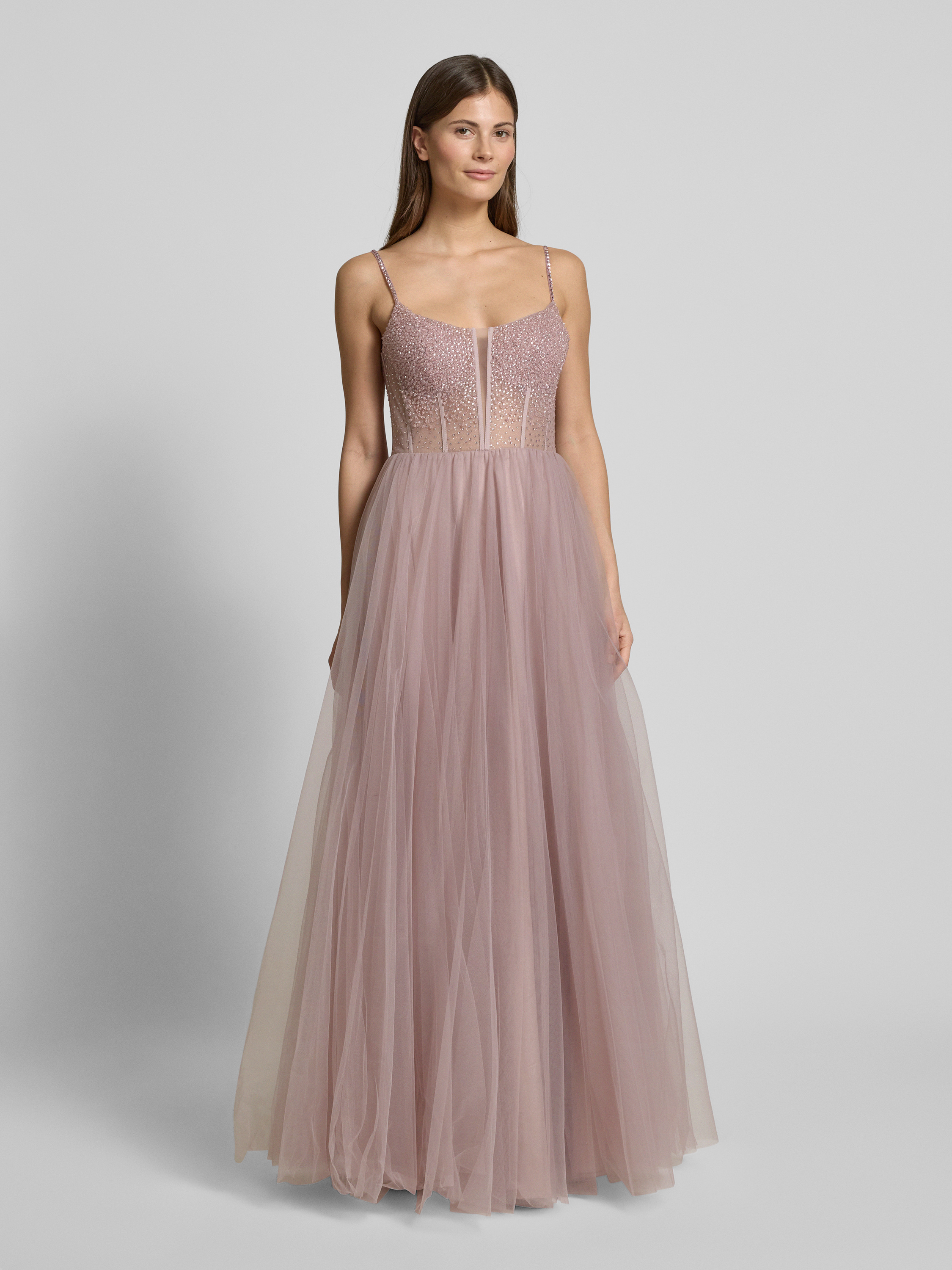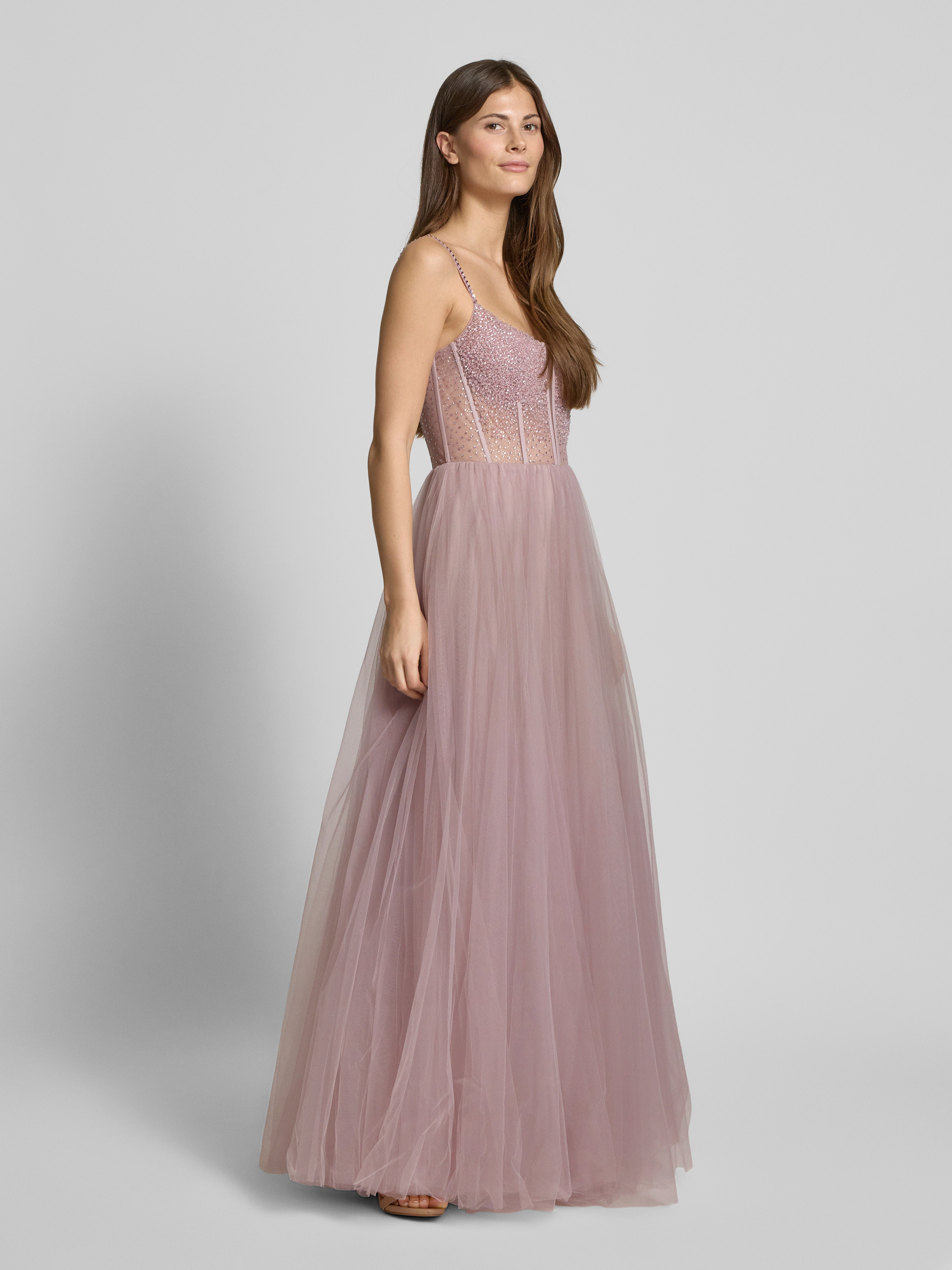 MascaraAbendkleid mit Zier- und Strasssteinbesatz in mauve