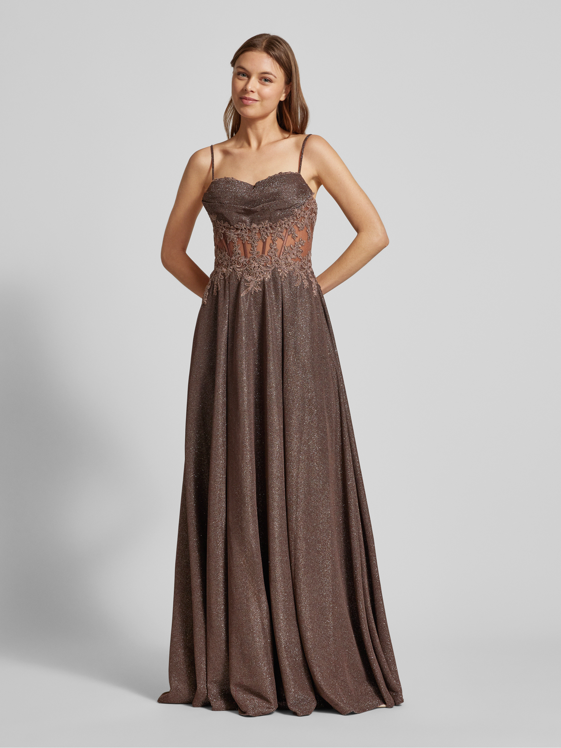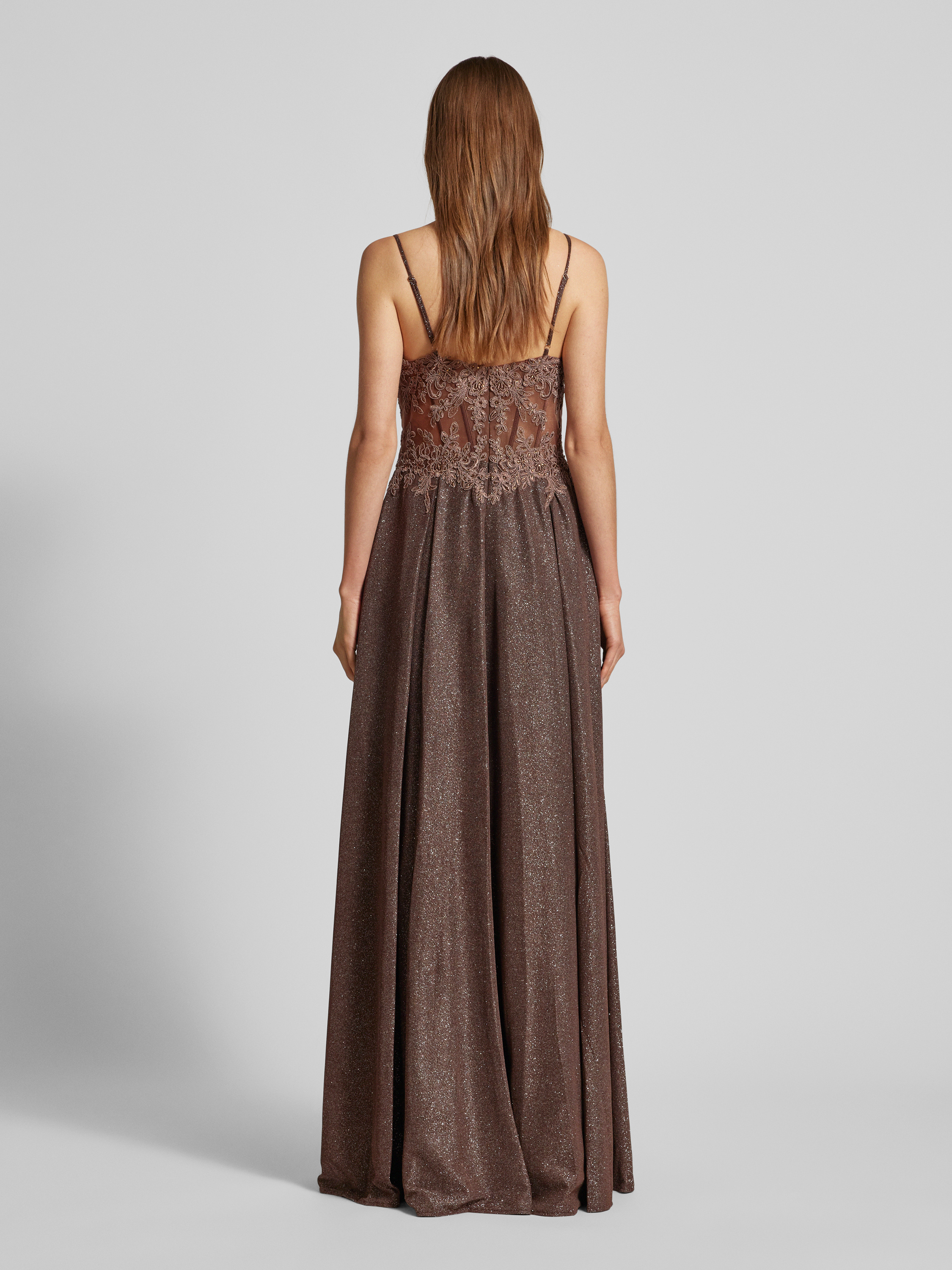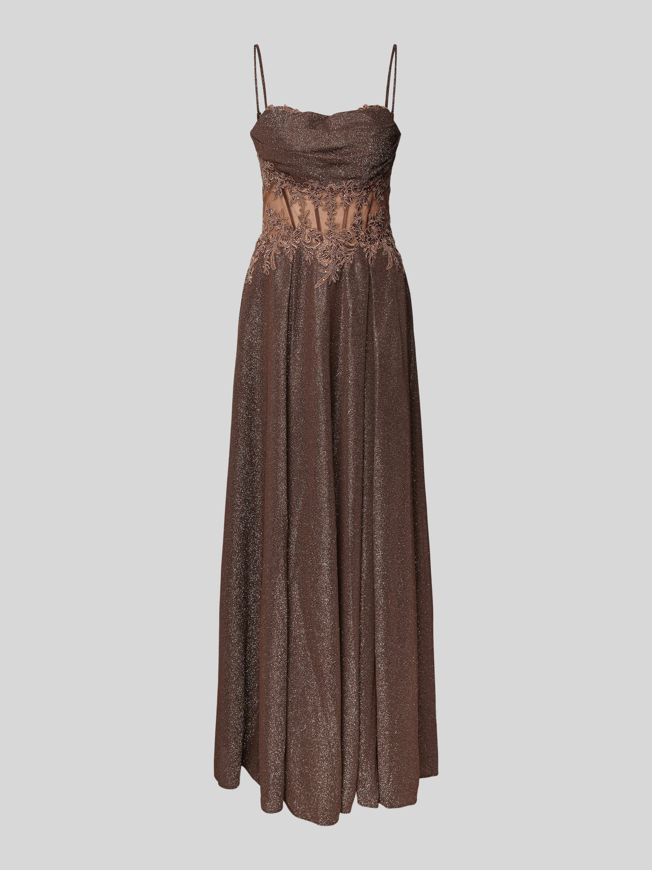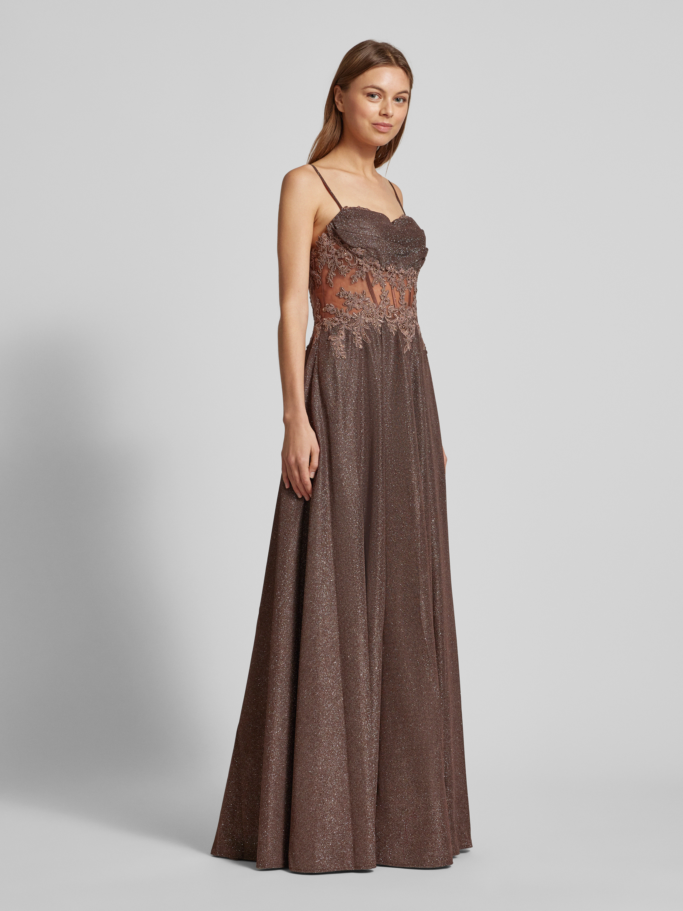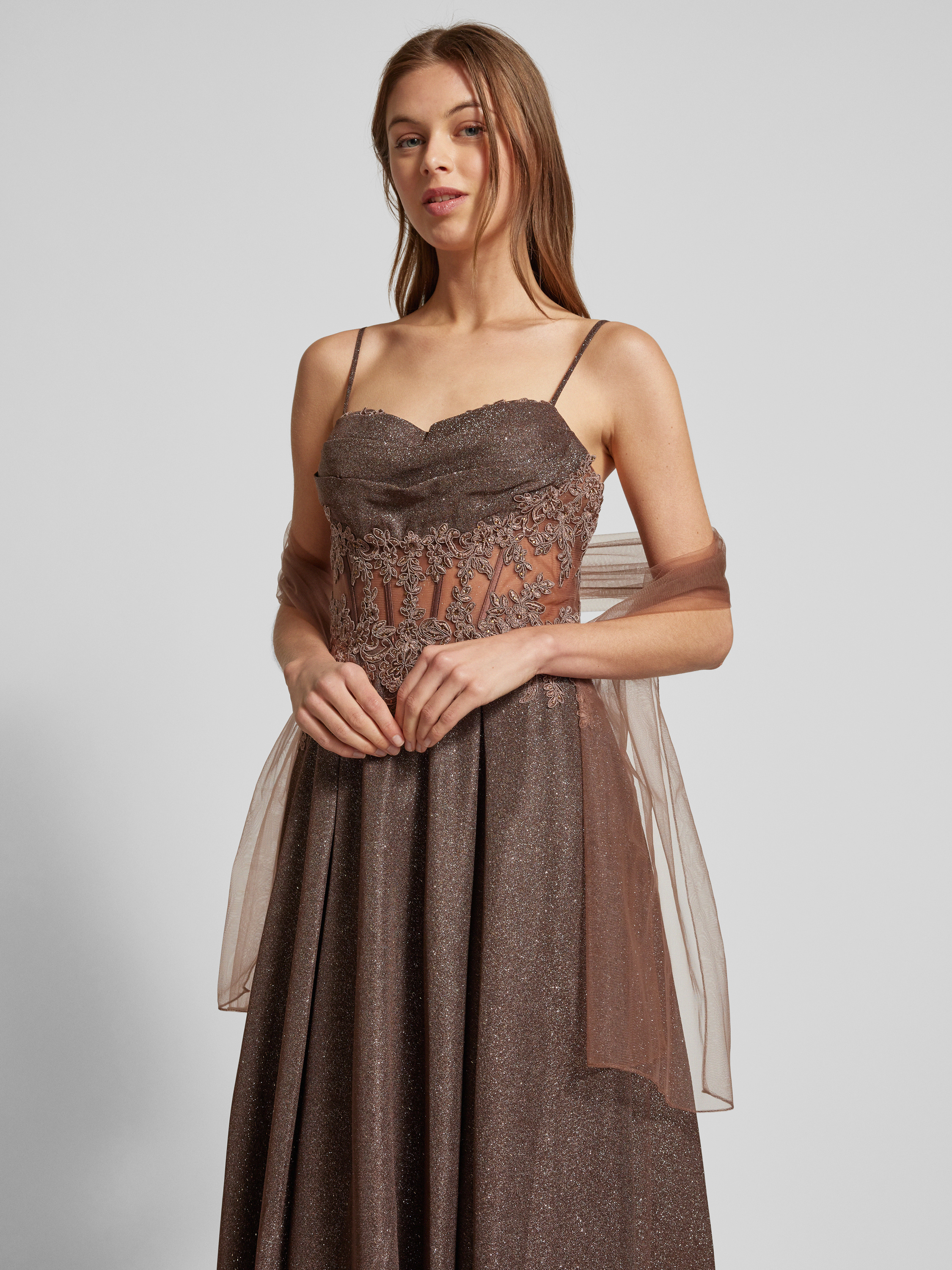 MascaraAbendkleid mit Ziersteinbesatz in mittelbraun