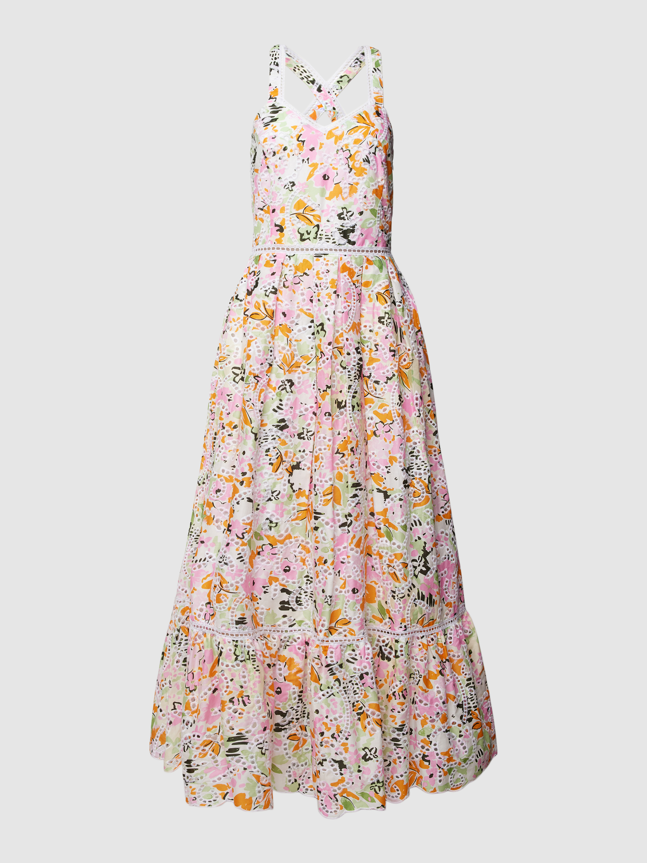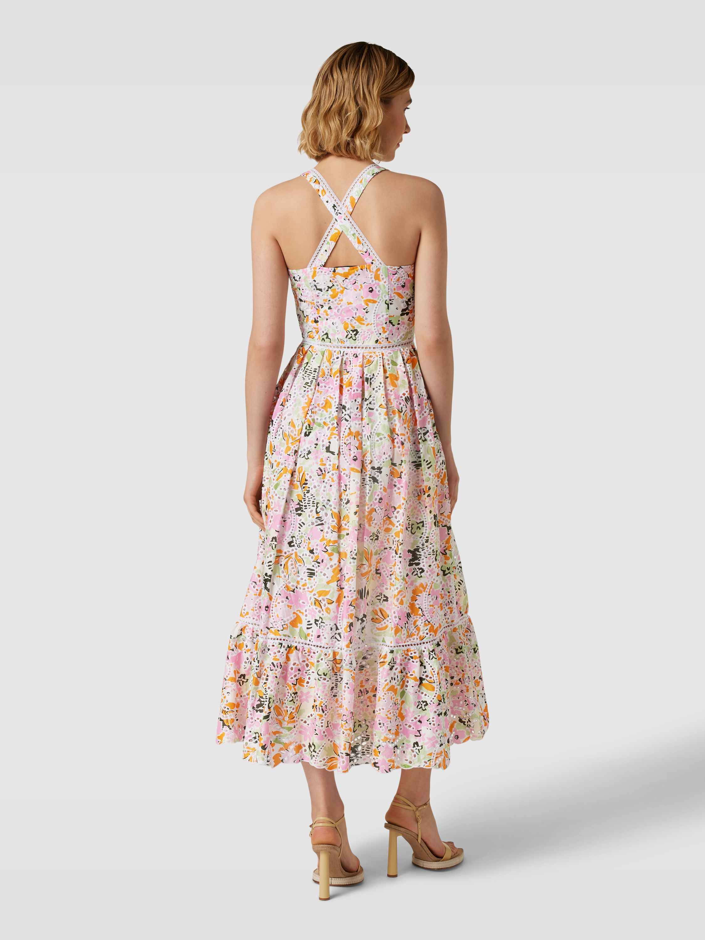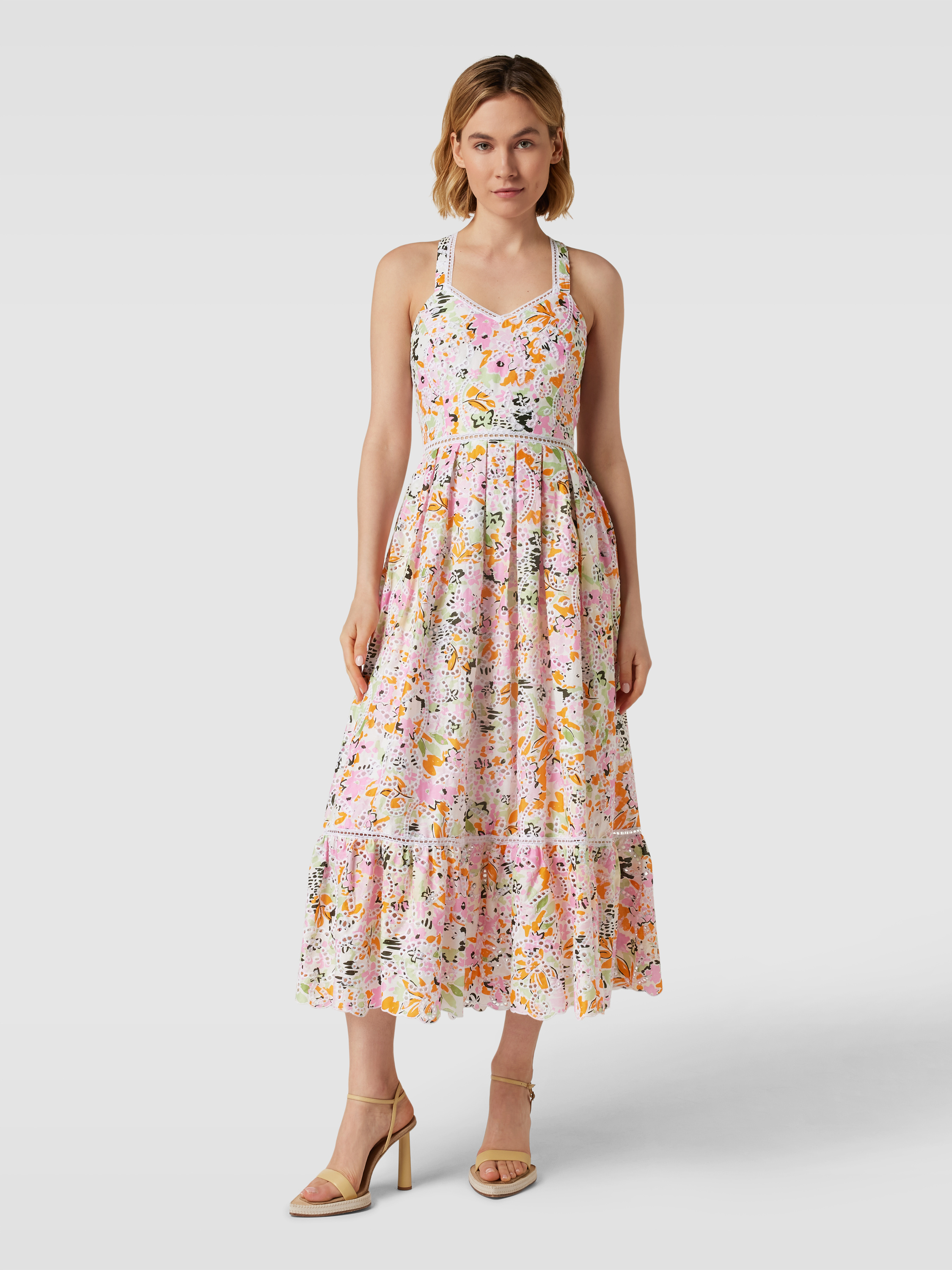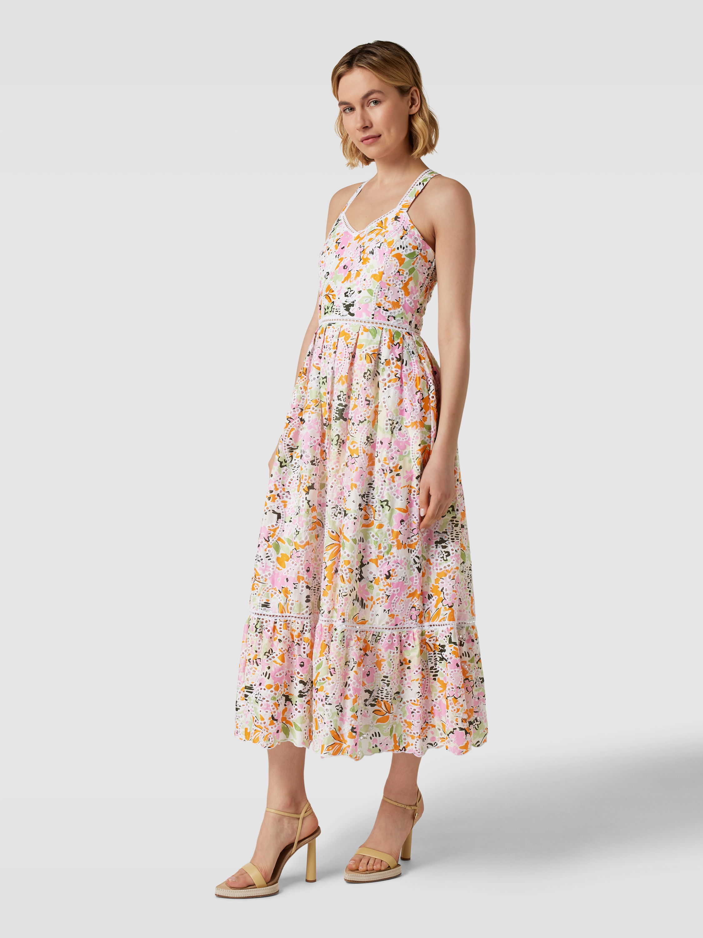 Midikleid mit Lochstickerei Modell 'EFFLUVIO' in hellrosa