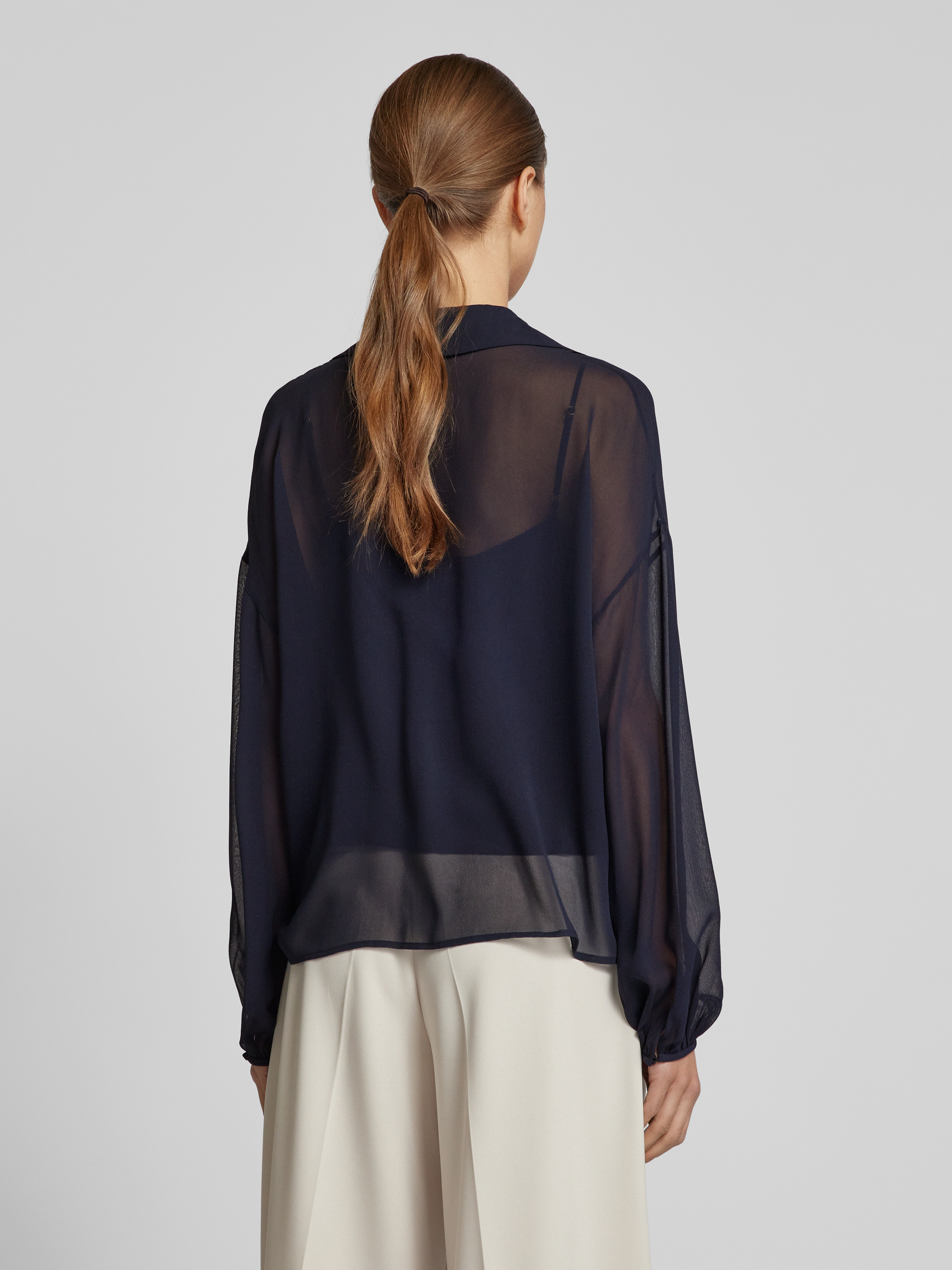 Max Mara StudioRegular Fit Bluse mit Umlegekragen Modell 'VALDAI' in dunkelblau