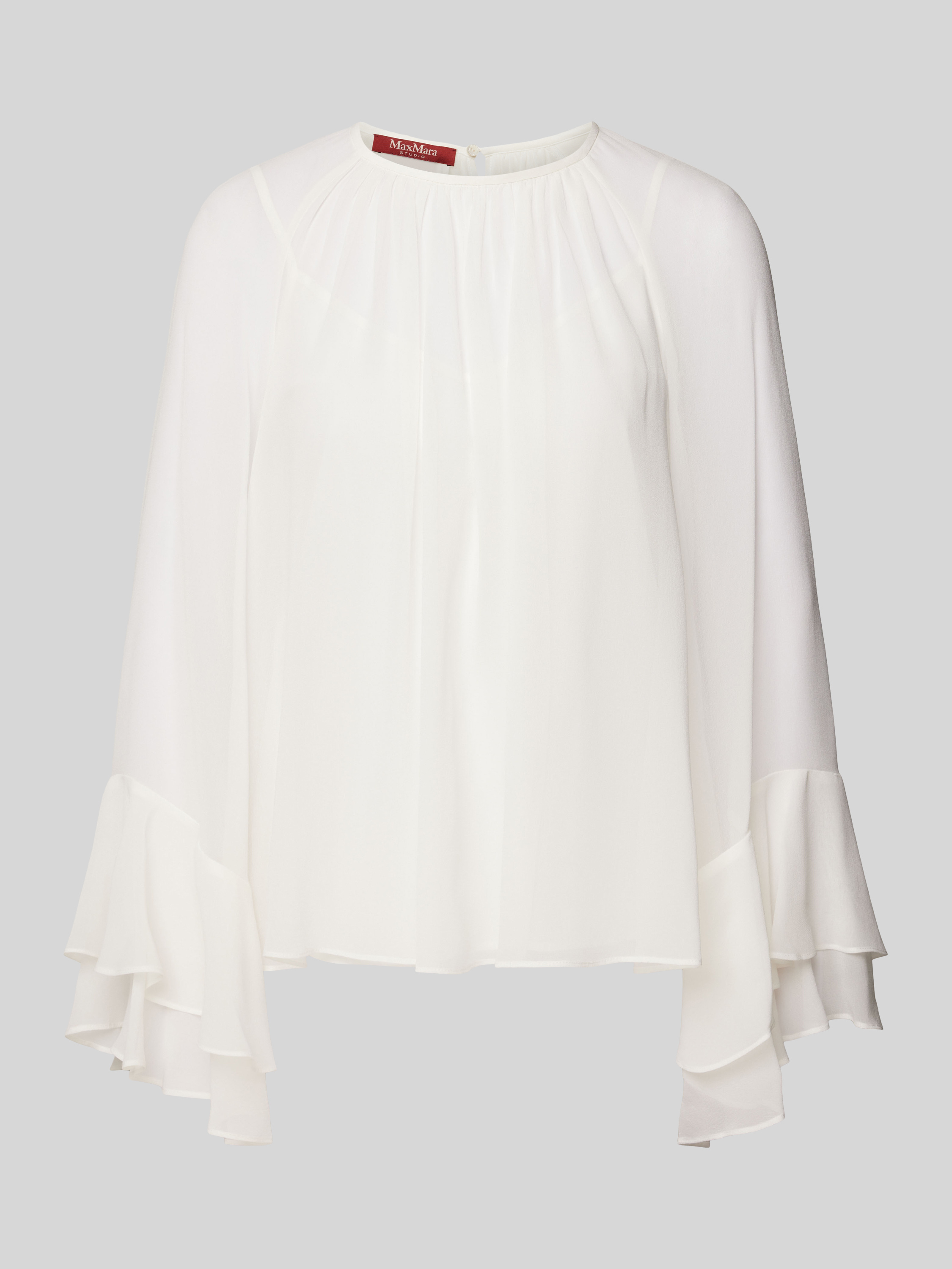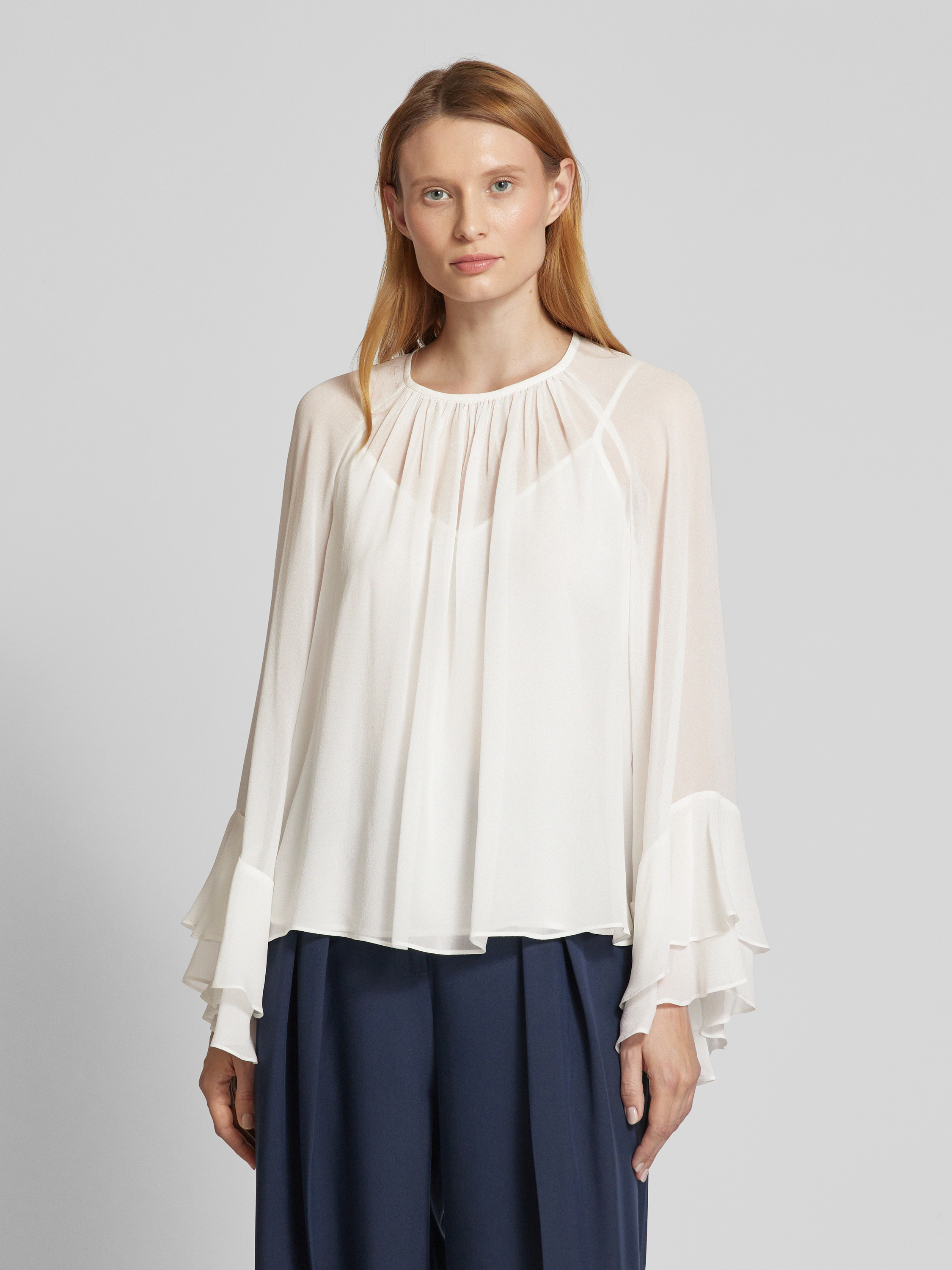 Max Mara StudioRegular Fit Seidenbluse mit gelegten Falten Modell 'ZEO' in weiss