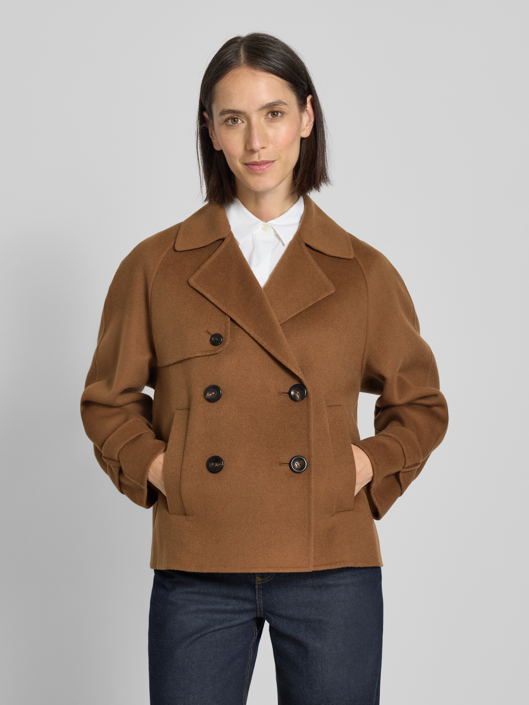 Max Mara StudioRegular Fit Wolljacke aus Schurwoll-Seiden-Mix mit Kaschmir-Anteil Modell 'NUPAR' in cognac