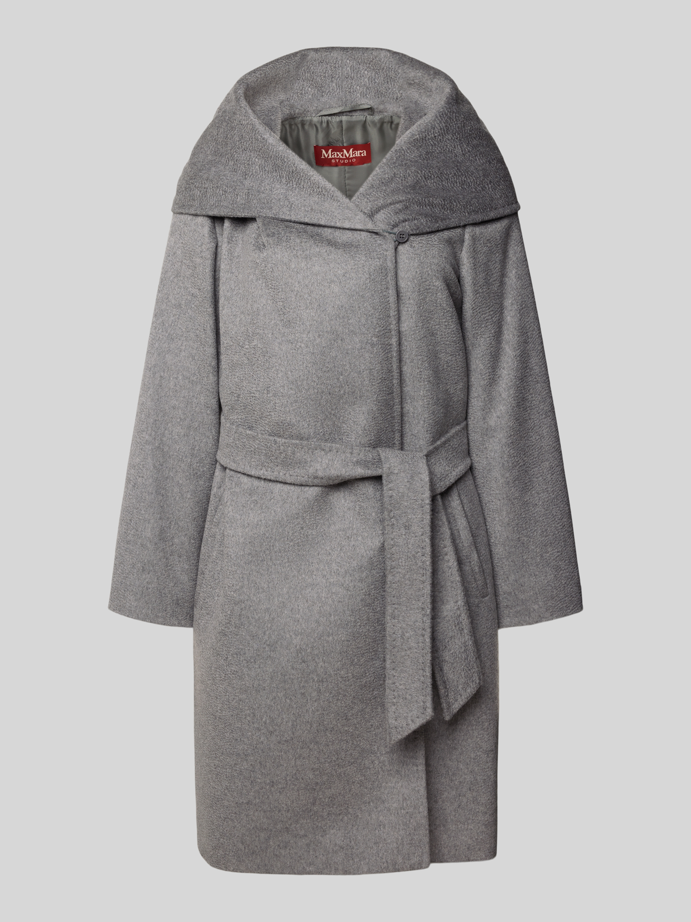 Der Regular Fit Wollmantel aus reiner Schurwolle von Max Mara Studio, Modell 'Newmang', zeichnet sich durch seine angenehm weiche Haptik und die klassische Kapuze aus. Durch den Bindegürtel entsteht eine anpassbare Silhouette, während seitliche Taschen für praktischen Stauraum sorgen. In melange oder unifarben gehalten, ergänzt er vielfältige Outfits.