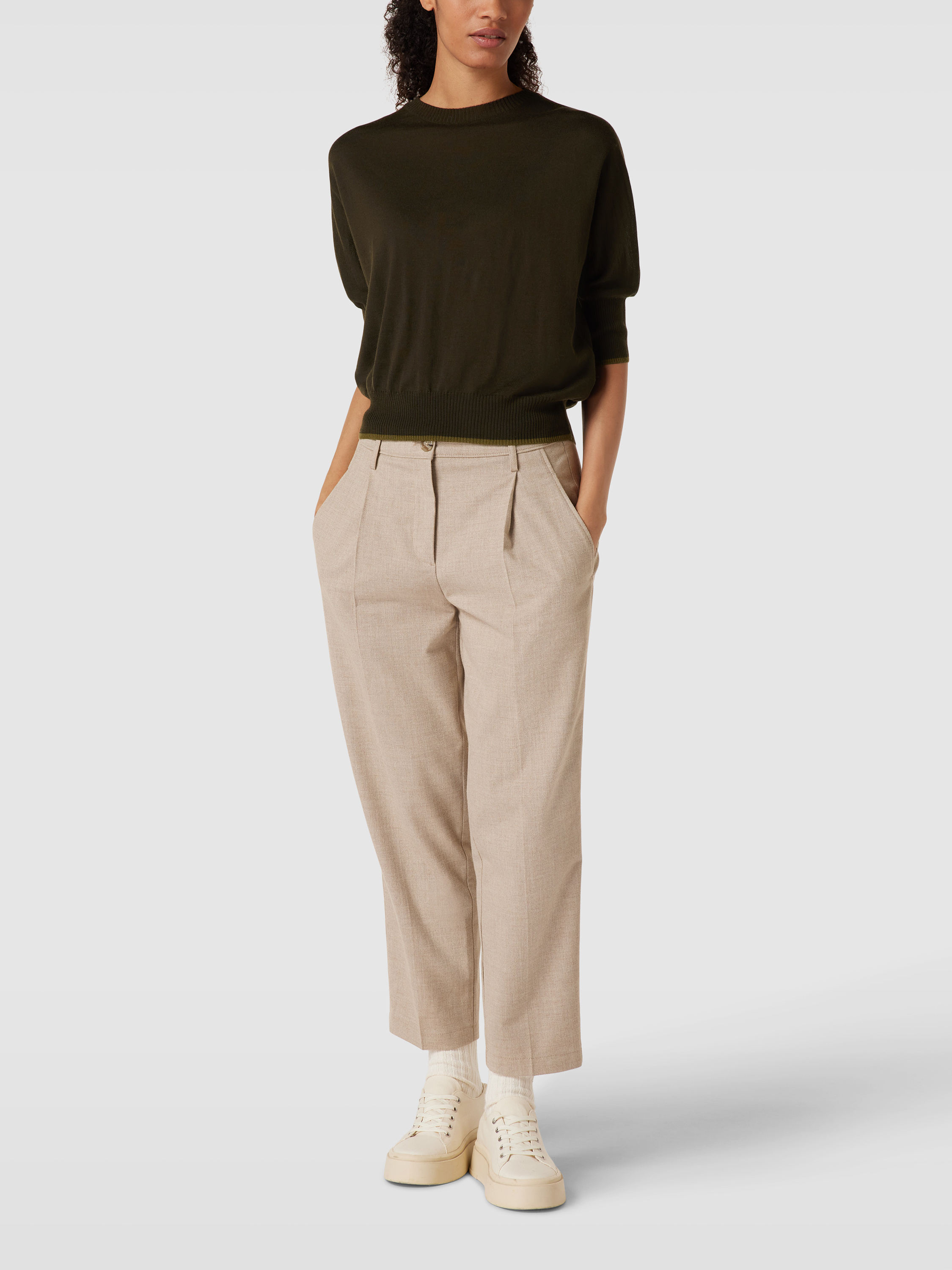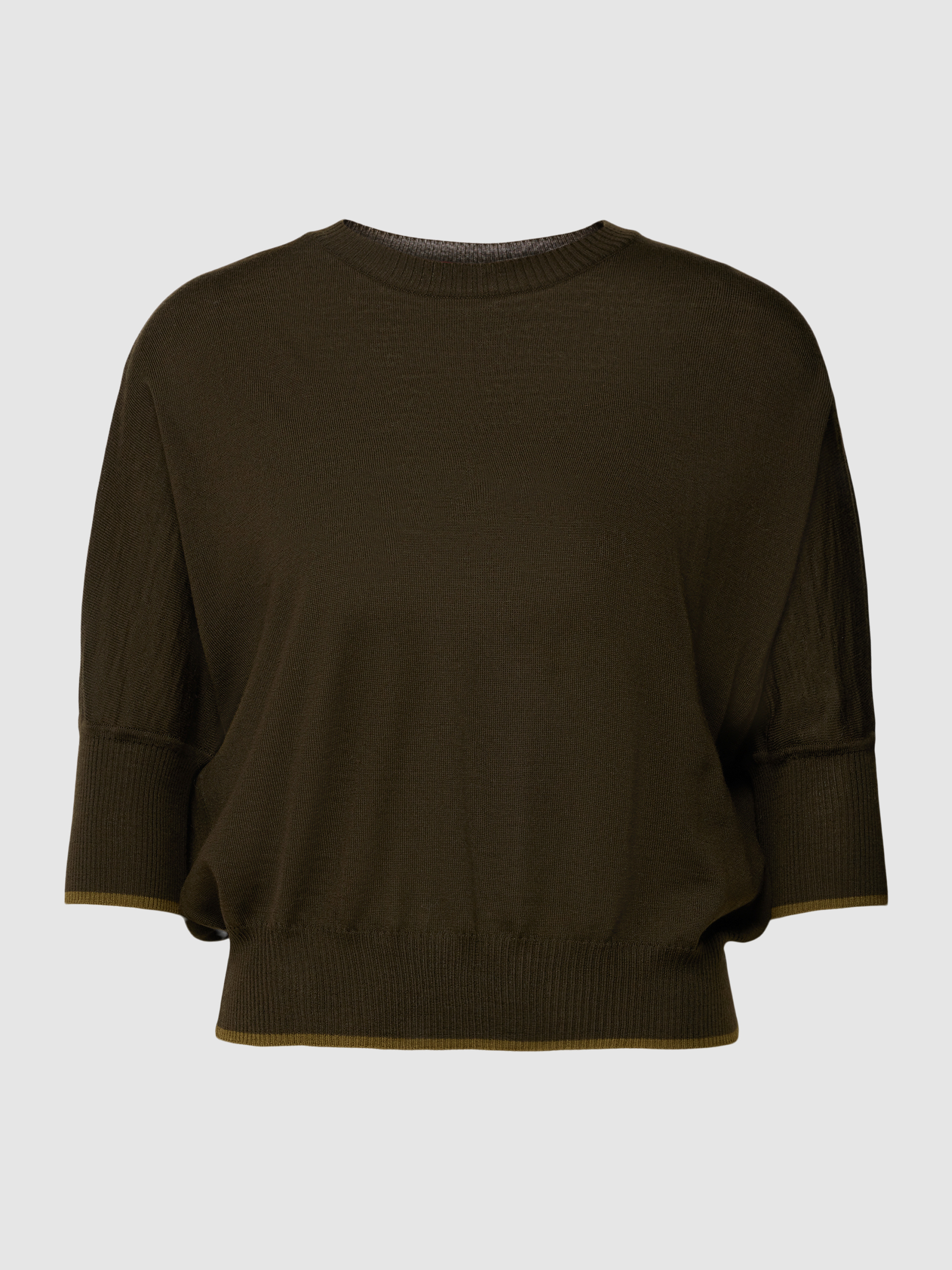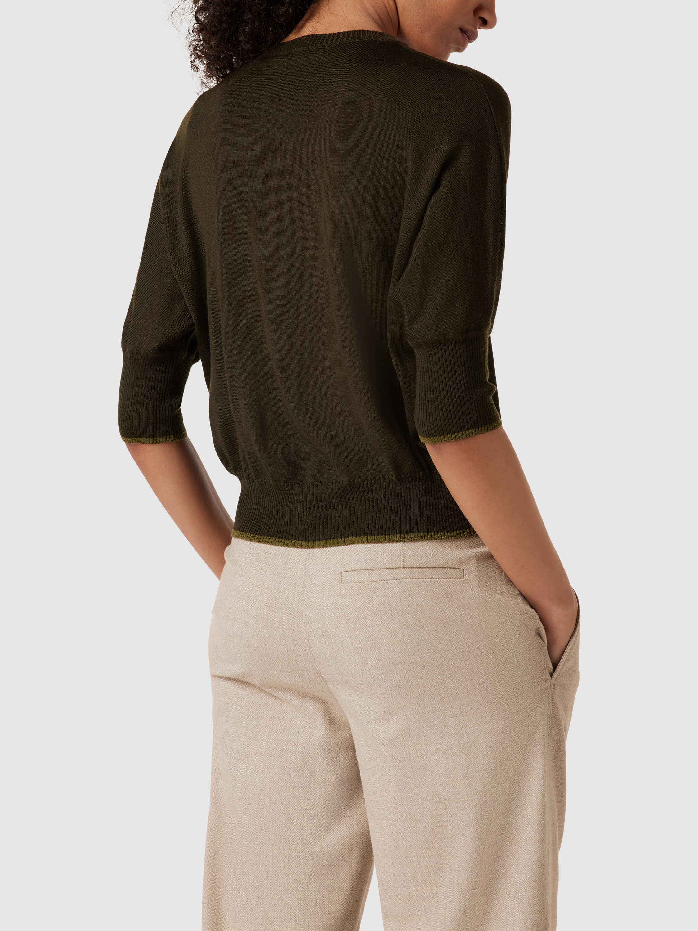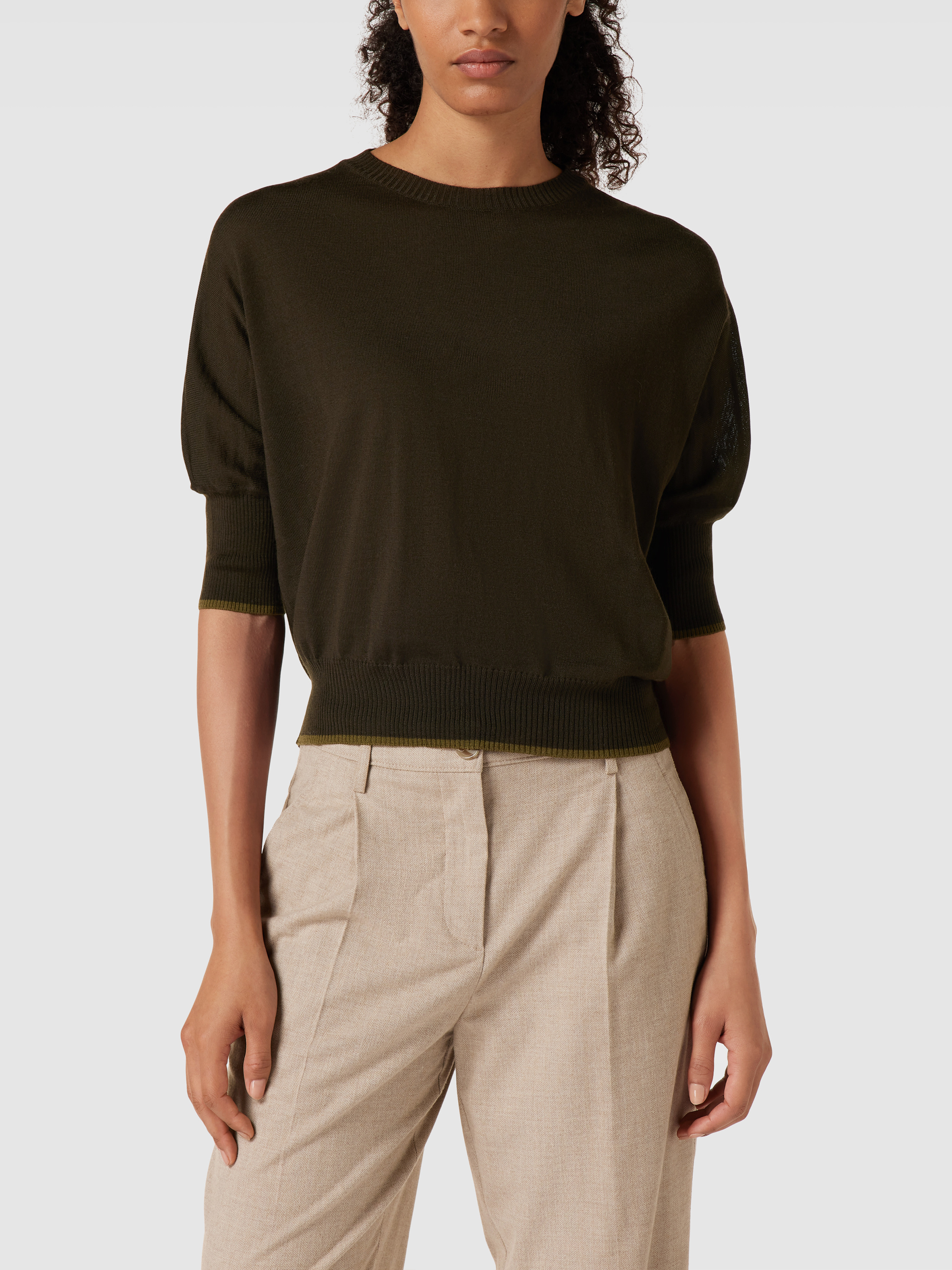 Das Strickshirt 'KERRY' von Max Mara Studio aus reiner Wolle überzeugt durch seinen lockeren Schnitt, der angenehme Bewegungsfreiheit bietet. Der gerippte Rundhalsausschnitt und die Abschlüsse verleihen dem Design eine dezente Struktur. Ideal für vielseitige, komfortable Alltagslooks.