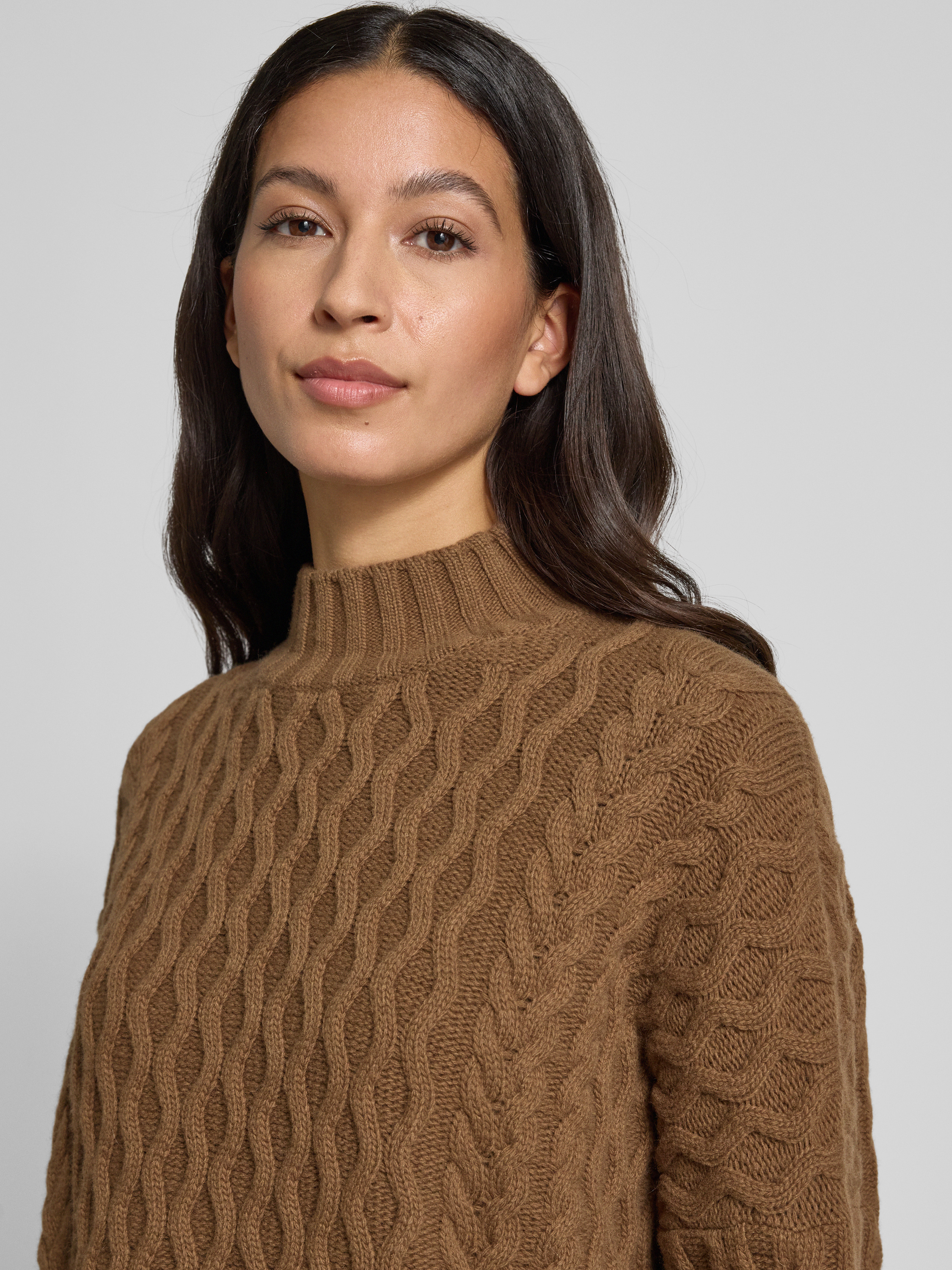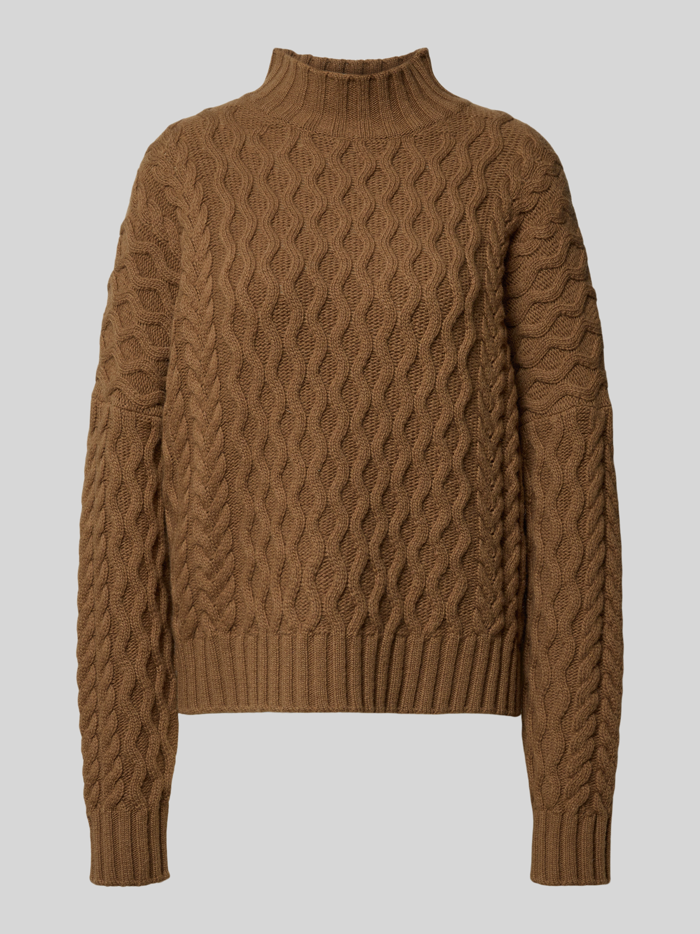 Der Damen Strickpullover von Weekend Max Mara, Modell 'Yard', fällt durch seinen Boxy-Fit und die überschnittenen Schultern angenehm locker. Das Zopfstrick-Muster unterstreicht die strukturierte Optik, während reine Schurwolle für ein komfortables Gefühl sorgt. Durch den Stehkragen entsteht ein entspannter Look, der vielseitig kombinierbar ist.