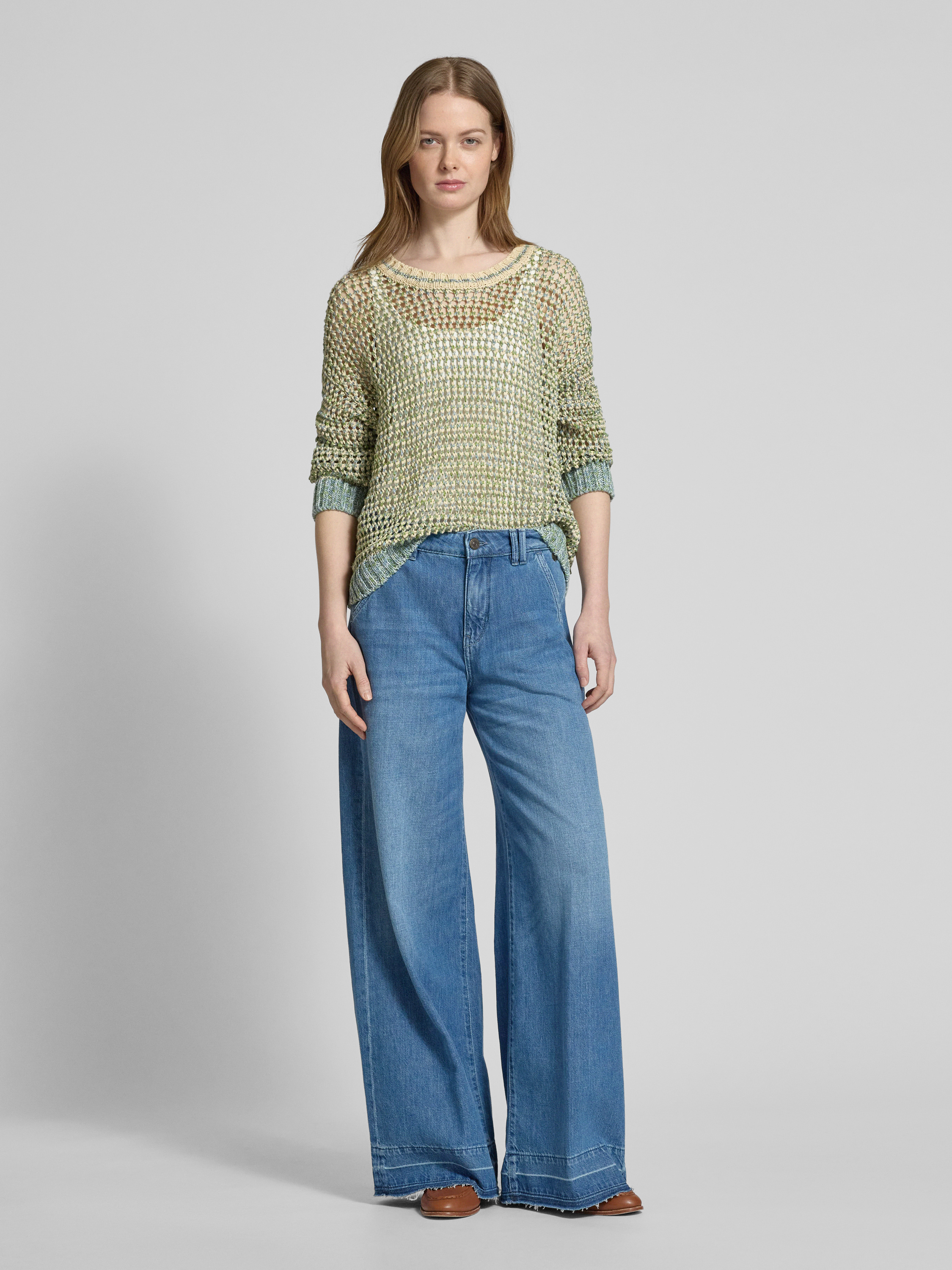 Weekend Max MaraLeinenstrickpullover mit Lochmuster Modell 'LIUTO' in hellgruen