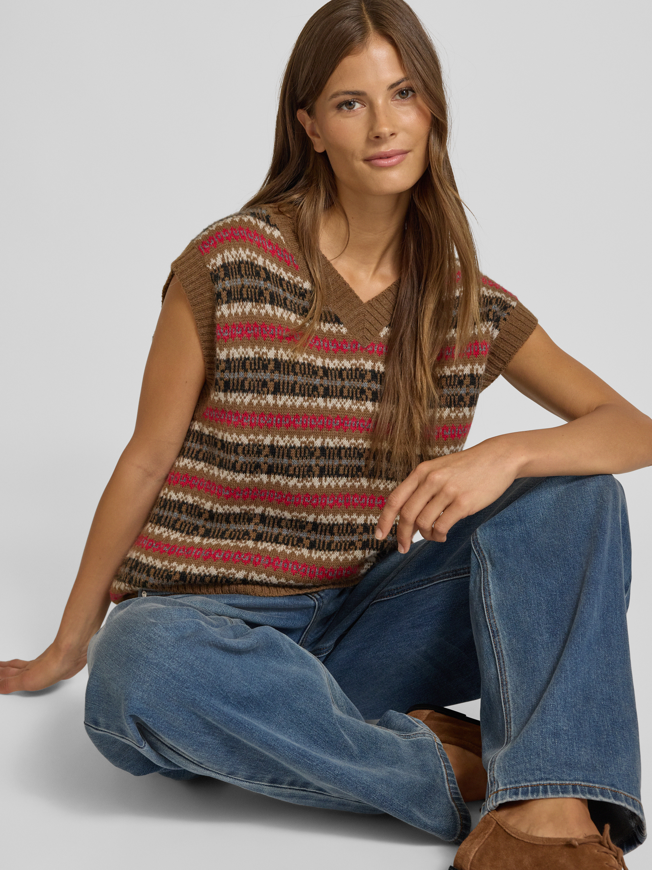 Der Damen Pullunder von Weekend Max Mara präsentiert sich im gestreiften Allover-Muster und zeigt durch den Regular Fit eine bequeme Passform. Gefertigt aus reiner Alpakawolle, sorgt das Strickmaterial für angenehme Wärme. Durch den V-Ausschnitt lässt sich der Pullunder vielseitig kombinieren.