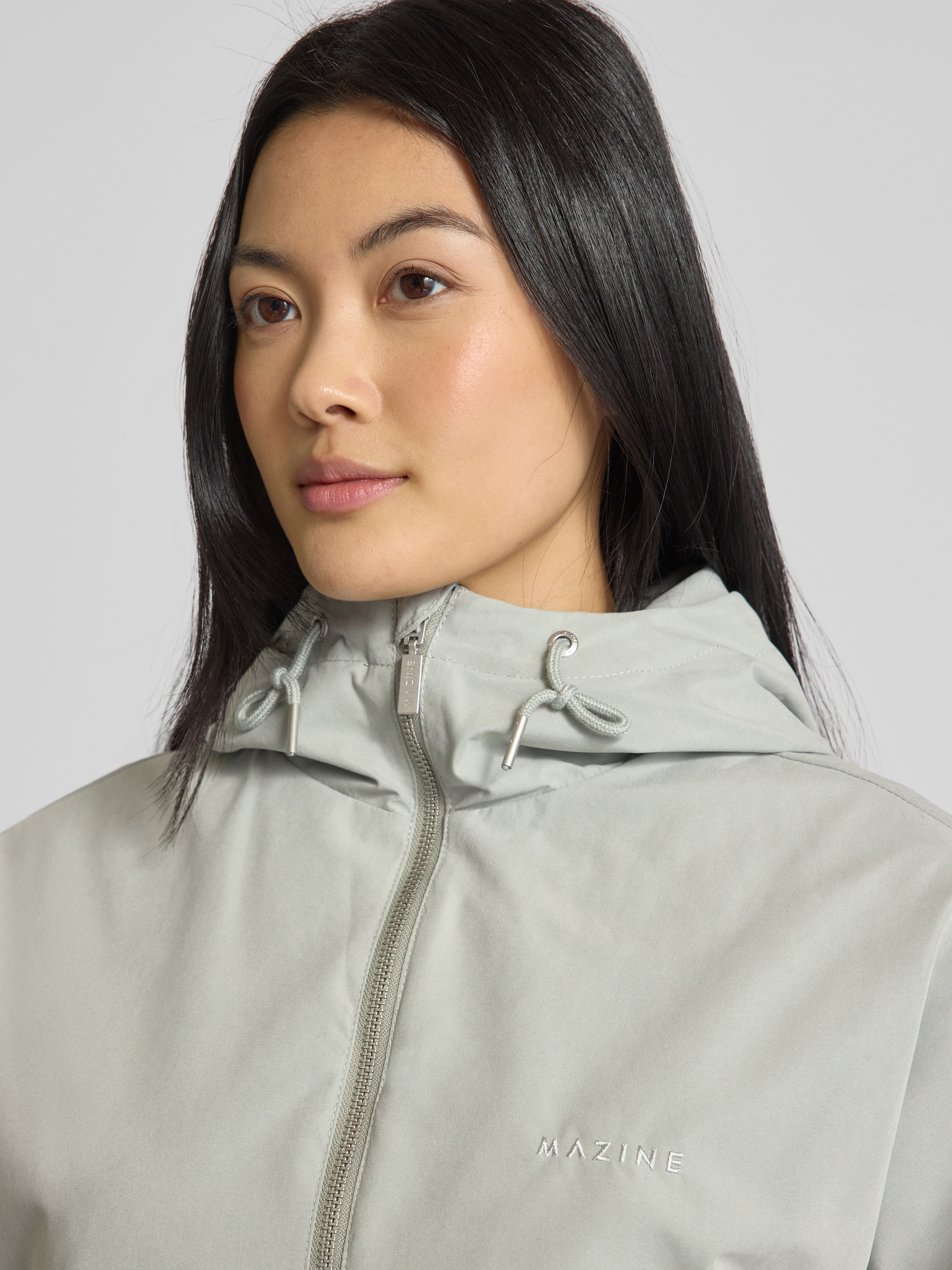 Die Damen Jacke von Mazine kombiniert einen modernen Material-Mix mit einem lockeren Schnitt, der Bewegungsfreiheit und Komfort ermöglicht. Die Kapuze mit Tunnelzug schützt an windigen Tagen, während Leistentaschen praktischen Stauraum bieten. Label-Stitching verleiht der Jacke eine dezente Markenakzentuierung.