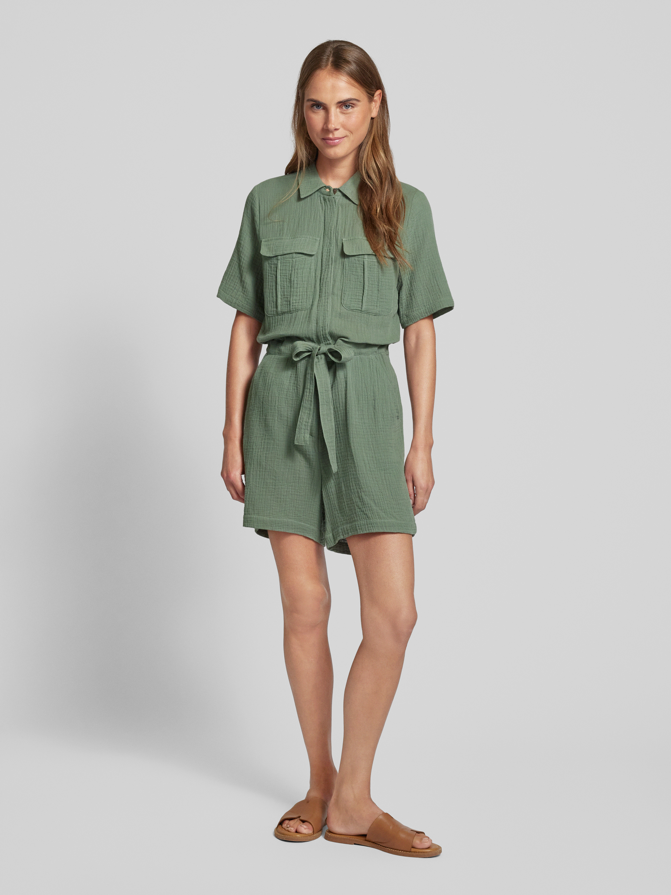 Der Jumpsuit 'Carello' von mbyM beeindruckt durch seine Crinkle-Optik und die reine Baumwolle, die für ein angenehmes Tragegefühl sorgt. Die körpernahe Passform und der Tunnelzug im Taillenbereich betonen die Silhouette, während Brusttaschen funktionale Akzente setzen. Ein vielseitiger Begleiter für jede Gelegenheit.