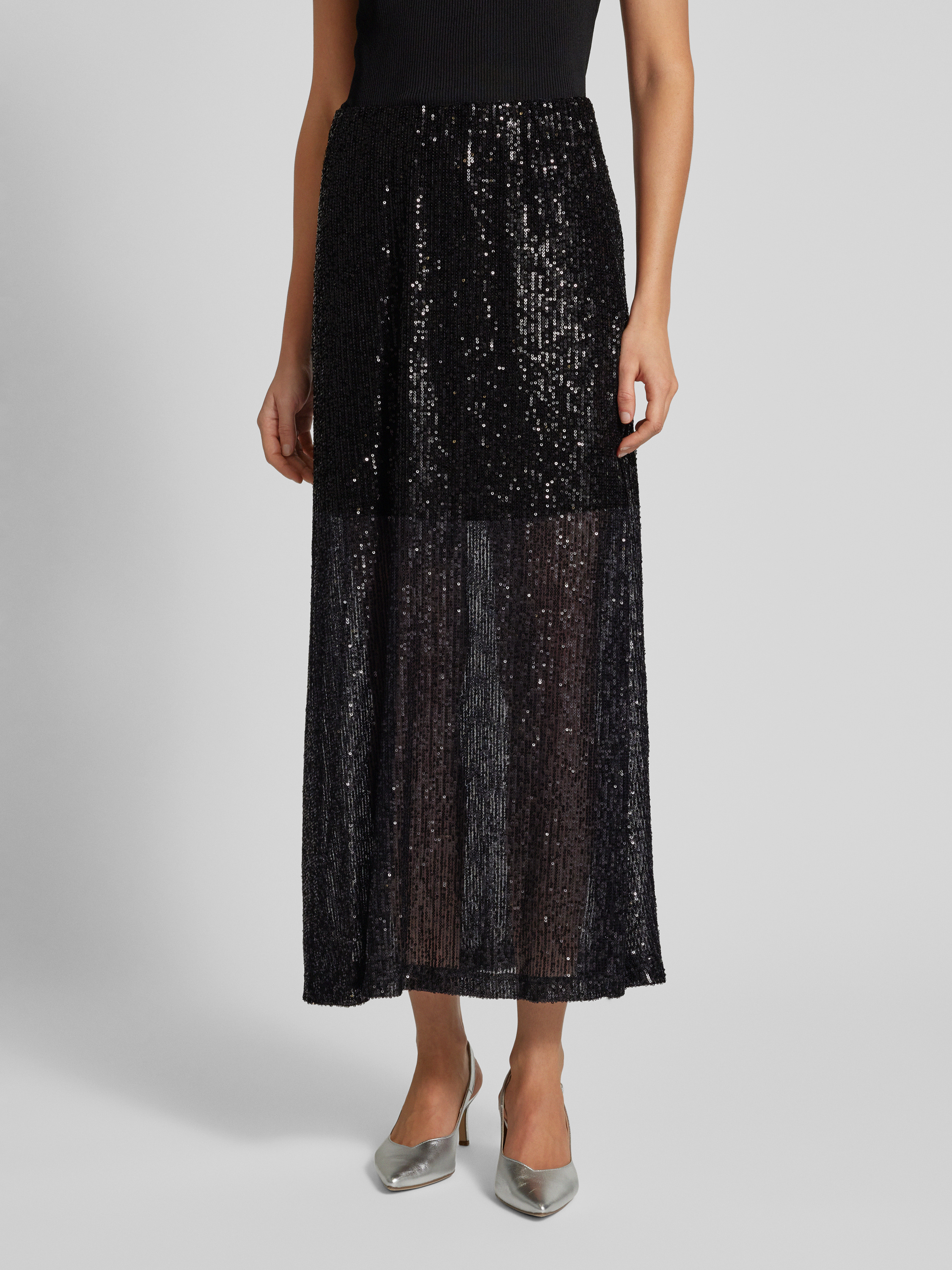 Der Maxirock von mbyM, Modell 'Mailily', vereint mühelos Eleganz und Komfort. Mit seinem geraden Schnitt und den funkelnden Pailletten eignet er sich ideal für festliche Anlässe. Der elastische Bund sorgt für eine angenehme Passform, die den ganzen Tag über bequem bleibt.