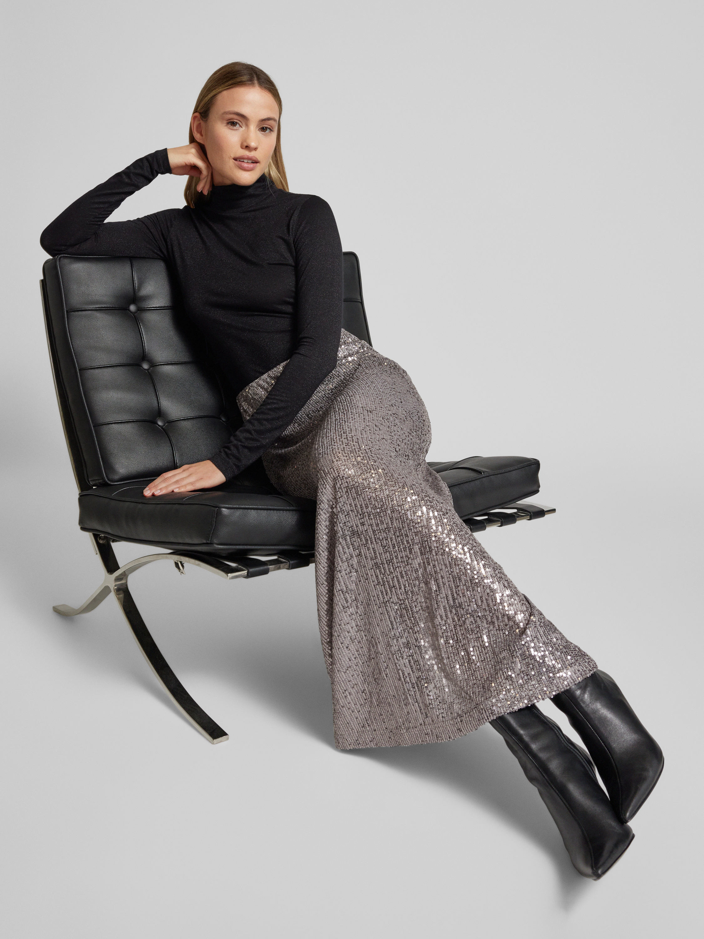 Der Maxirock von mbyM, Modell 'Mailily', vereint mühelos Eleganz und Komfort. Mit seinem geraden Schnitt und den funkelnden Pailletten eignet er sich ideal für festliche Anlässe. Der elastische Bund sorgt für eine angenehme Passform, die den ganzen Tag über bequem bleibt.