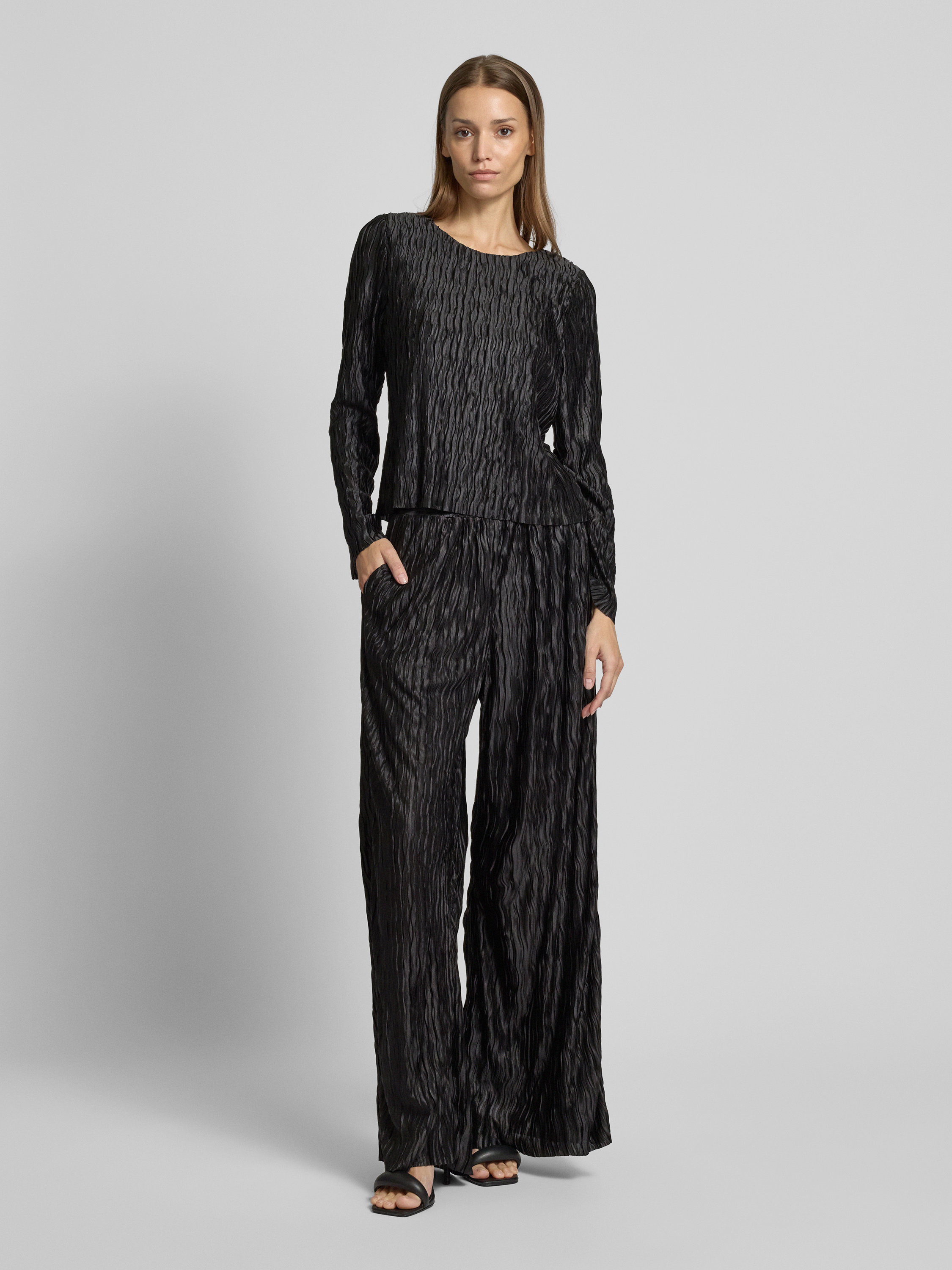 mbyMWide Leg Stoffhose mit Strukturmuster Modell 'Asaka' in black