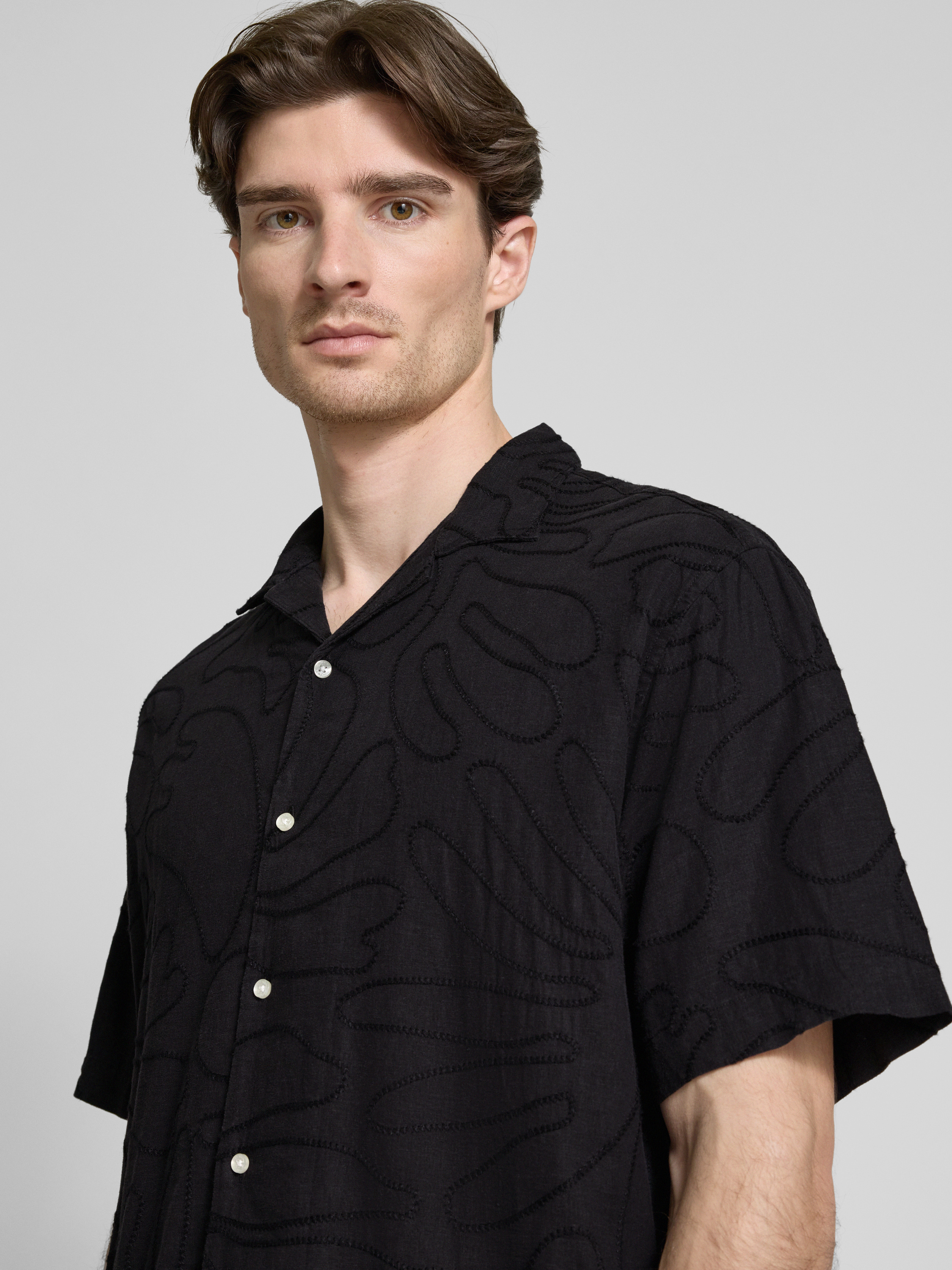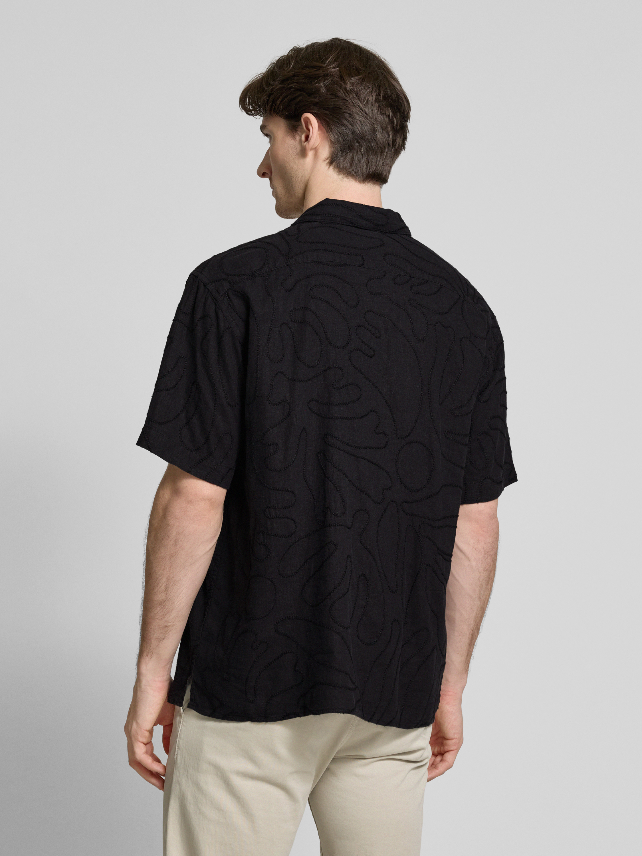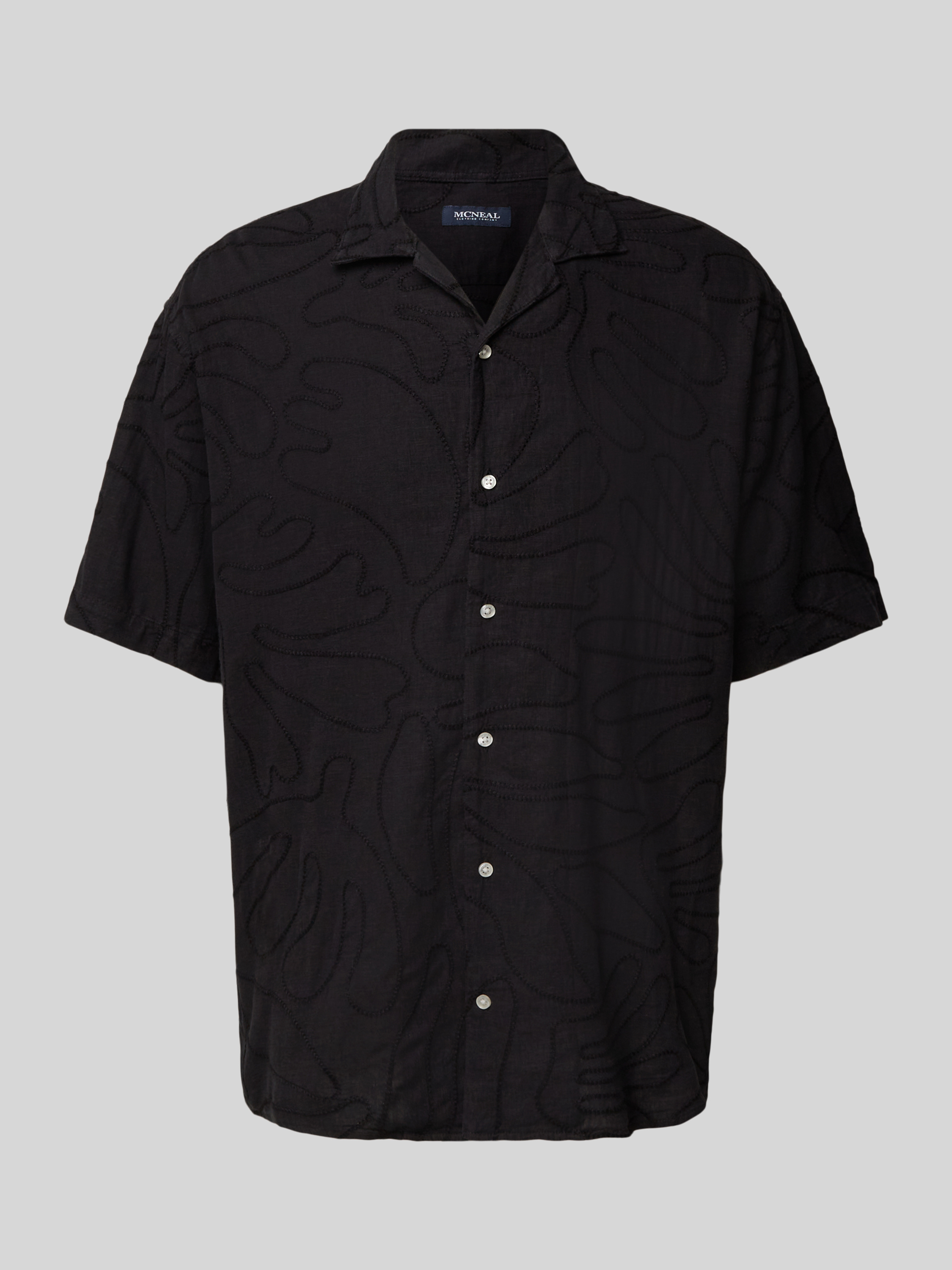 Das Freizeithemd von MCNEAL kombiniert die Leichtigkeit von Leinen mit der Geschmeidigkeit von Viskose, wodurch ein luftiges Tragegefühl entsteht. Der lockere Schnitt passt sich entspannt an und der Reverskragen verleiht dem kurzärmeligen Design eine klassische Note. Ideal für entspannte Anlässe.