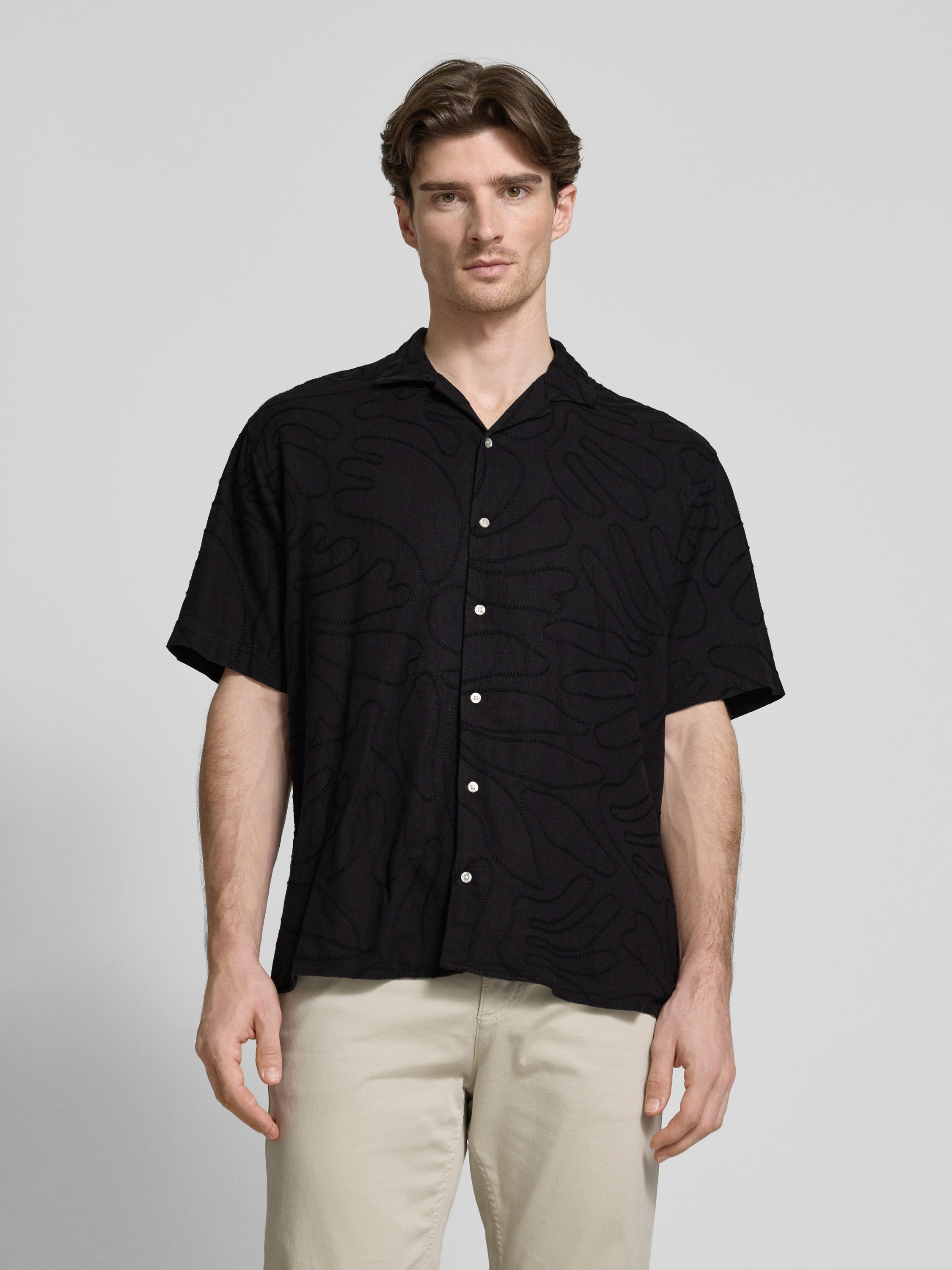 MCNEALLoose Fit Freizeithemd aus Leinen-Viskose-Mix in black