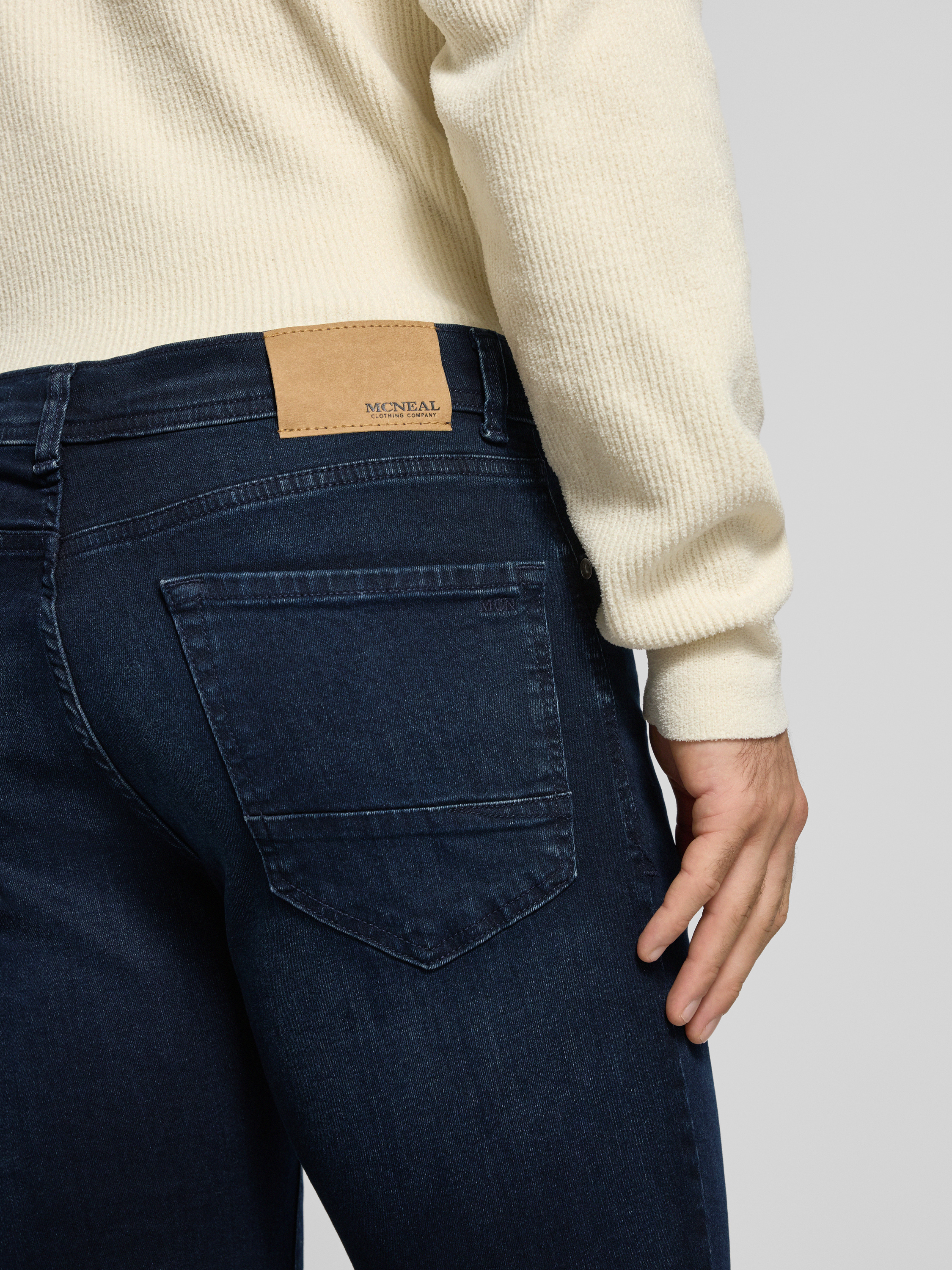 Die Herren Straight Fit Jeans von MCNEAL aus reiner Baumwolle zeichnet sich durch ihren angenehm geraden Schnitt aus, der Bewegungsfreiheit im Alltag unterstützt. Das klassische 5-Pocket-Design sorgt für einen zeitlosen Look. So lässt sich vielseitige Kombinierbarkeit mühelos in den Alltag integrieren.