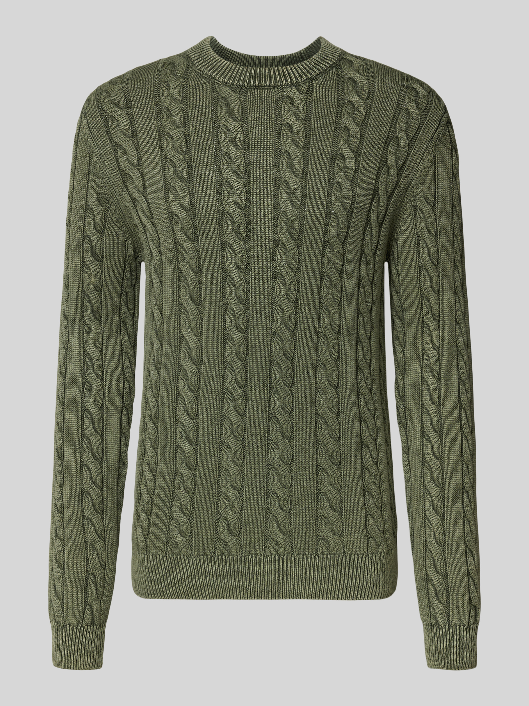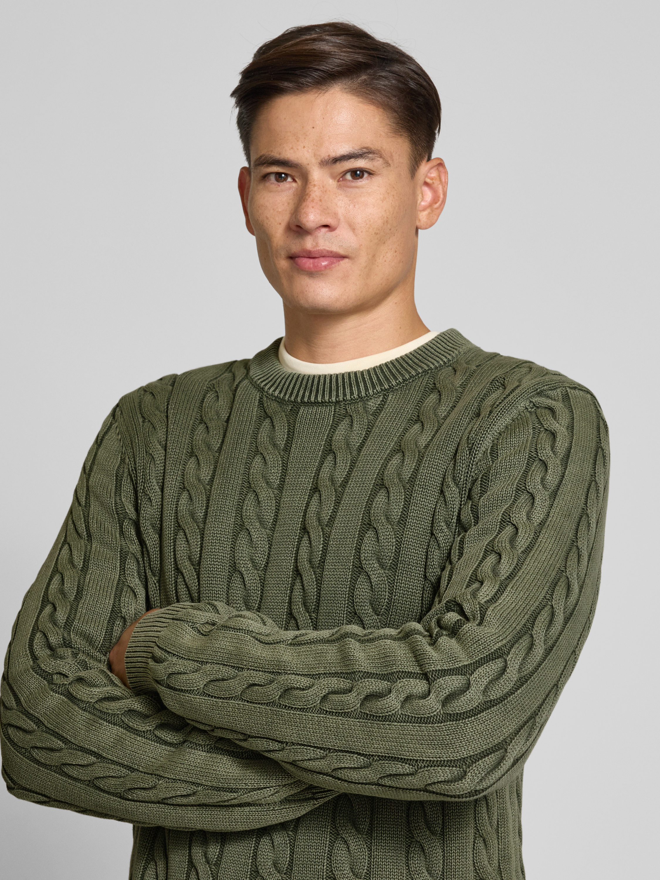 • MCNEAL Strickpullover mit gerippten Abschlüssen Oliv
