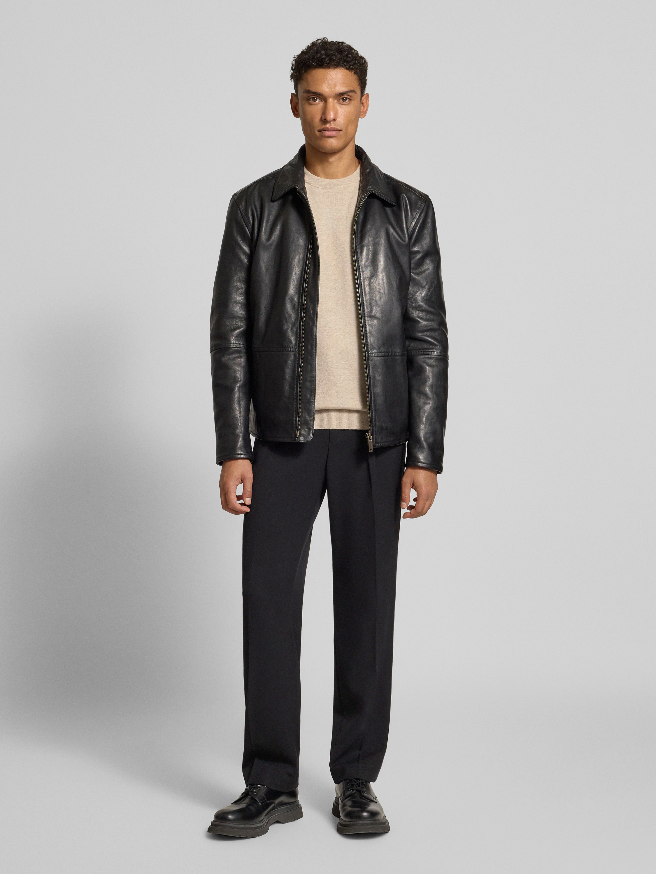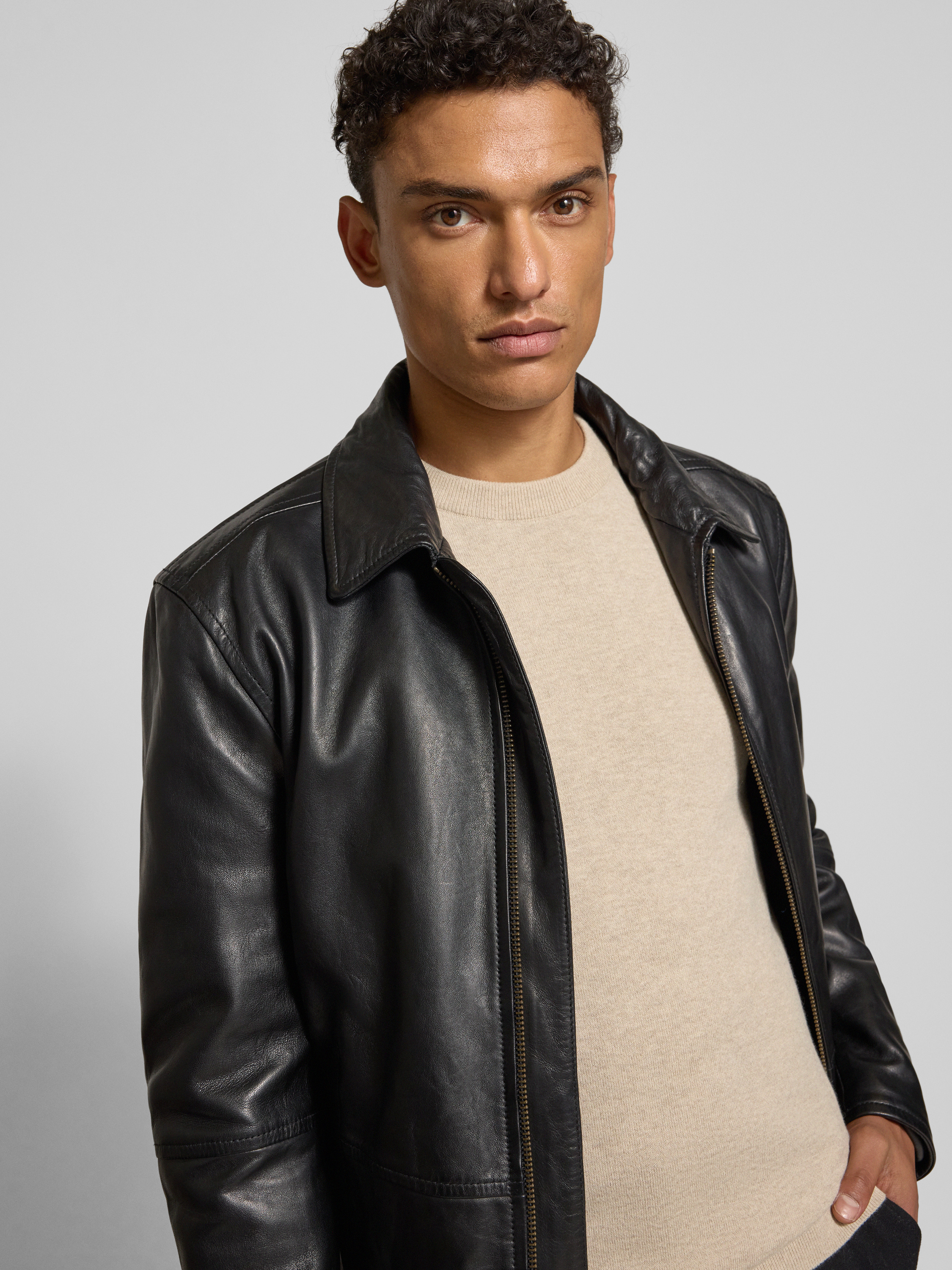 Regular Fit Lederjacke aus echtem Lammnappa Modell 'KELLAN' Shop The Look MANNEQUINE