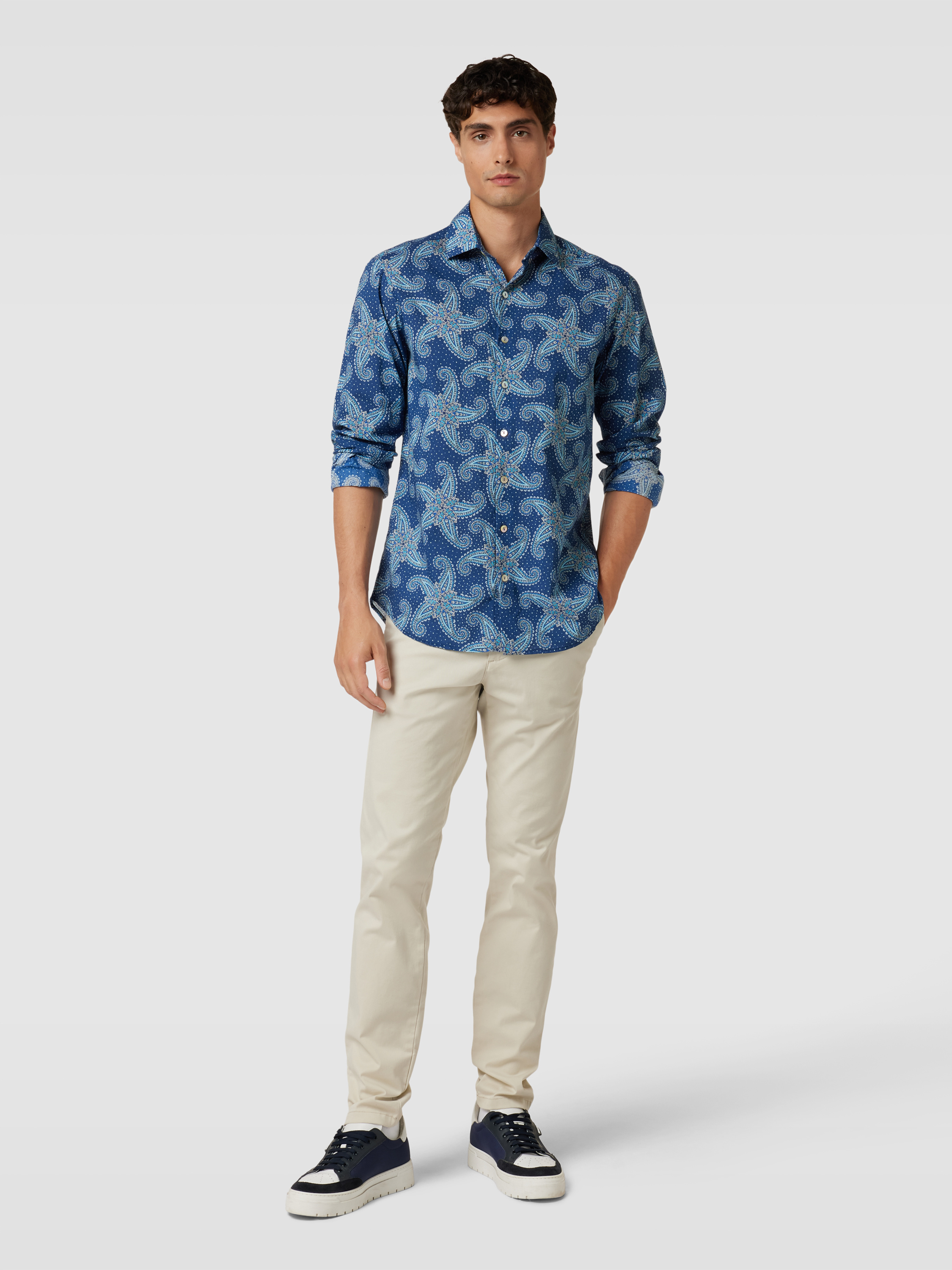 Das Freizeithemd Modell 'SIKELIA' von MC2 Saint Barth kombiniert einen entspannten Regular Fit mit einem auffälligen Allover-Muster, das jedem Outfit eine individuelle Note verleiht. Hergestellt aus reiner Baumwolle, trägt es sich angenehm und atmungsaktiv. Der klassische Kentkragen rundet das Design stilvoll ab.