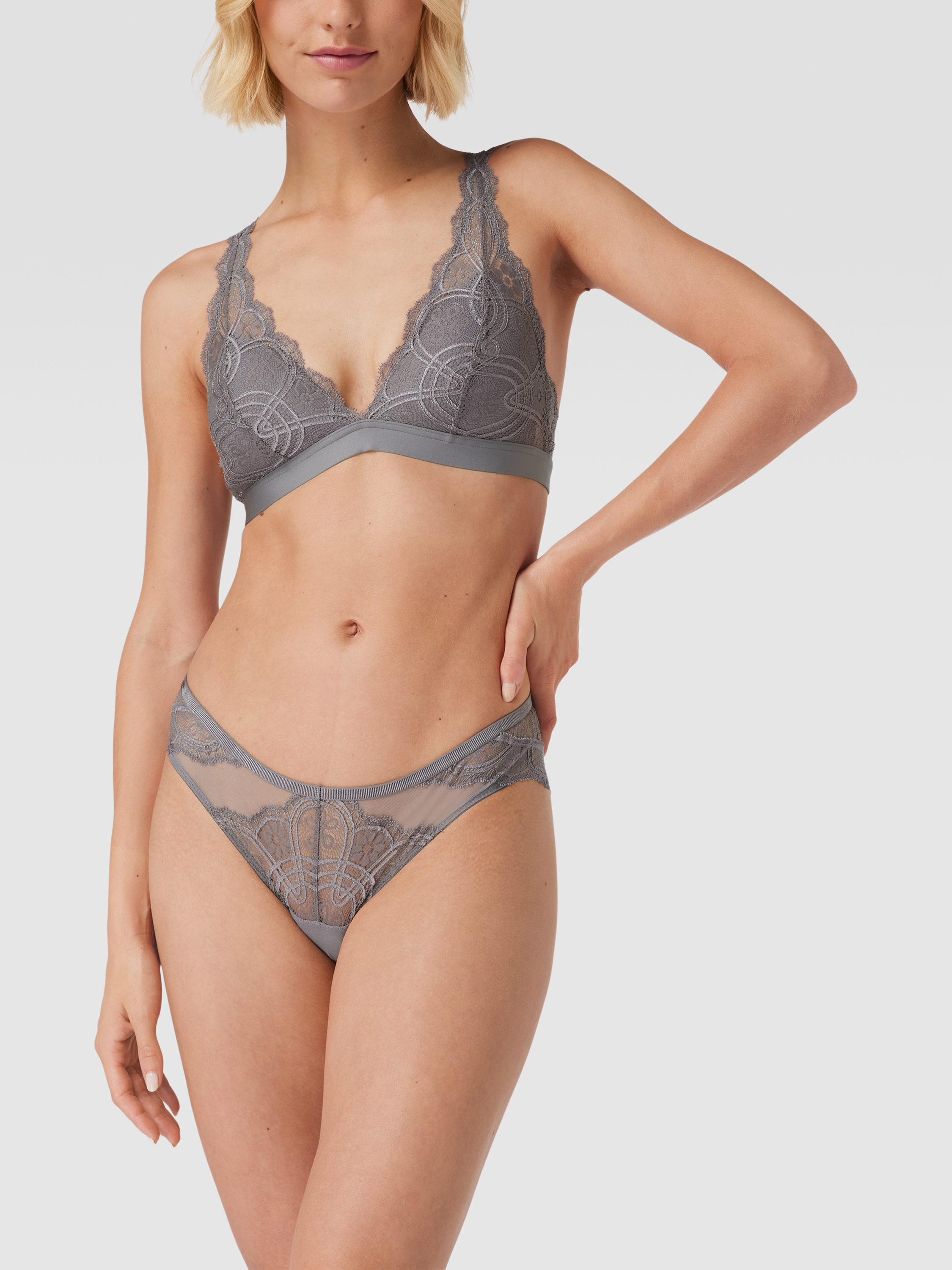 MeyBH mit Stretch-Anteil und Spitzenbesatz Modell 'Poetry Fame' in mittelgrau