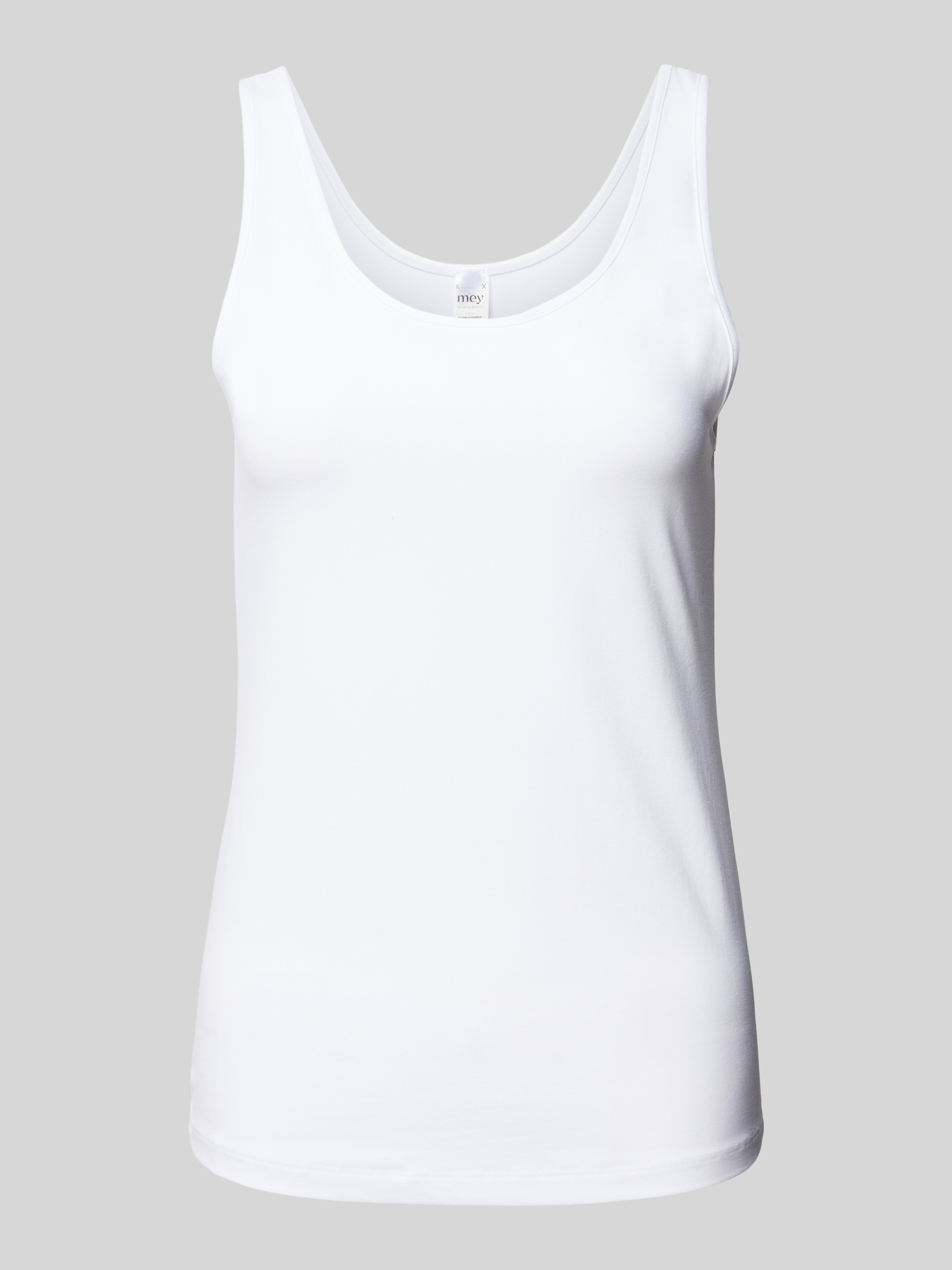 Das Damen Tanktop von Mey kombiniert einen Baumwoll-Elasthan-Mix mit einem geraden Schnitt und einem klassischen Rundhalsausschnitt. Diese Materialkombination sorgt für ein angenehmes Tragegefühl und eine optimale Passform. Ideal für den Alltag, bietet es vielseitige Kombinationsmöglichkeiten für unterschiedliche Anlässe.