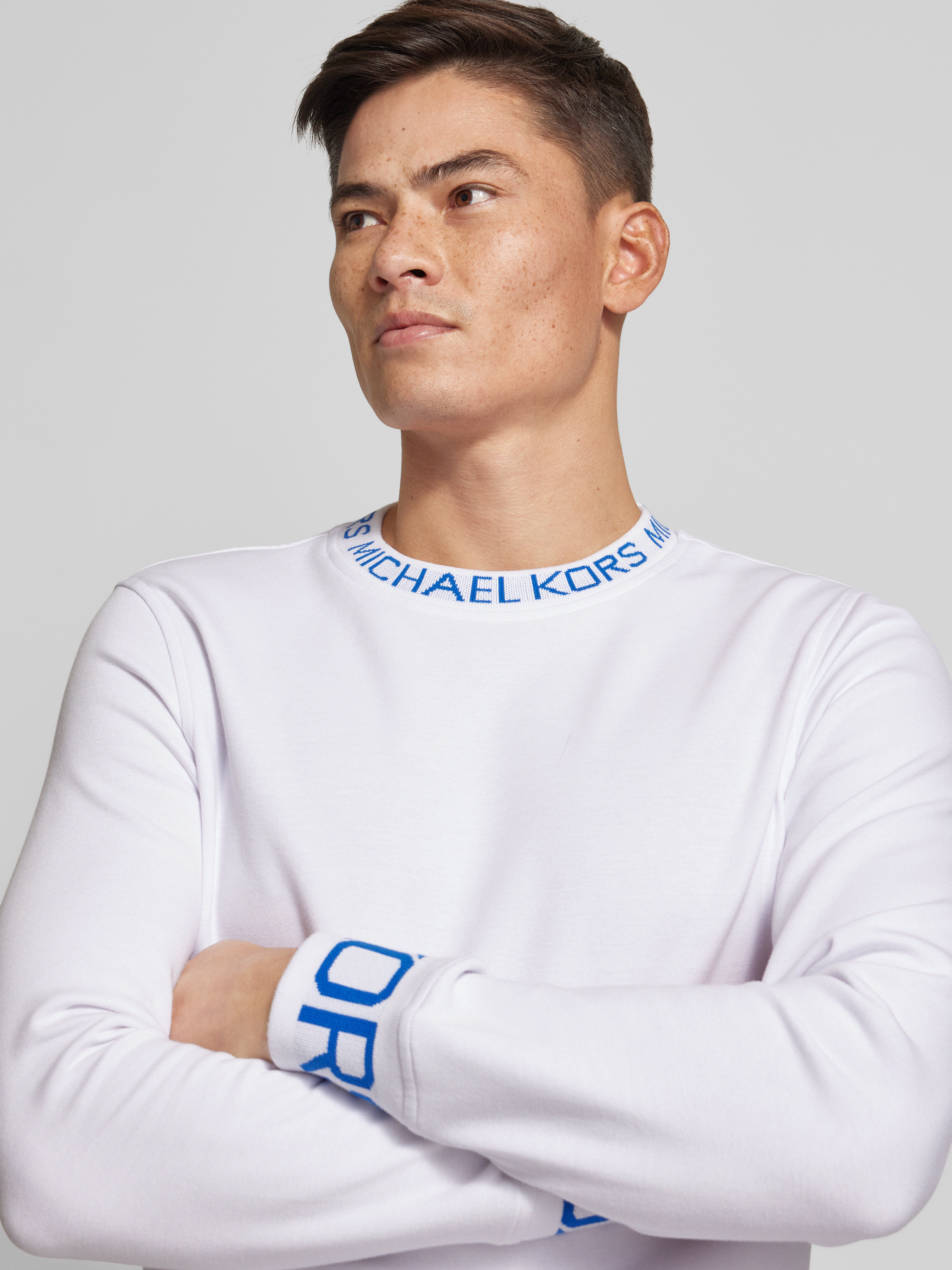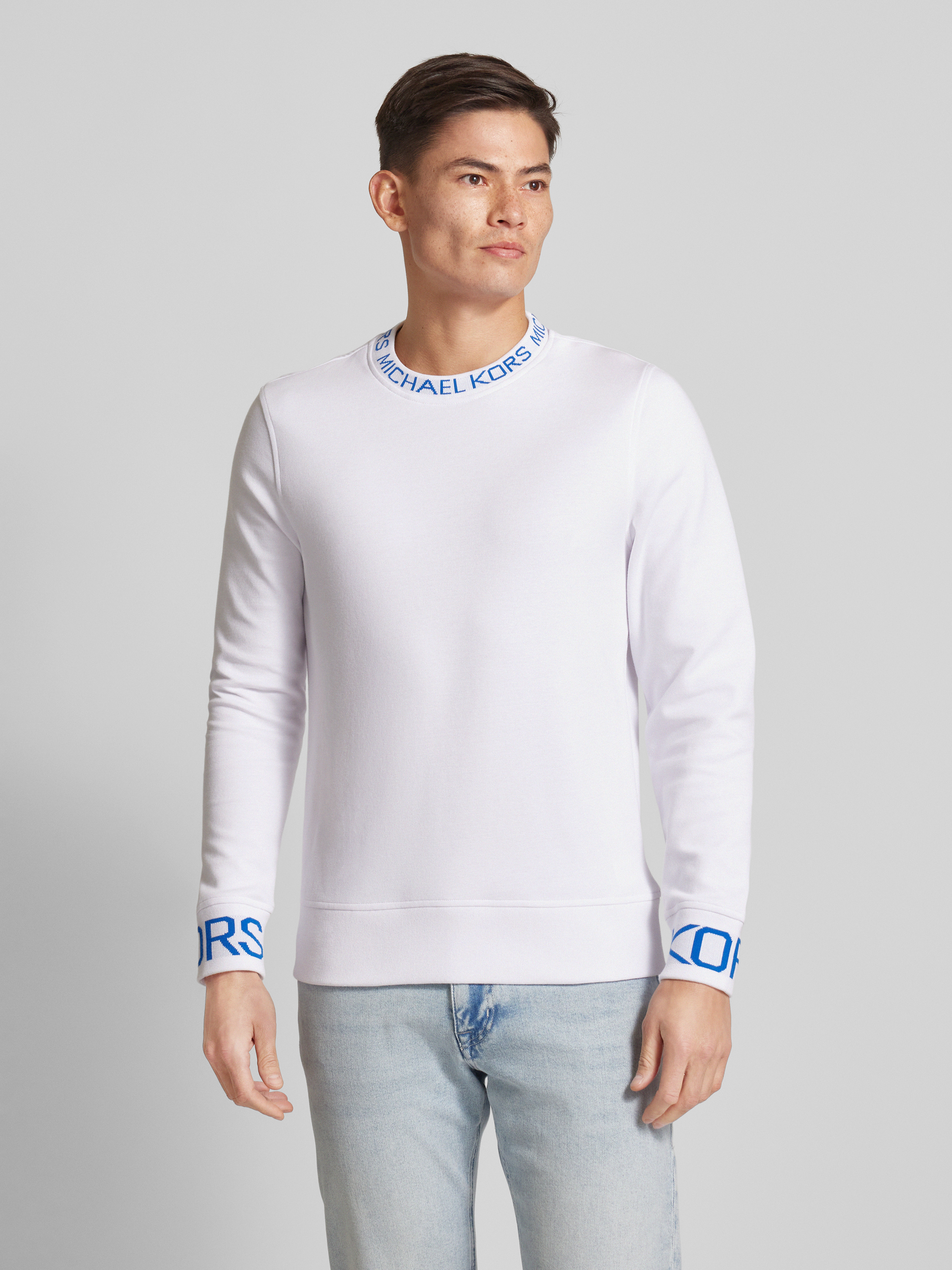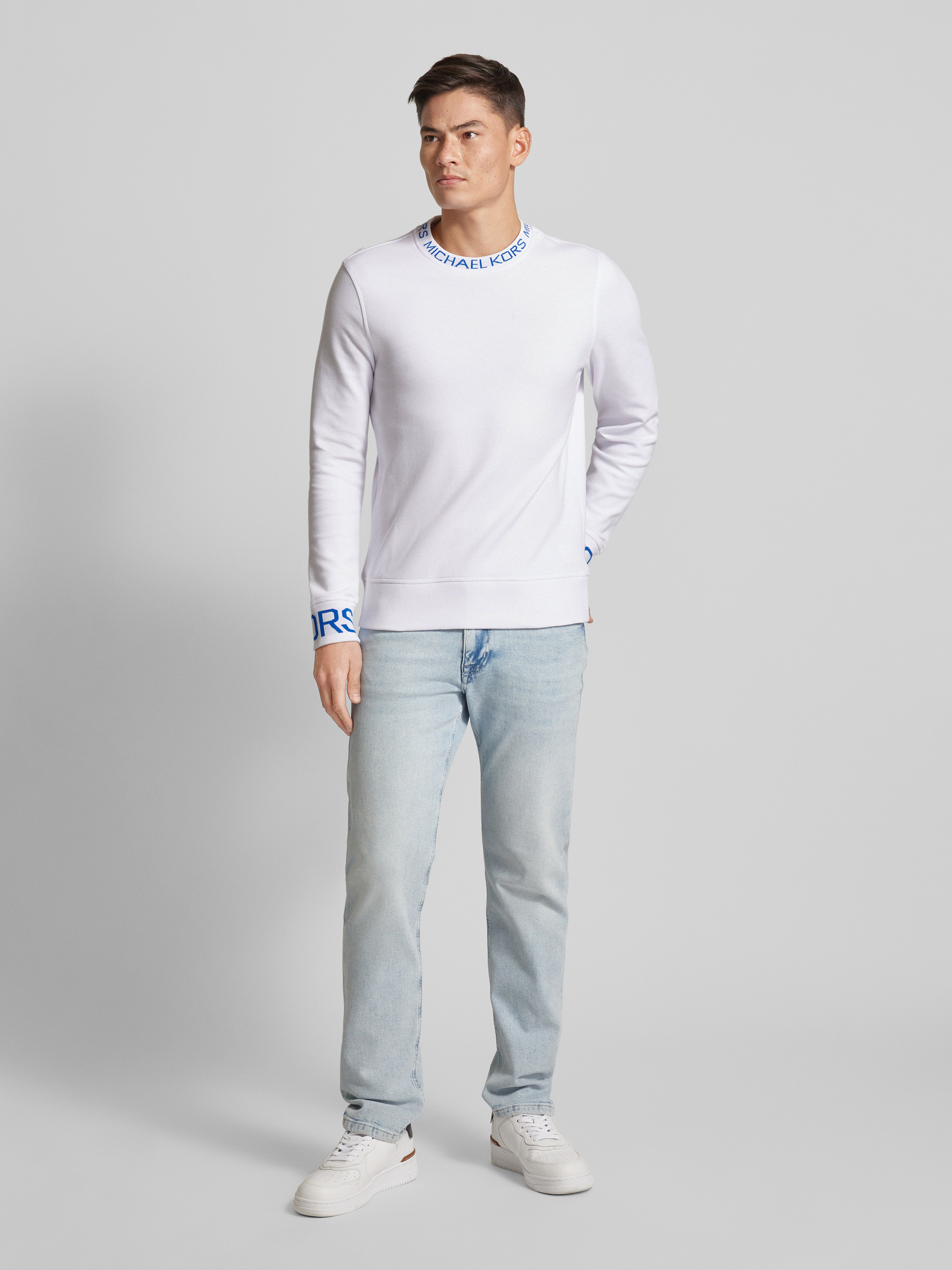Das Herren Sweatshirt von Michael Kors kombiniert einen geraden Schnitt mit einem angenehmen Baumwoll-Mix, der für Tragekomfort sorgt. Der Rundhalsausschnitt und das unifarbene Design verleihen dem Stück zeitlose Schlichtheit. Ein dezenter Label-Print rundet den Look subtil ab.