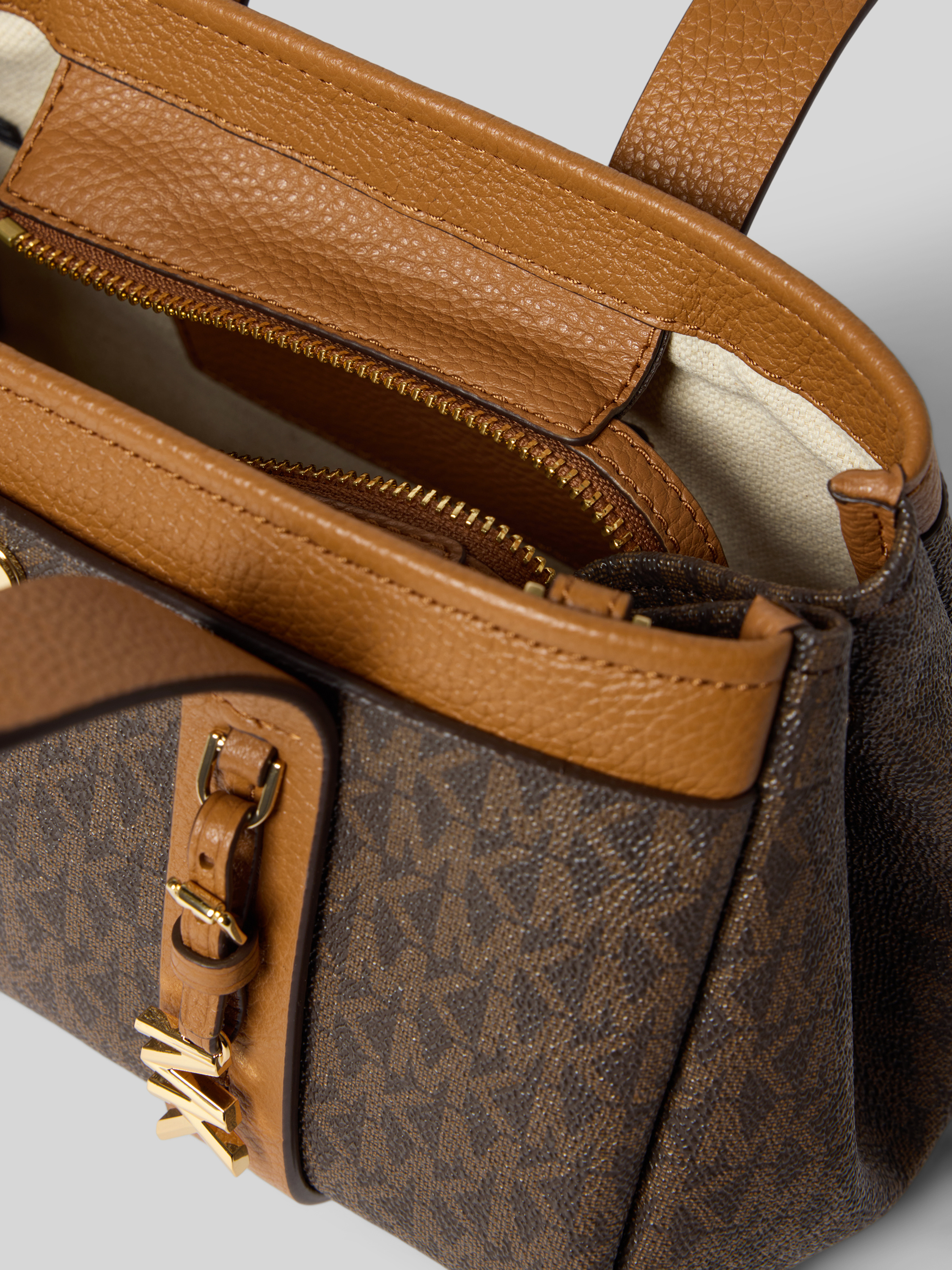 Die Handtasche ROMEE von MICHAEL Michael Kors kombiniert ein charakteristisches Logo-Muster mit einer dezenten Label-Applikation. Durch Tragehenkel und Schulterriemen lässt sie sich flexibel einsetzen, wodurch sie sich für verschiedene Alltagssituationen eignet. Das Hauptfach schafft übersichtlichen Stauraum und hält Wichtiges griffbereit.