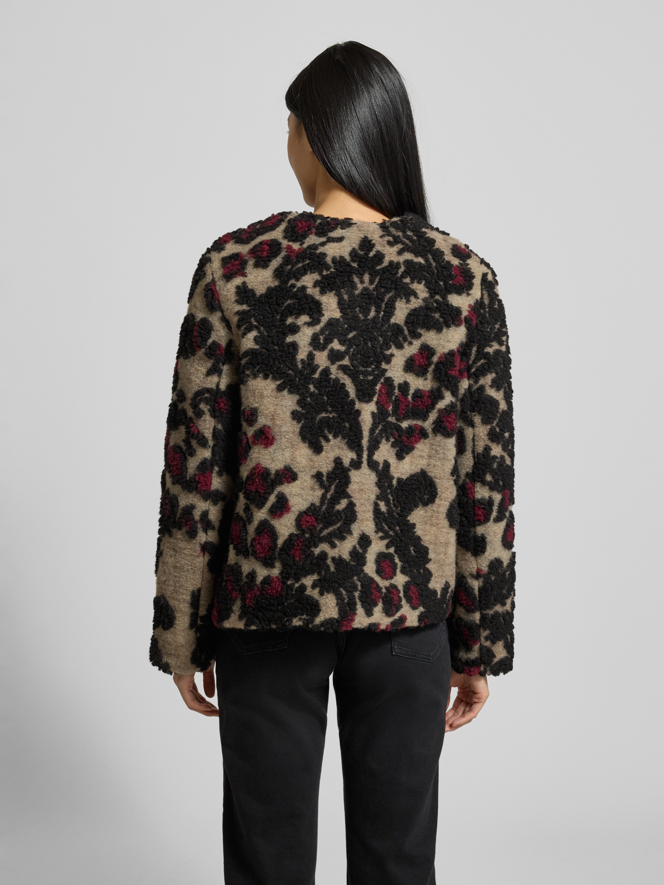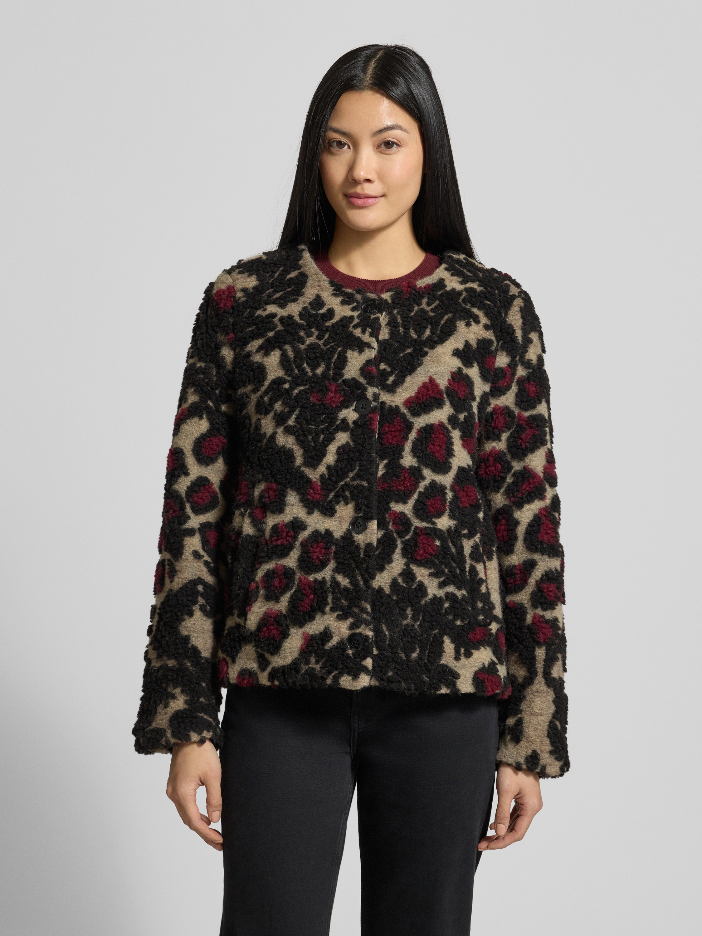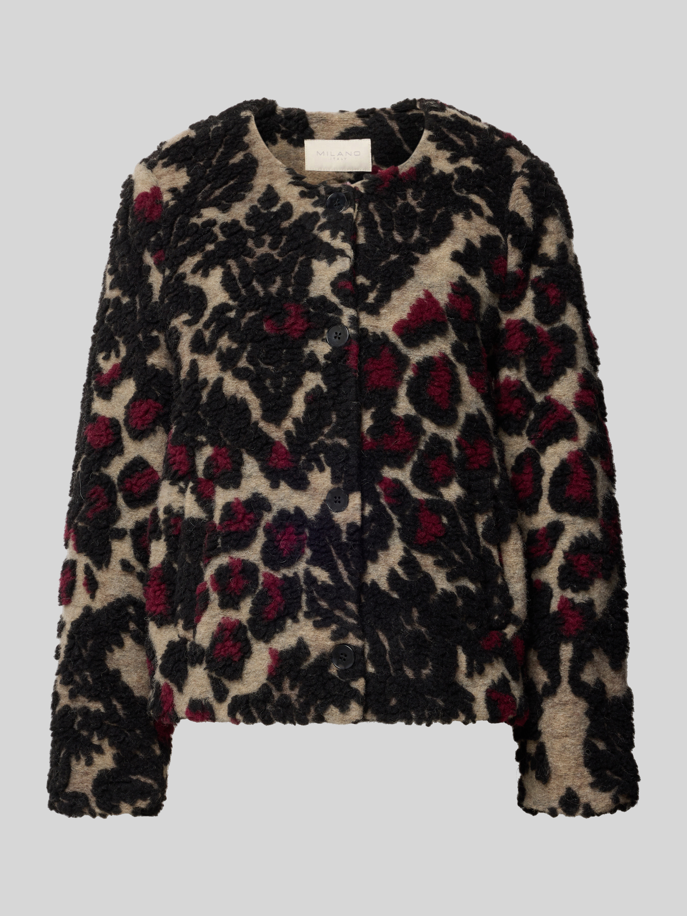 Die Damen Jacke von Milano Italy präsentiert sich im Regular-Fit und sorgt durch den Woll-Mix für ein angenehmes Tragegefühl im Alltag. Der Allover-Look und der Rundhalsausschnitt verleihen dem Modell eine moderne Ausstrahlung, während die Eingrifftaschen praktische Details setzen. Dank der durchdachten Passform eignet sich die Jacke sowohl für entspannte Freizeitmomente als auch für formellere Anlässe.