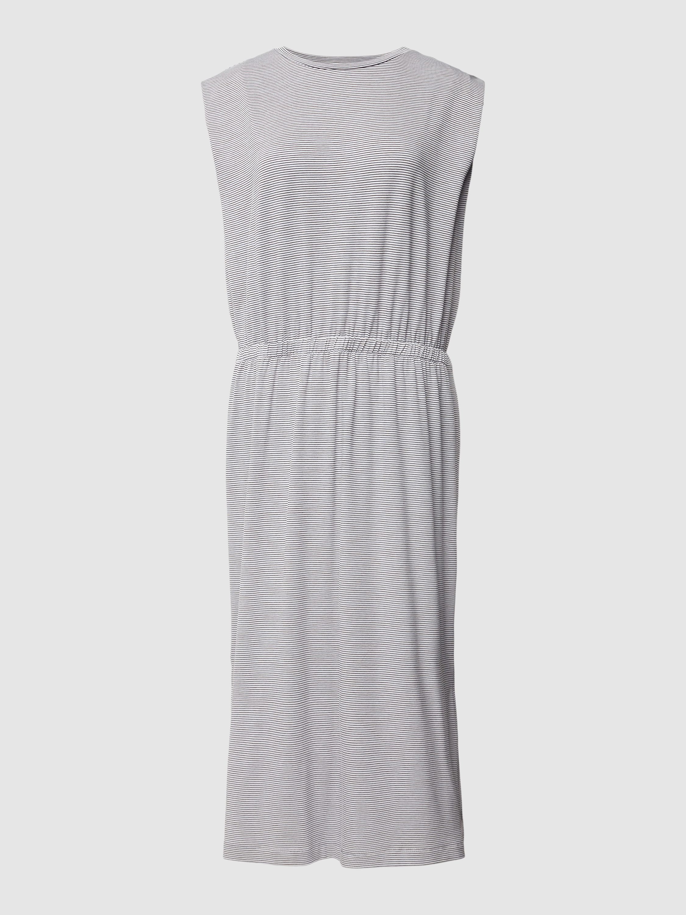 Das Damen Midikleid von MILANO ITALY, Modell 'Maxi', bietet mit seinem taillierten Schnitt und dem angenehmen Viskose-Mix mit Stretch-Anteil eine bequeme Passform. Das Streifenmuster verleiht dem ärmellosen Design eine dynamische Note, während der Rundhalsausschnitt für einen klassischen Look sorgt. Ideal für vielfältige Anlässe.