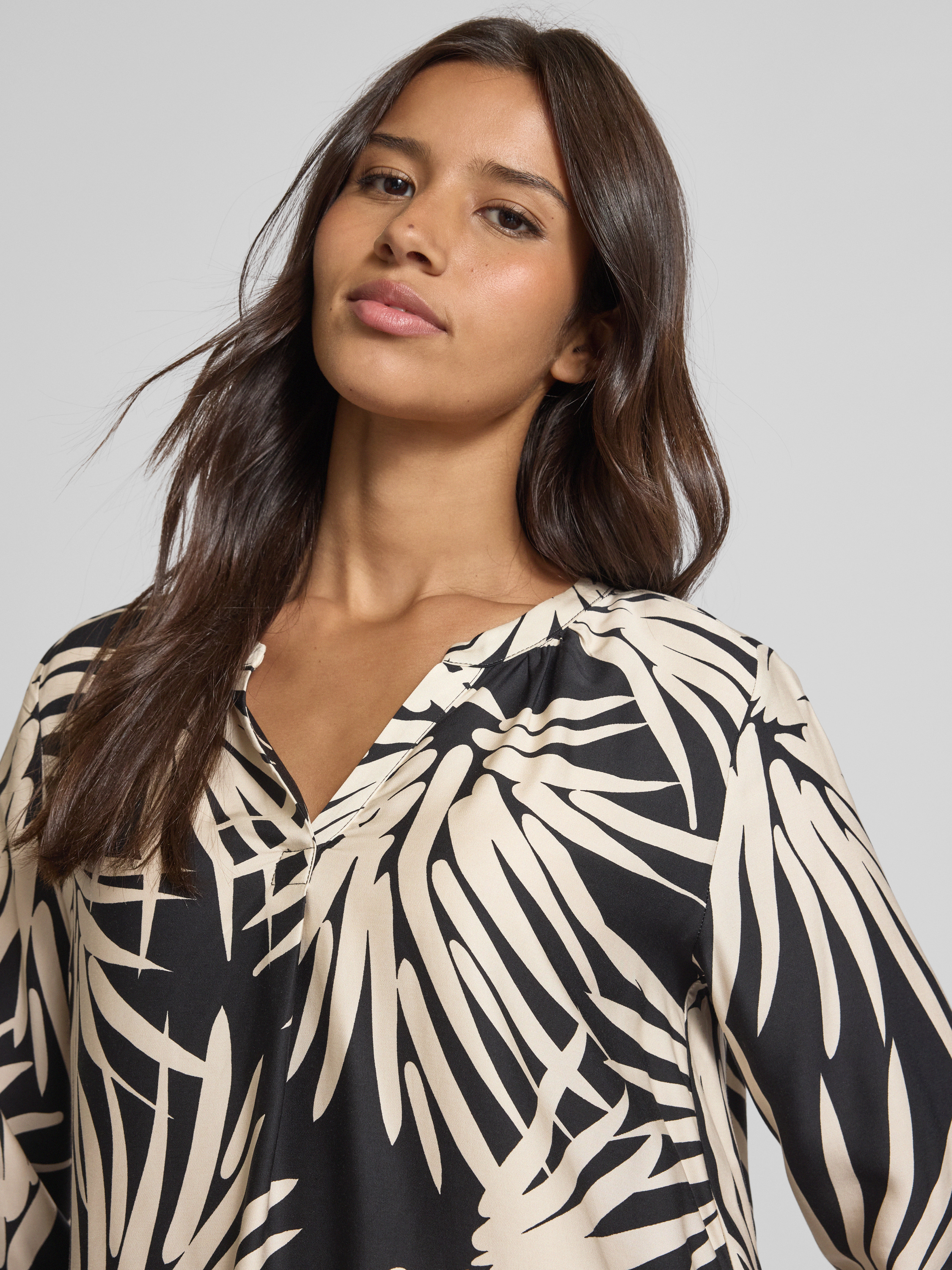 Die Relaxed Fit Bluse von MILANO ITALY zeichnet sich durch ihren legeren Schnitt und den eleganten Tunikakragen aus, was ihr einen luftigen, aber dennoch stilvollen Charakter verleiht. Aus reiner Viskose gefertigt, fällt sie angenehm leicht und sorgt für ein komfortables Tragegefühl. Die 3/4-Ärmel bieten dabei eine ideale Balance zwischen Funktionalität und modischem Ausdruck.