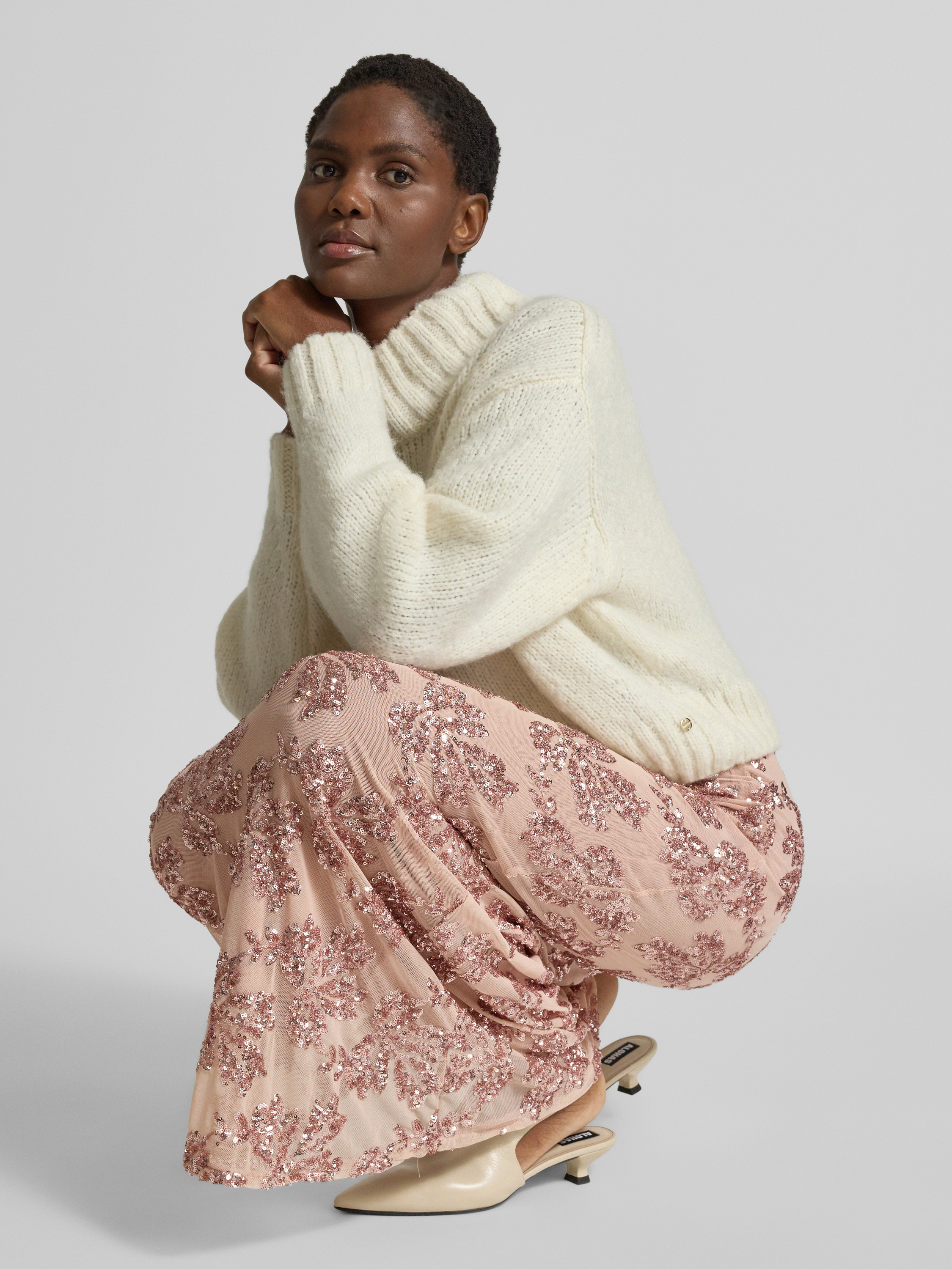 Der Maxirock von miss goodlife zeigt sich mit einem geraden Schnitt, der Bewegungsfreiheit ermöglicht und angenehm fällt. Durch den Viskose-Elasthan-Mix trägt er sich besonders leicht, während der elastische Bund für Komfort sorgt. Dezente Pailletten setzen Akzente und bringen Abwechslung in den Look.