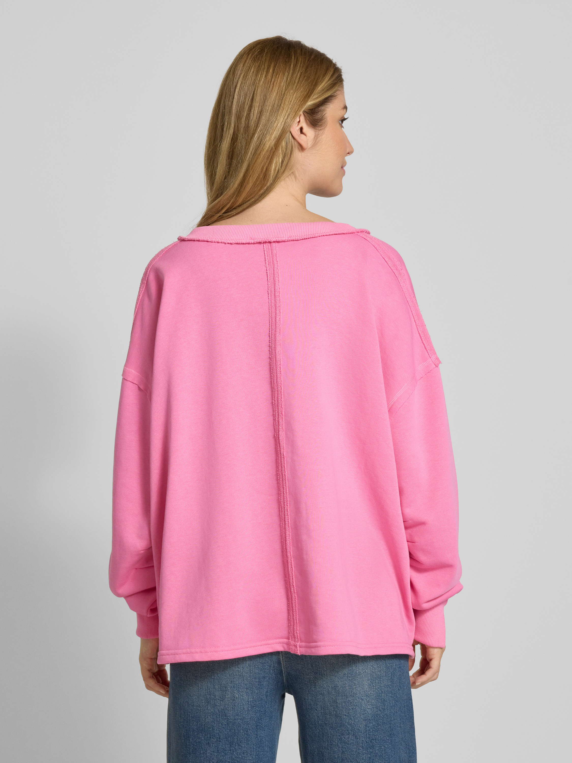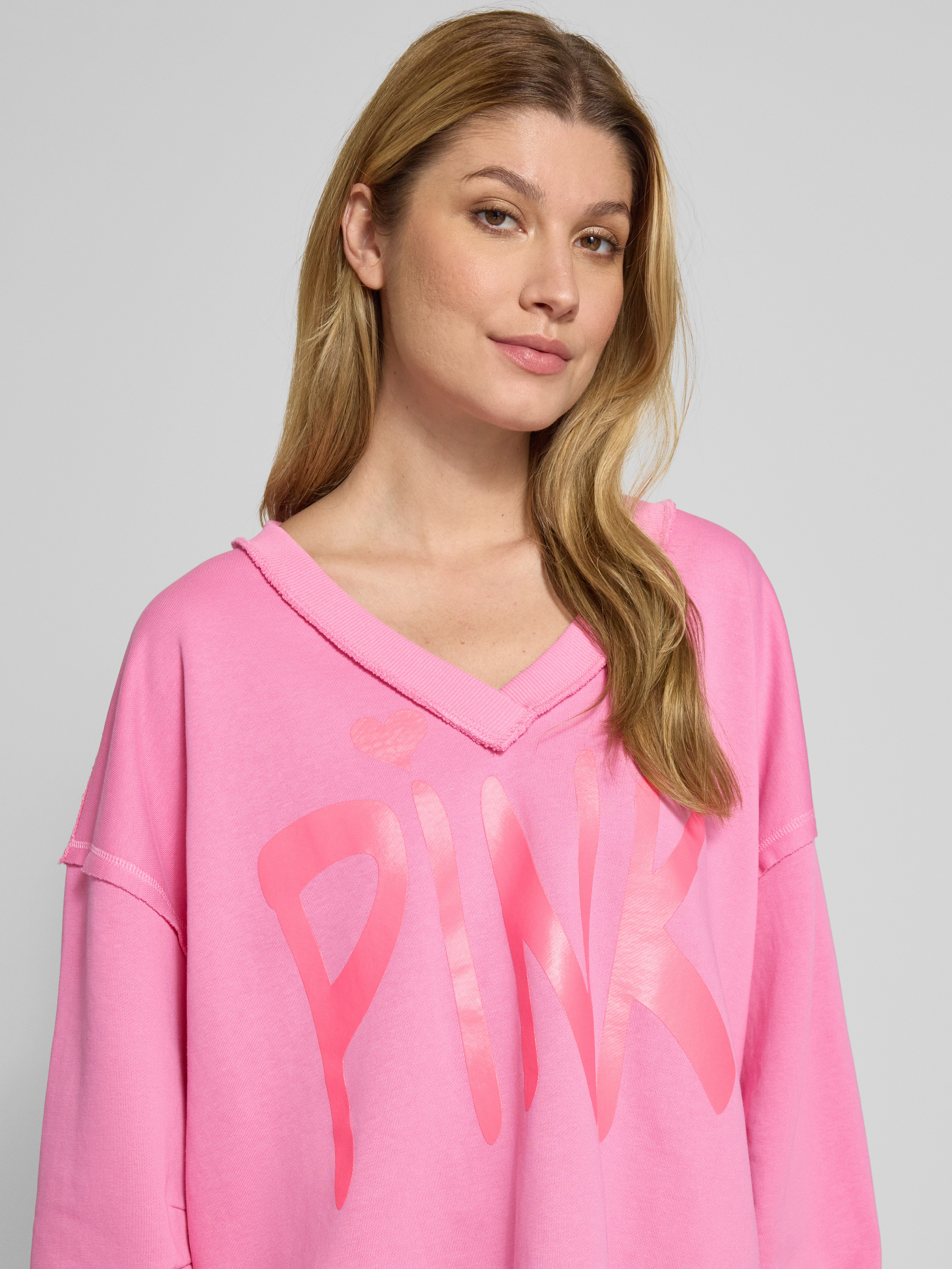 Das Damen Sweatshirt von miss goodlife kombiniert Komfort mit einem lässigen Stil. Gefertigt aus reiner Baumwolle, verleiht die Oversized-Passform Bewegungsfreiheit und der V-Ausschnitt sorgt für eine moderne Silhouette. Ein auffälliger Statement-Print rundet das Design harmonisch ab.