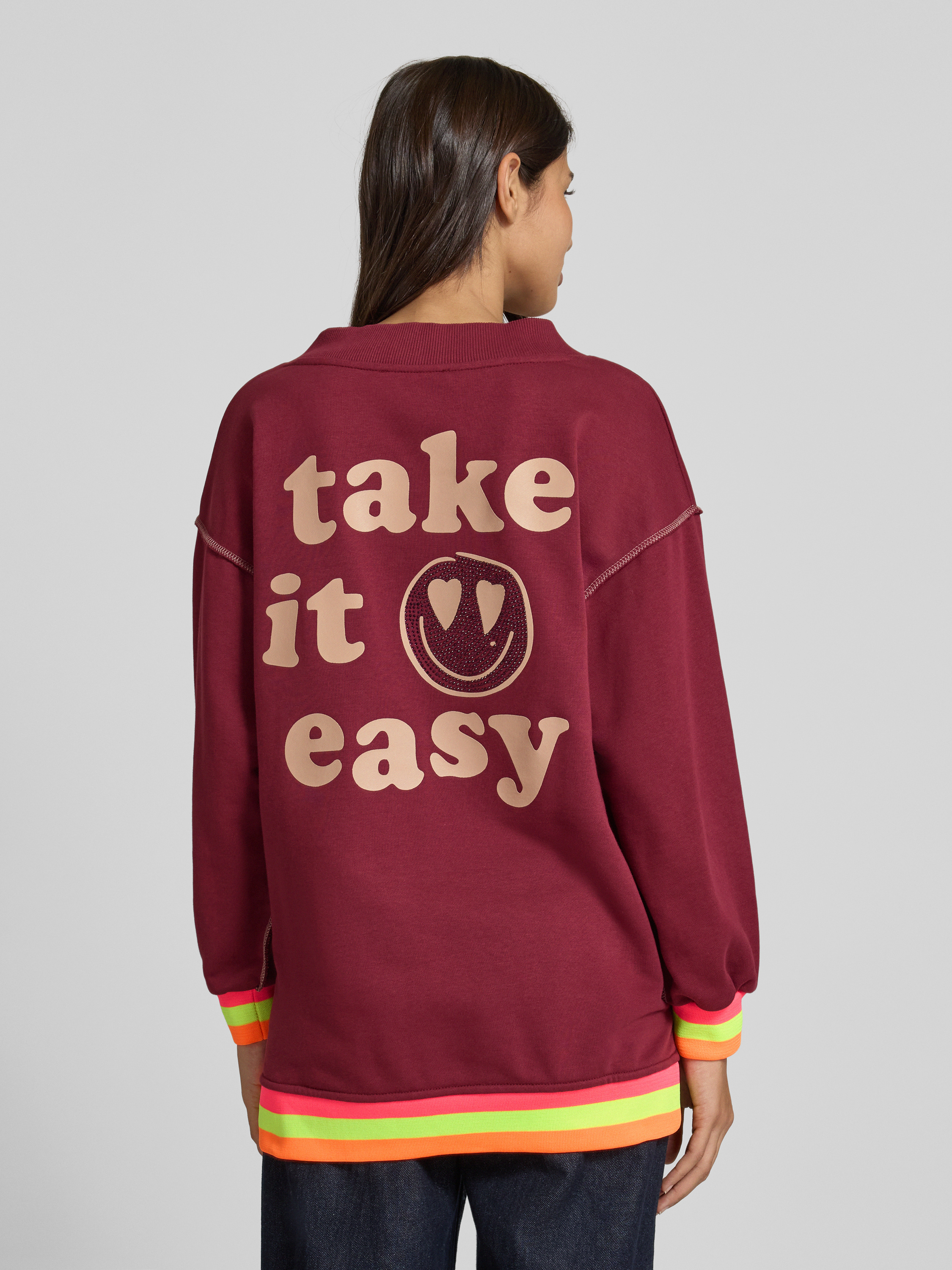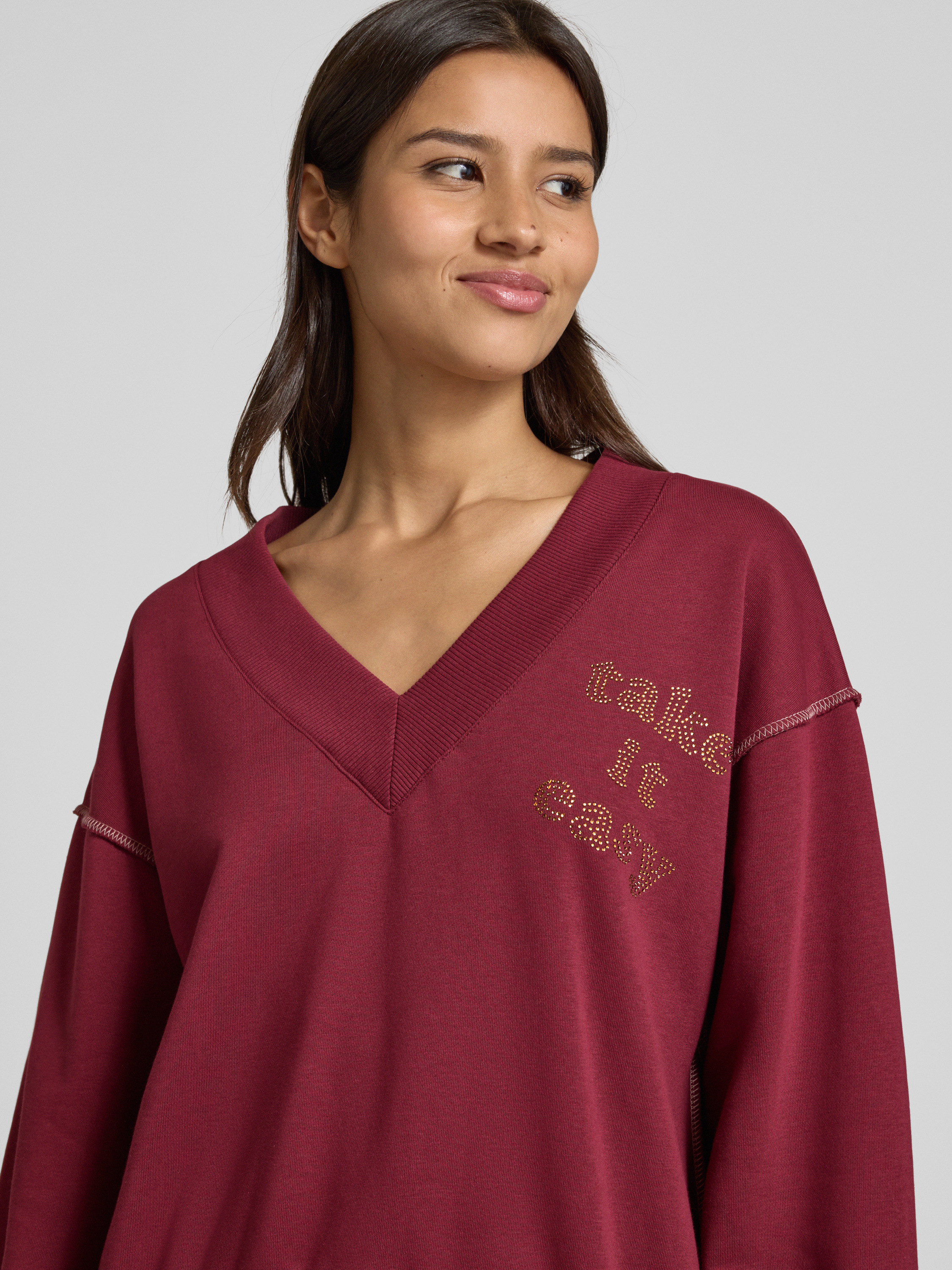 miss goodlifeRelaxed Fit Sweatshirt mit V-Ausschnitt Modell 'Hey You' in dunkelbraun