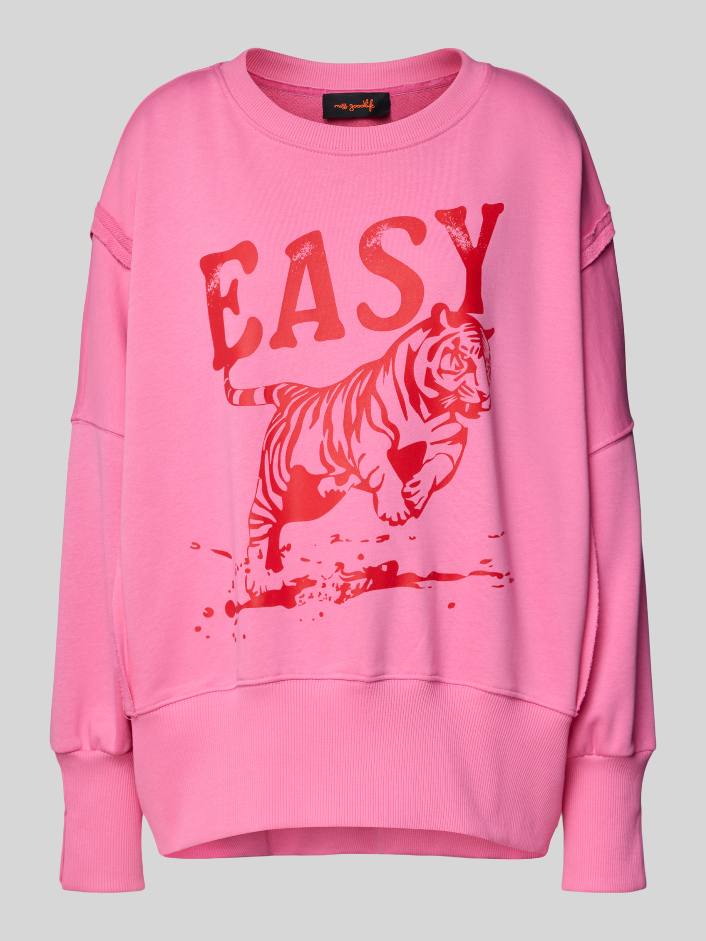 Das Sweatshirt von miss goodlife aus reiner Baumwolle vereint Komfort und Stil in einem entspannten Schnitt. Der Motiv-Print verleiht ihm eine lebendige Note, während der Rundhalsausschnitt für eine bequeme Passform sorgt. Es eignet sich ideal für lässige Anlässe und vielseitige Outfits.