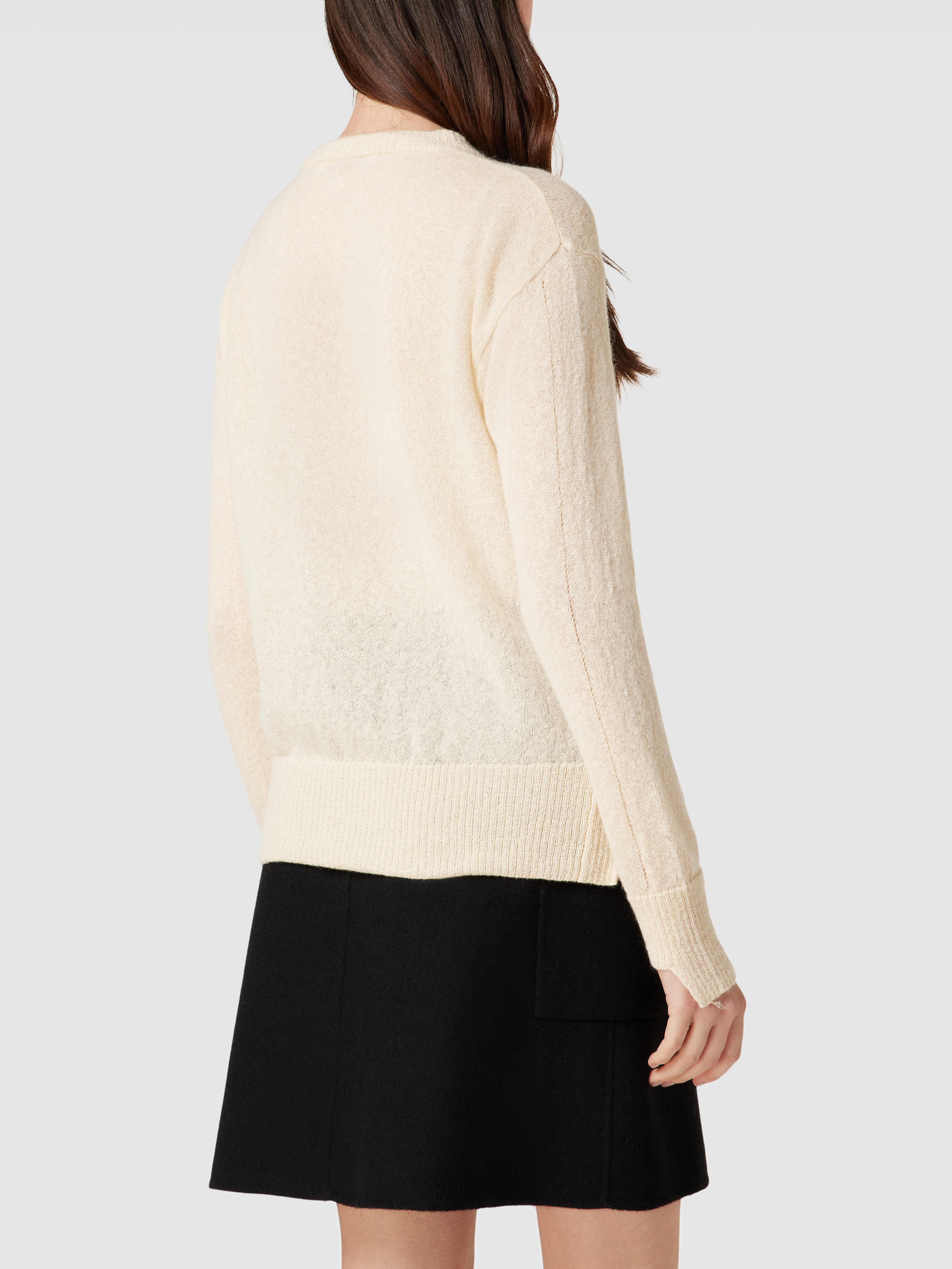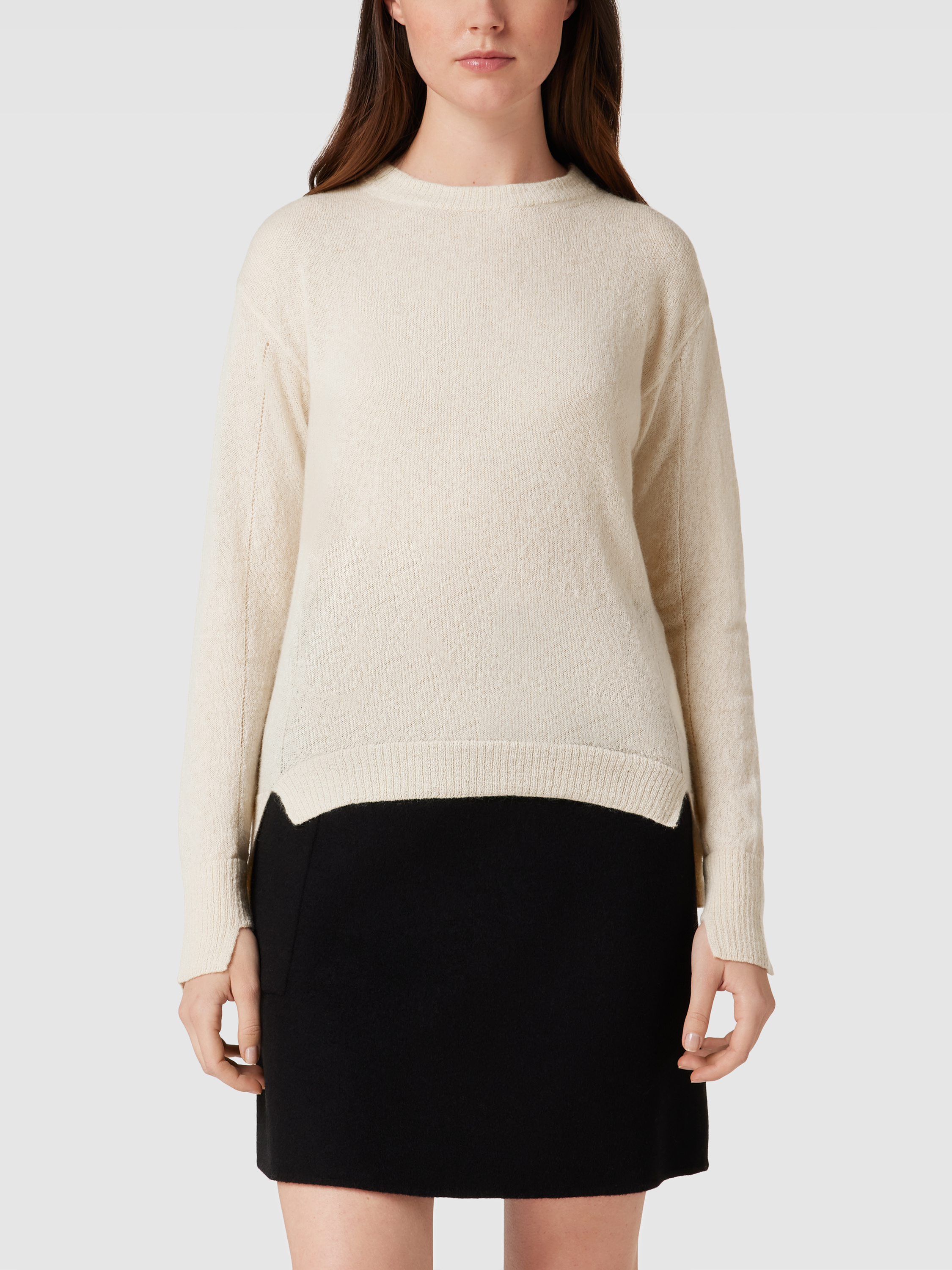 Der Damen Strickpullover von MM, Modell 'FATA', kombiniert gekonnt einen lockeren Schnitt mit einem raffinierten Strukturmuster. Der weiche Material-Mix mit Mohair-Anteil sorgt für ein angenehmes Tragegefühl. Kurze Seitenschlitze und gerippte Abschlüsse verleihen zusätzliche Bewegungsfreiheit und stilvolle Akzente.