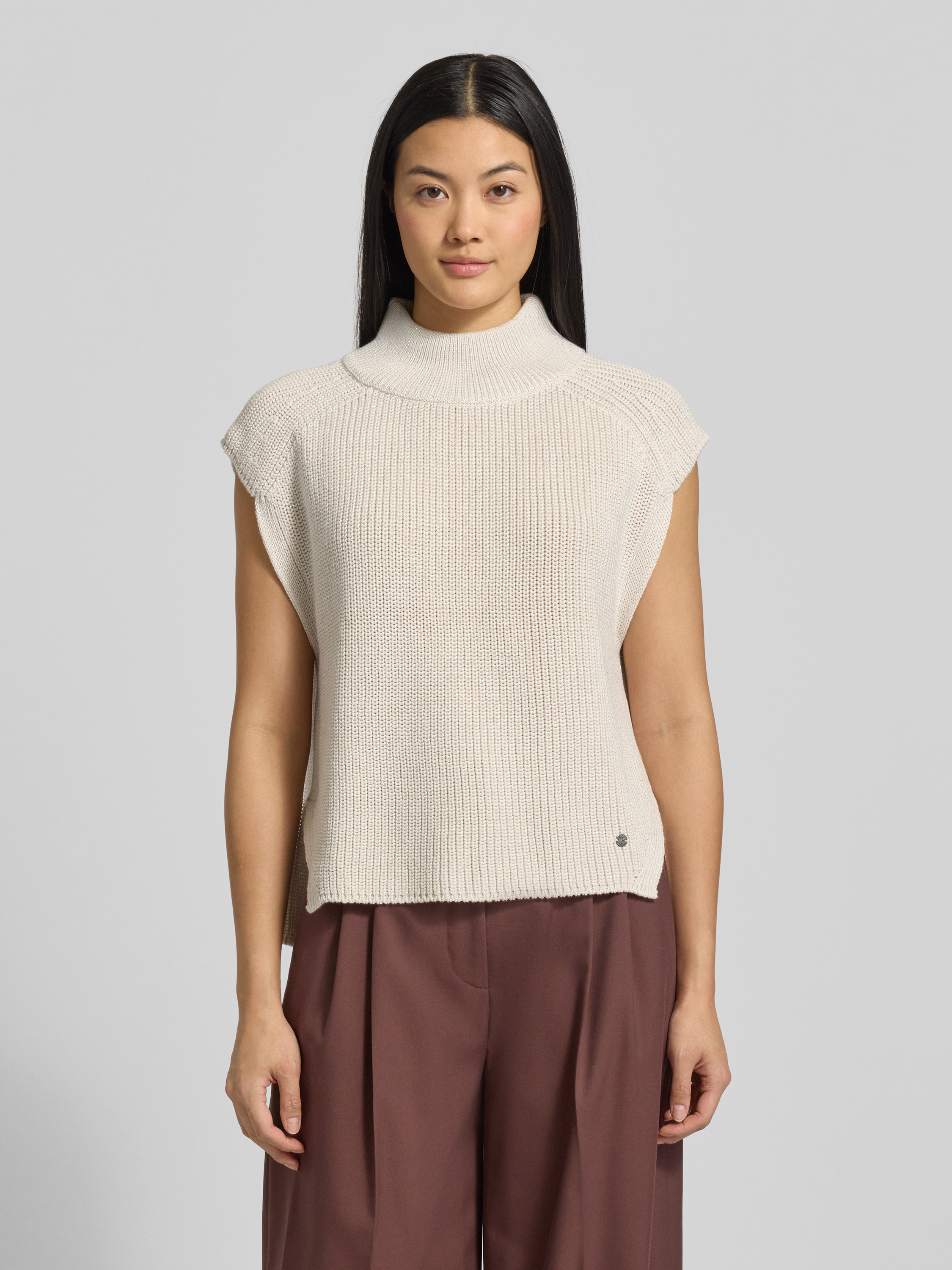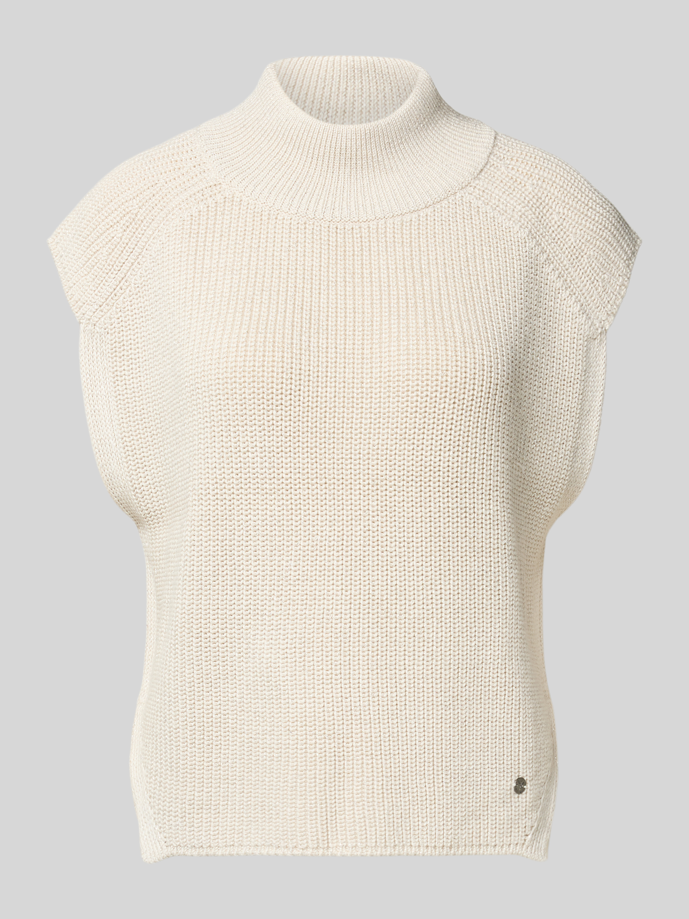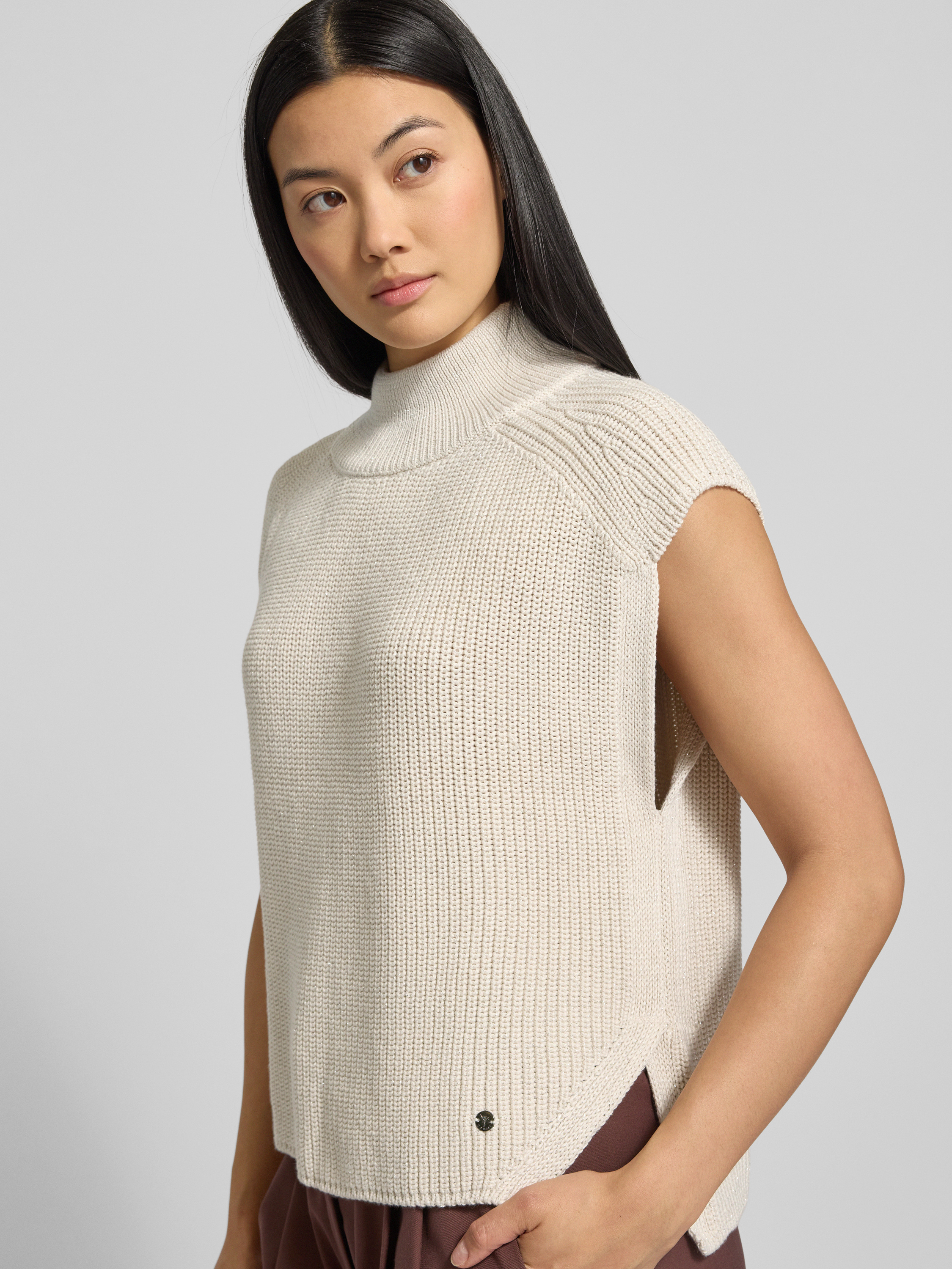 Der Damen Pullunder von monari präsentiert sich im lockeren Schnitt und lässt sich vielseitig kombinieren. Durch den Baumwoll-Mix fühlt sich das Material angenehm auf der Haut an, während der gerippte Stehkragen dem Gesamtbild eine moderne Note verleiht. Das Label-Detail rundet das Design dezent ab.