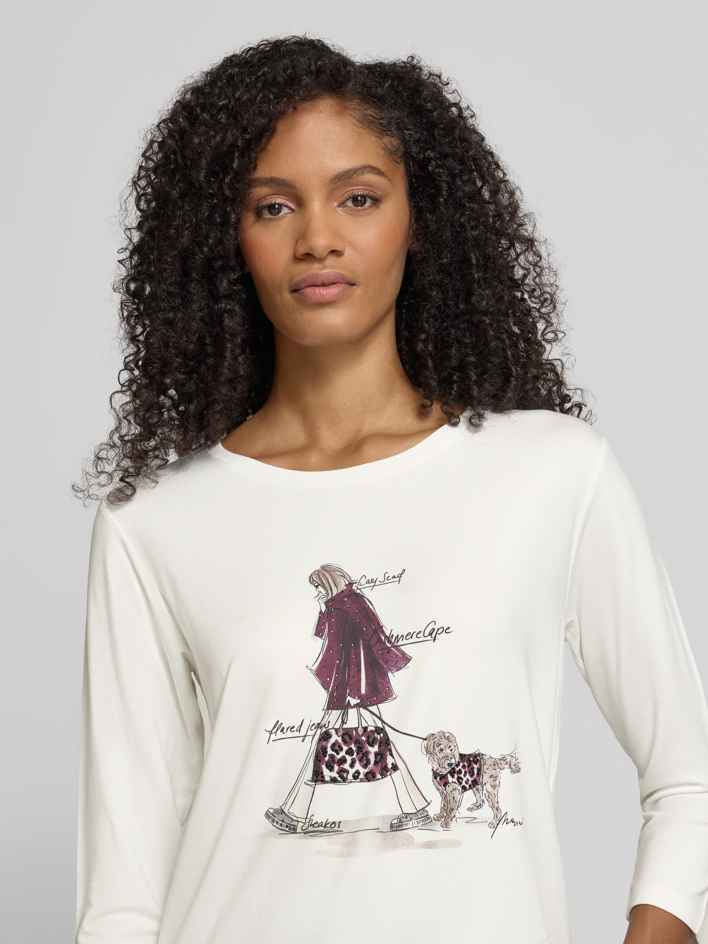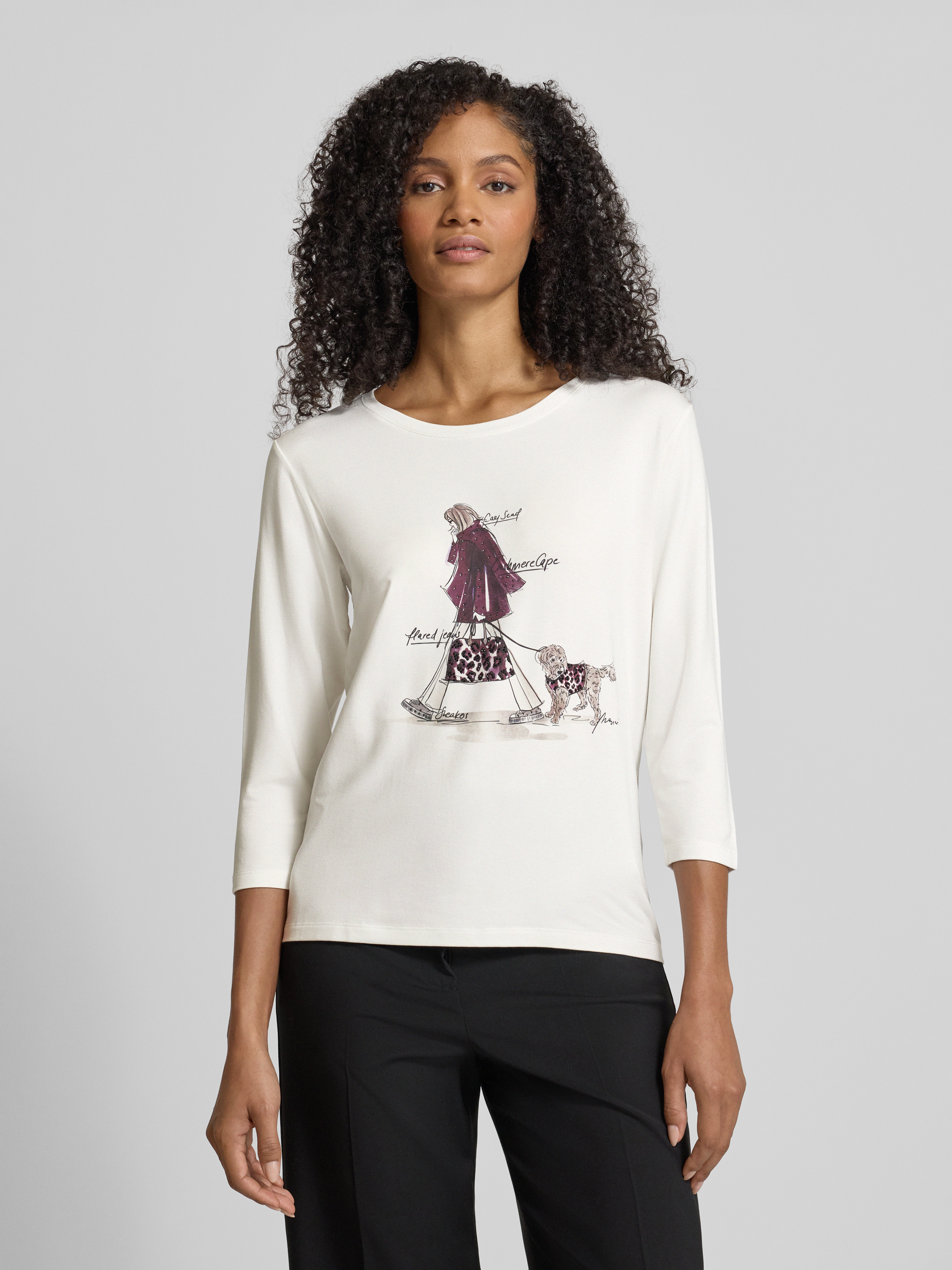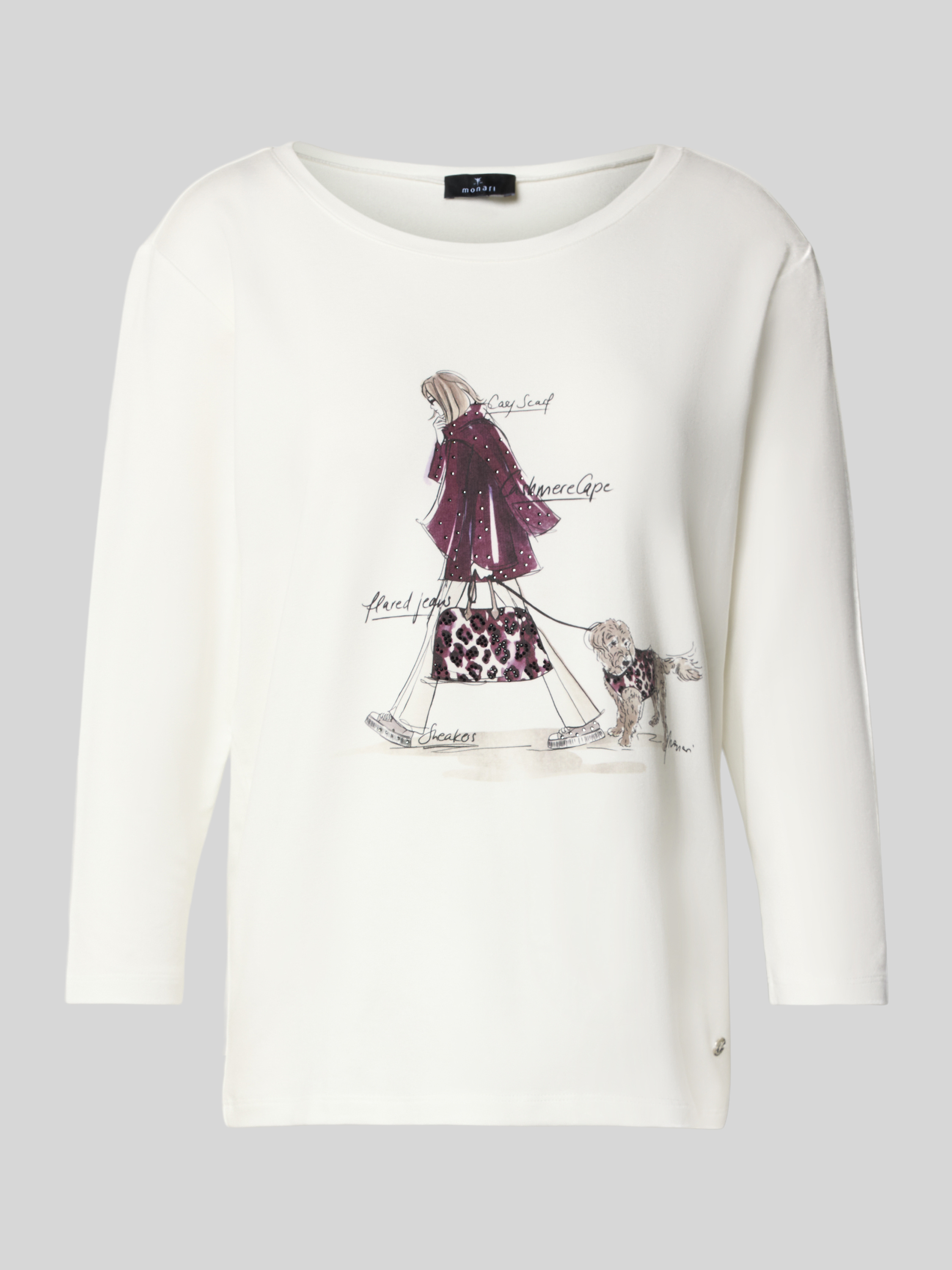 Das Damen Longsleeve von monari kommt im Regular-Fit und sorgt durch den elastischen Viskose-Mix mit Modal-Anteil für angenehmen Tragekomfort. Ein Motiv-Print mit Strasssteinbesatz setzt dezente Akzente, während der Rundhalsausschnitt und die 3/4-Arm-Länge den Look abrunden. So lässt sich das Oberteil unkompliziert kombinieren und vielseitig einsetzen.