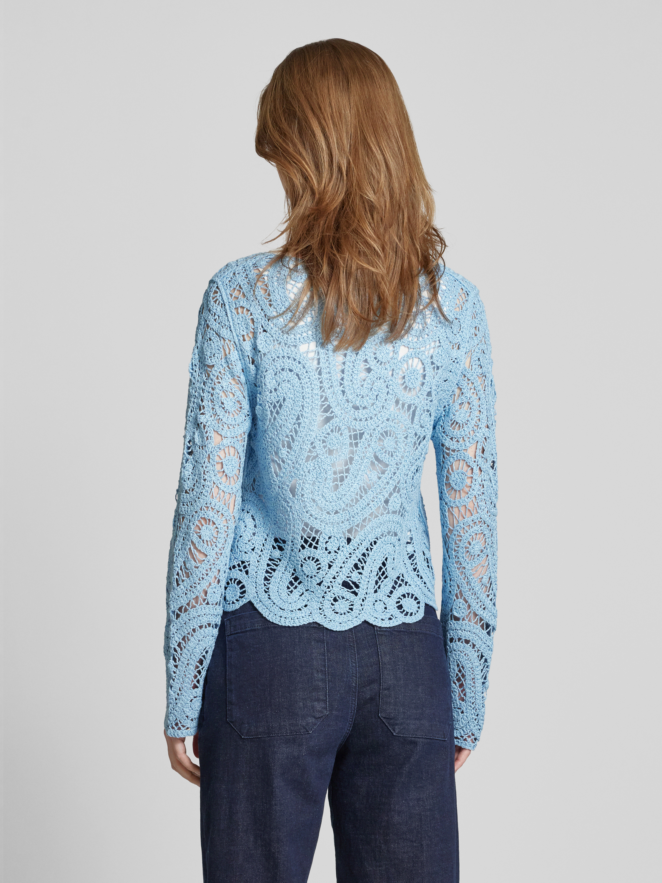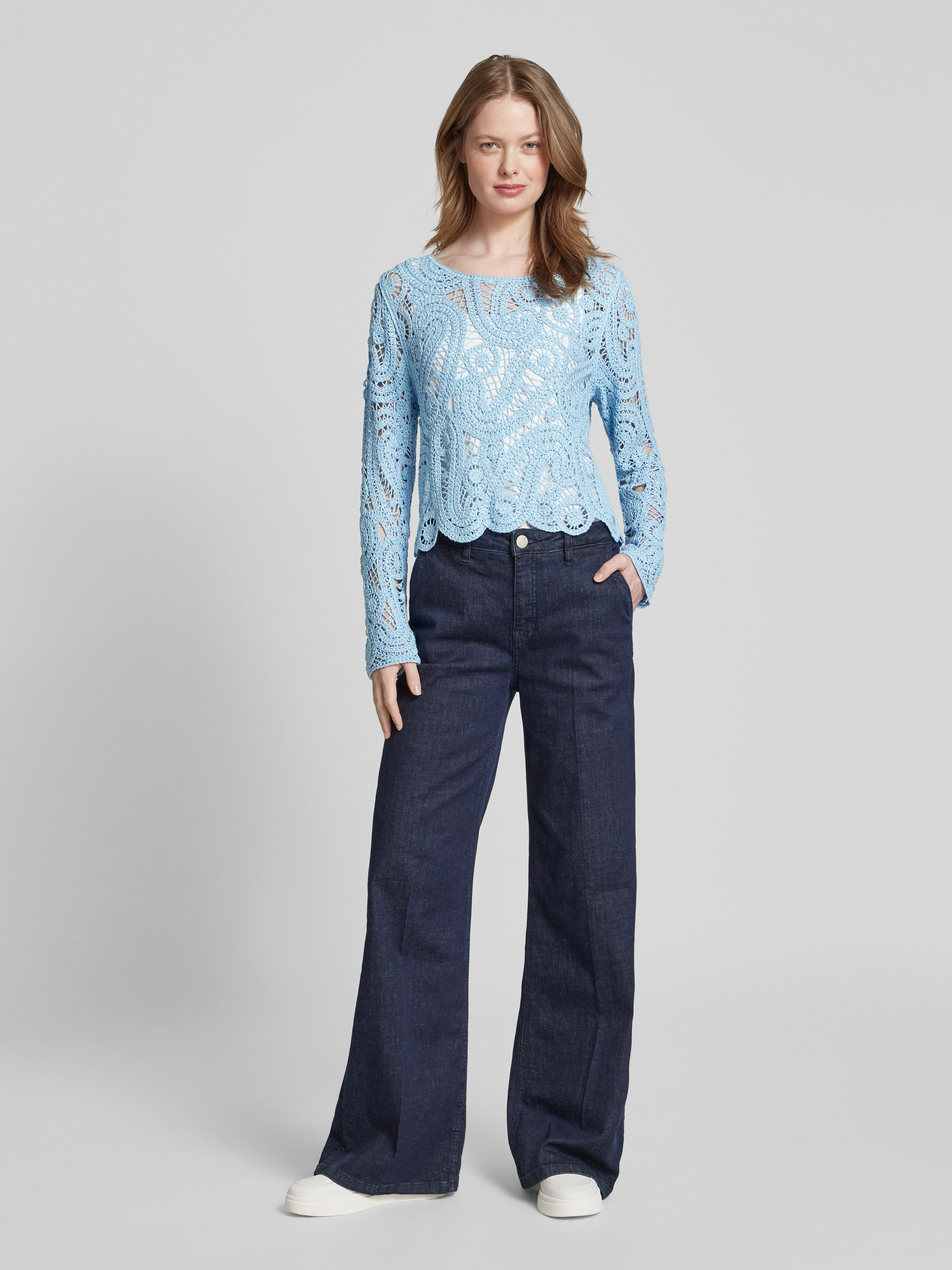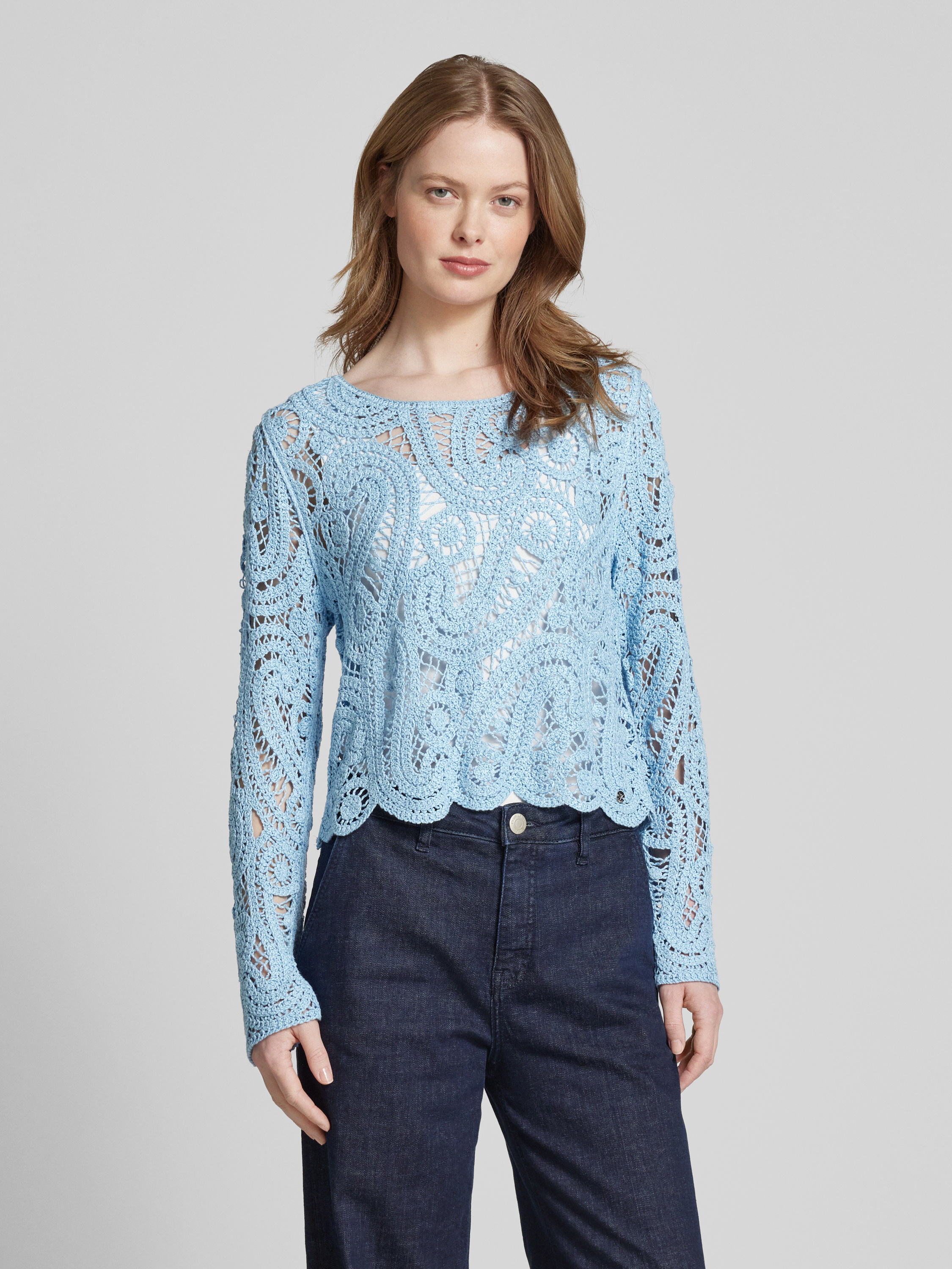 Der Damen Strickpullover von monari aus reiner Viskose präsentiert sich im Regular Fit und bietet dank der kunstvollen Lochstickerei eine attraktive Optik. Der Rundhalsausschnitt rundet das Design ab, während die leichte Stoffqualität für angenehmen Tragekomfort sorgt. Ideal für vielseitige Kombinationen.