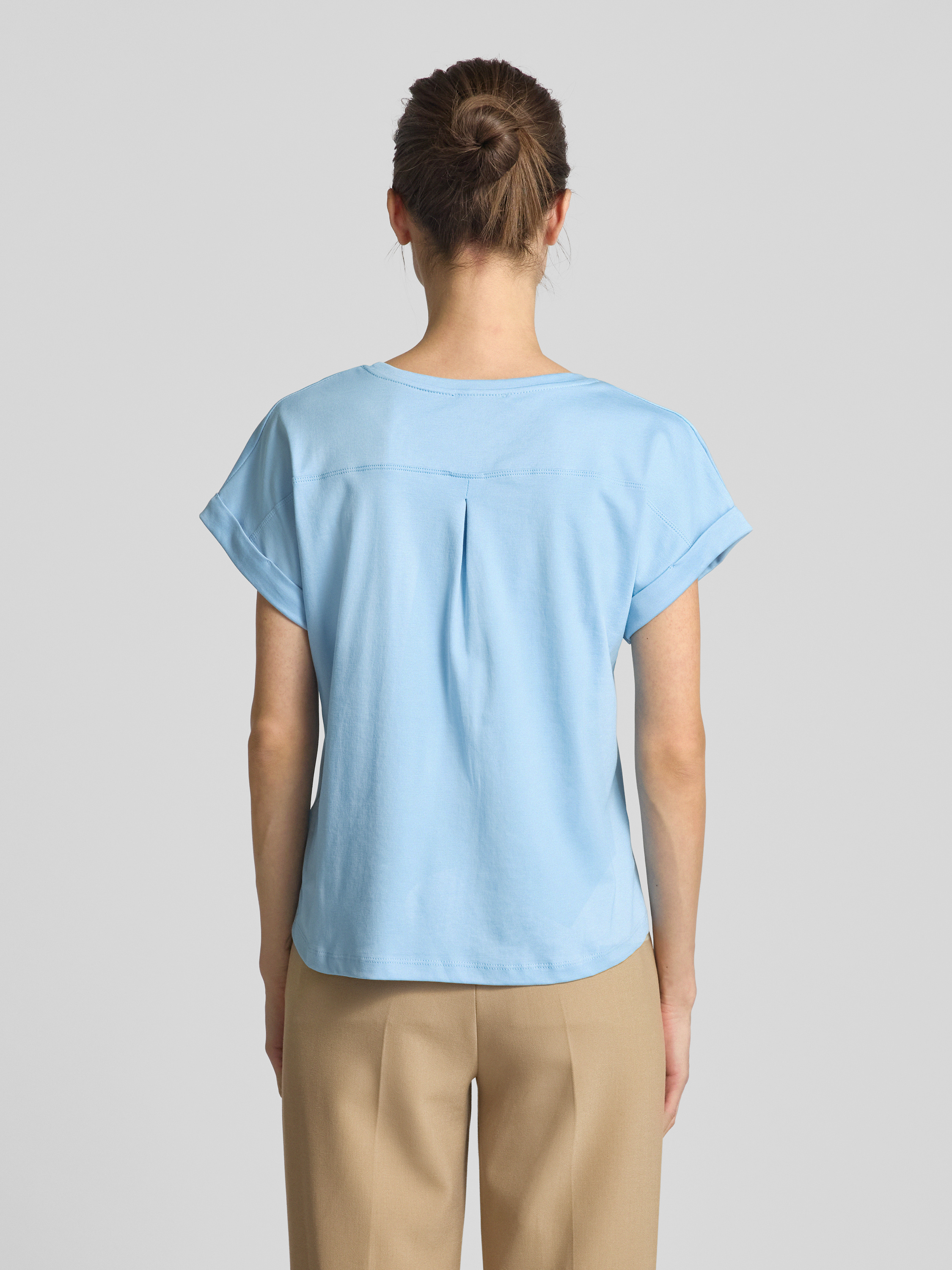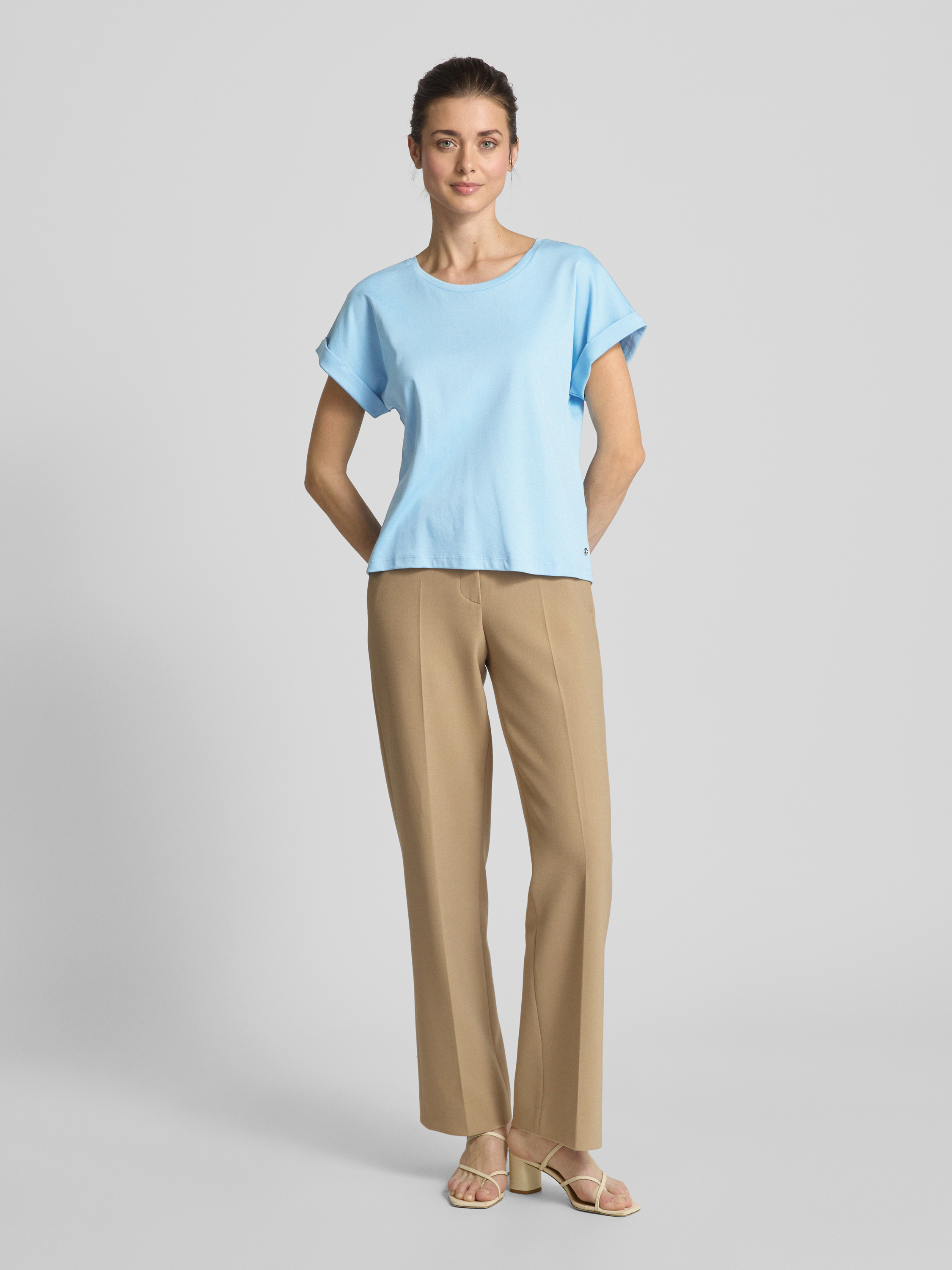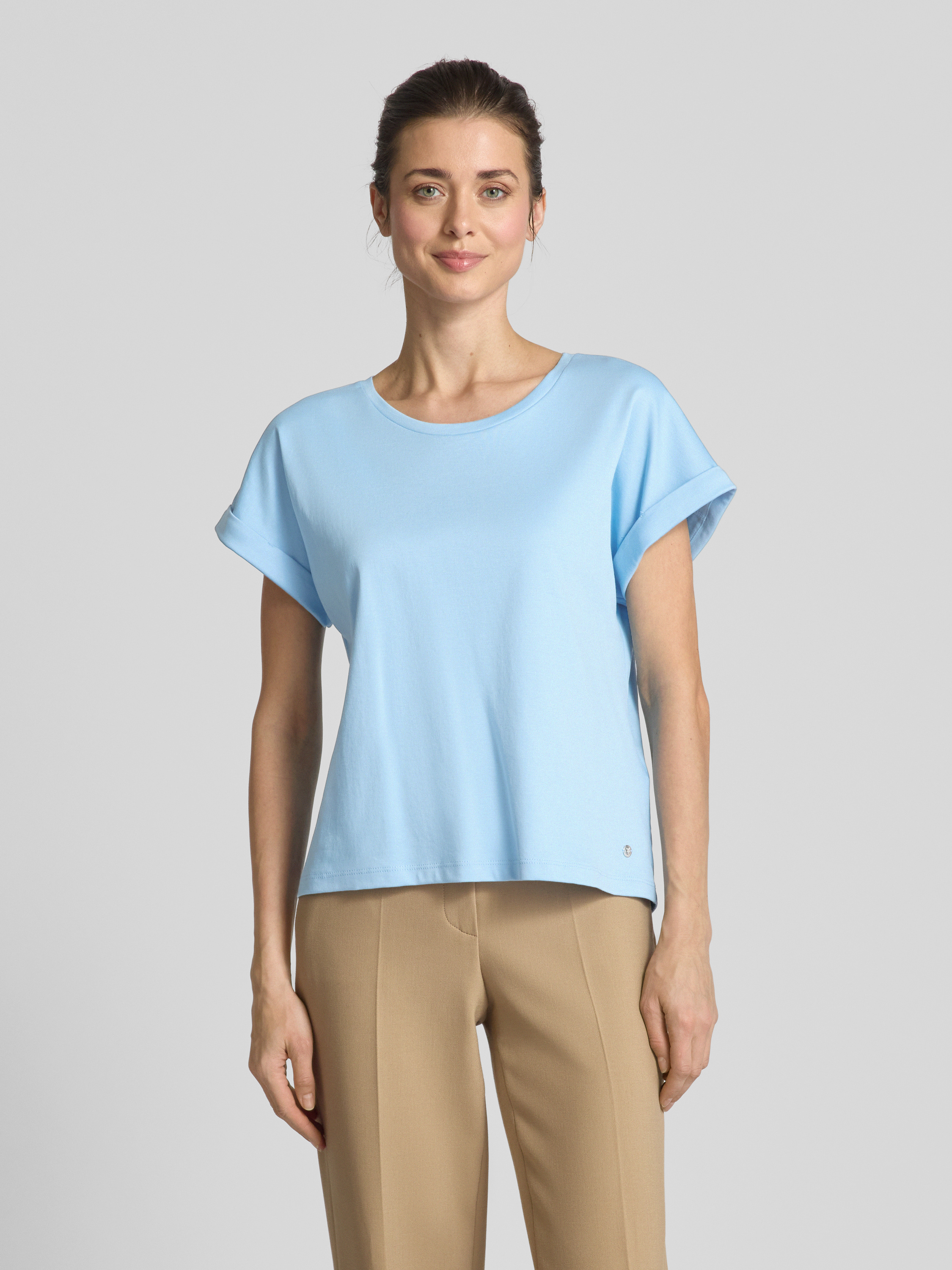 monariT-Shirt mit geripptem Rundhalsausschnitt in hellblau
