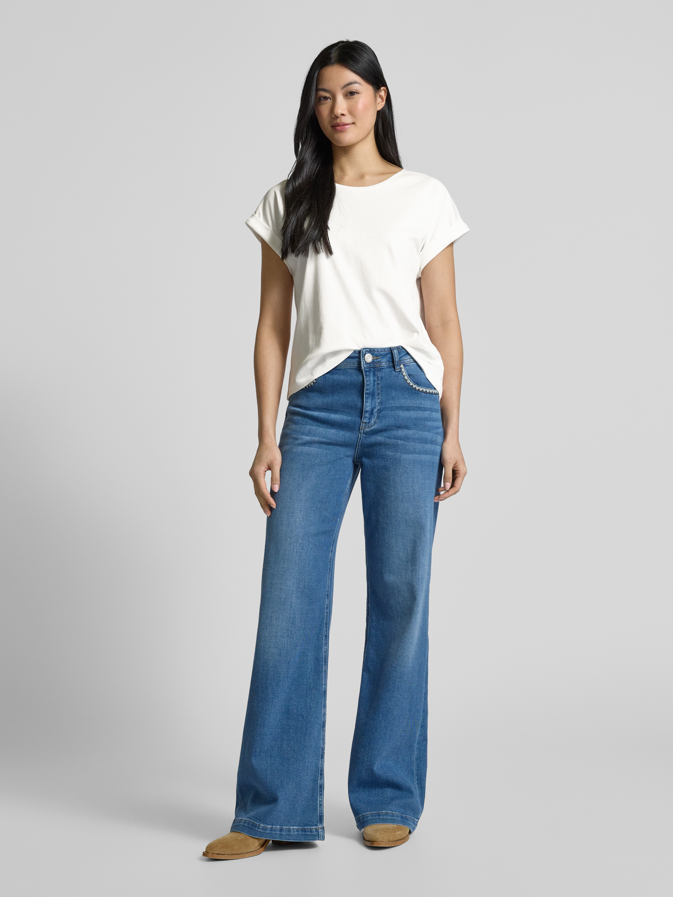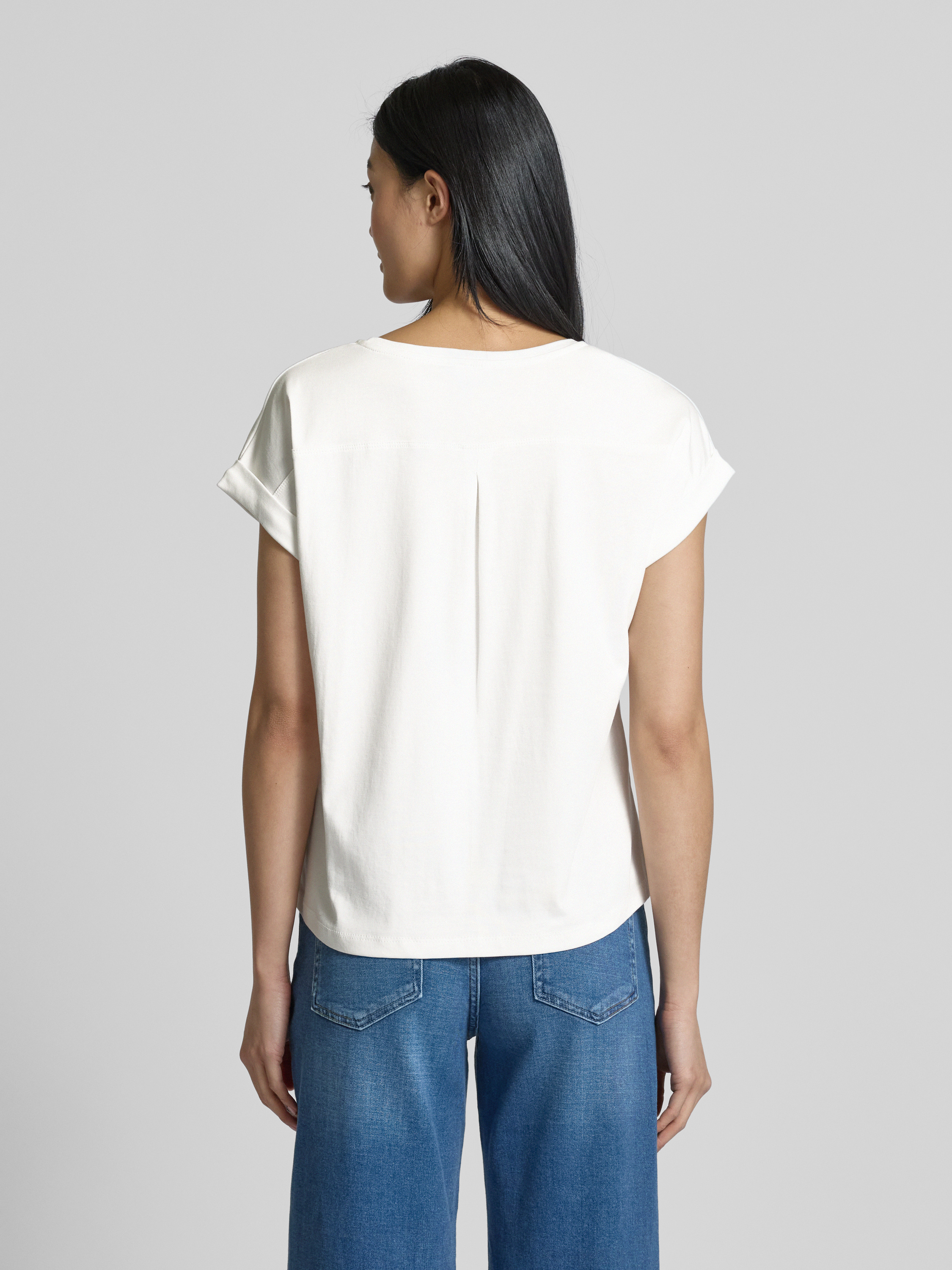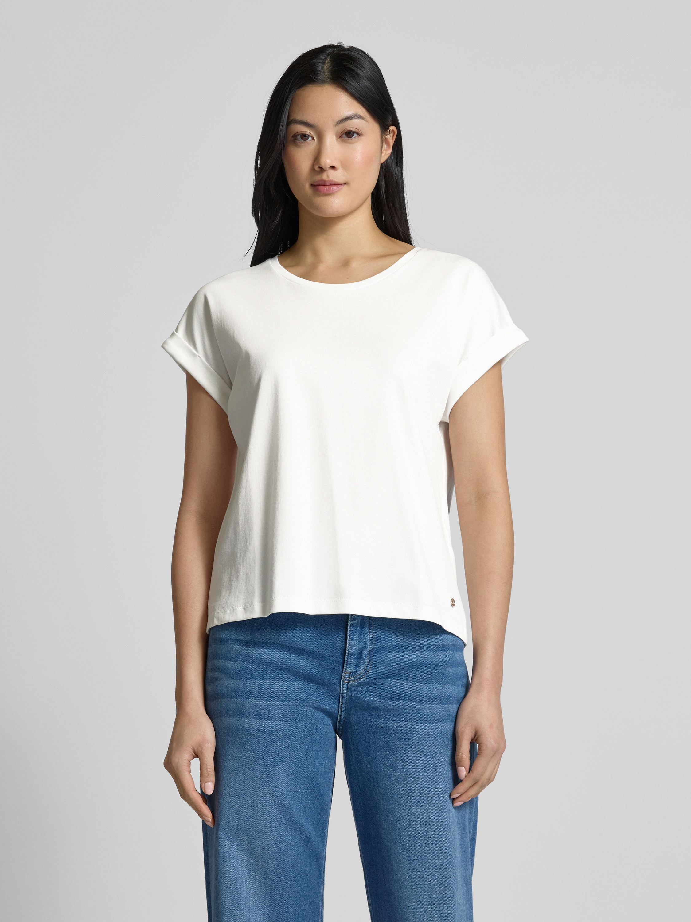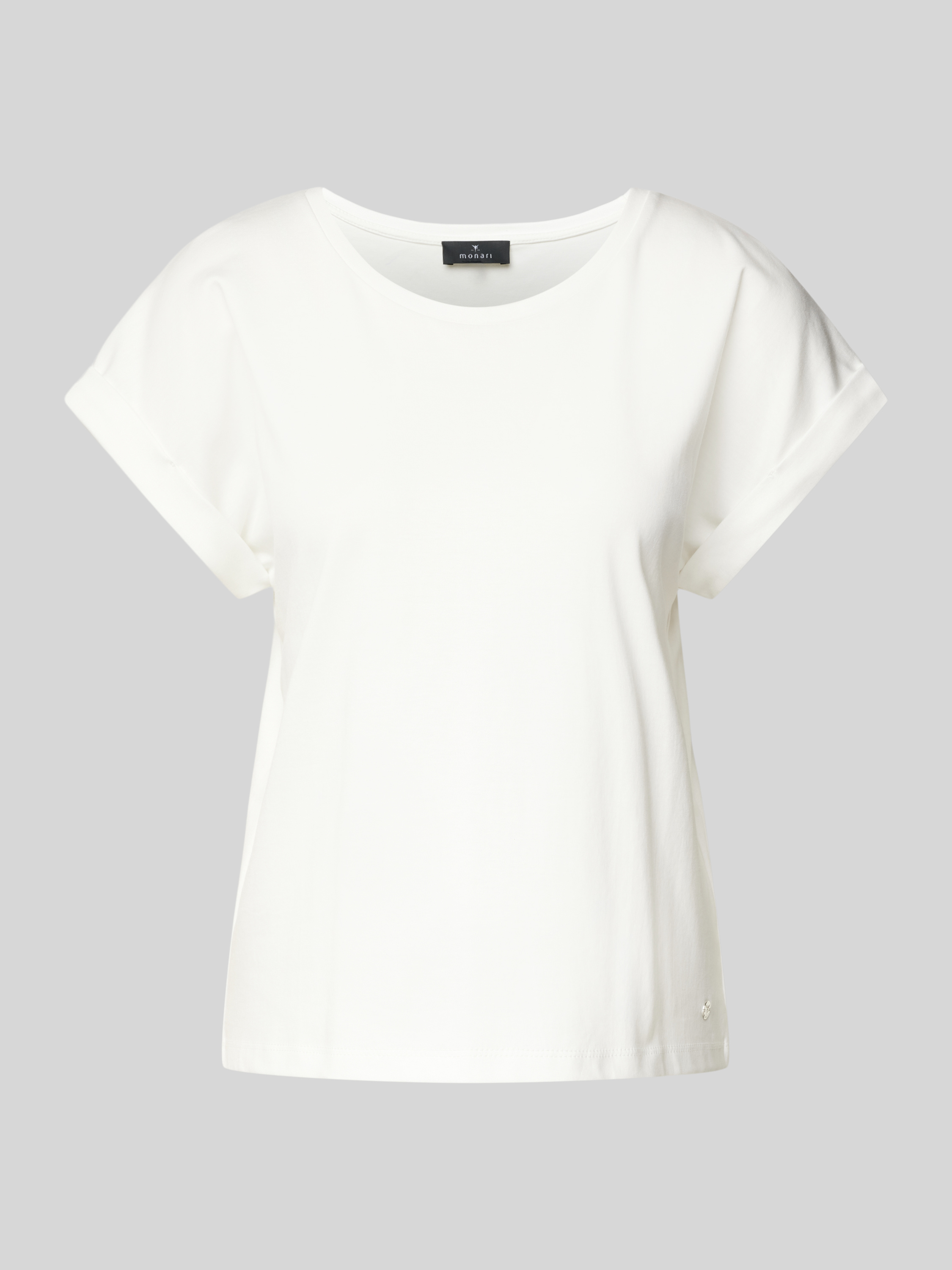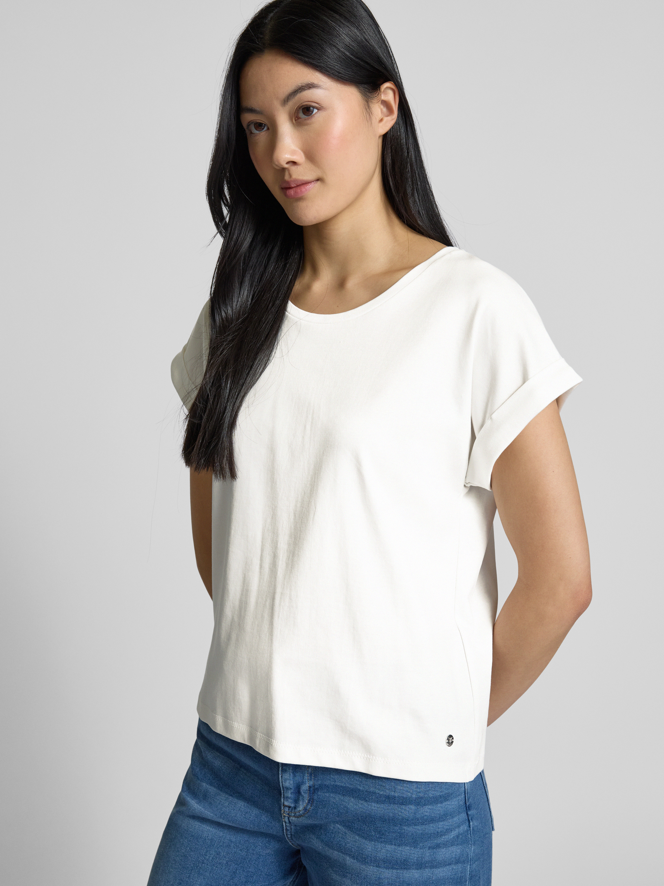Das Damen T-Shirt von monari, gefertigt aus reiner Baumwolle, punktet mit einem Regular Fit und einem gerippten Rundhalsausschnitt. Fixierte Ärmelumschläge verleihen dem Design eine lässige Note, während der Tragekomfort angenehm und alltagstauglich bleibt. Ideal für einen entspannten Look.